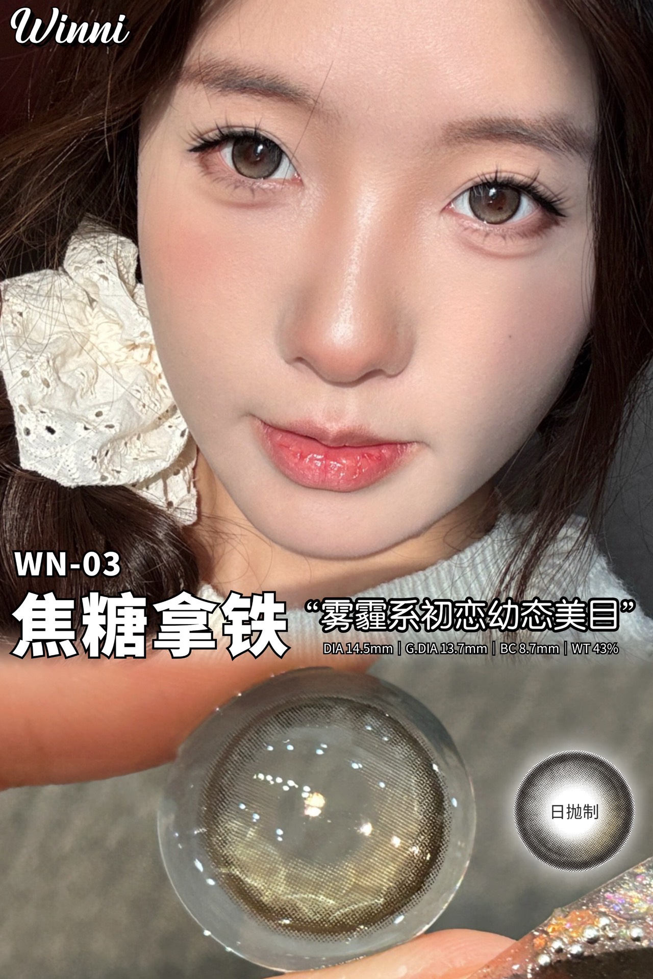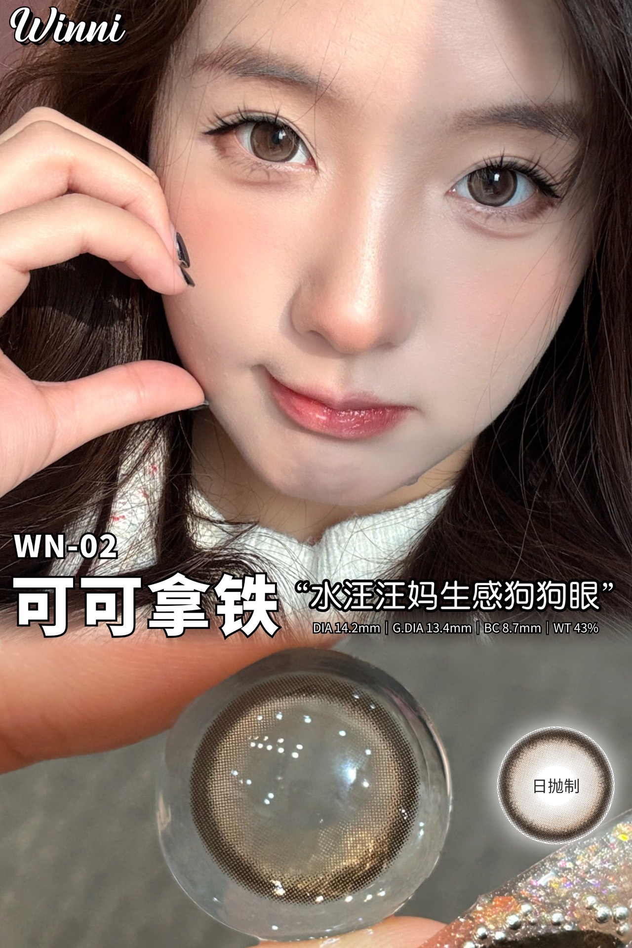 winni日抛 芝麻拿铁/可可拿铁/焦糖拿铁 14.2-14.5mm 日抛无售后!!灰绿棕巧