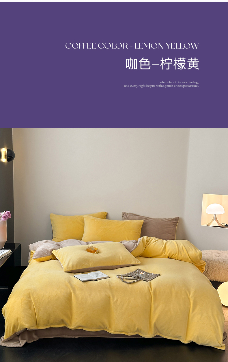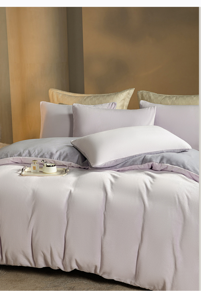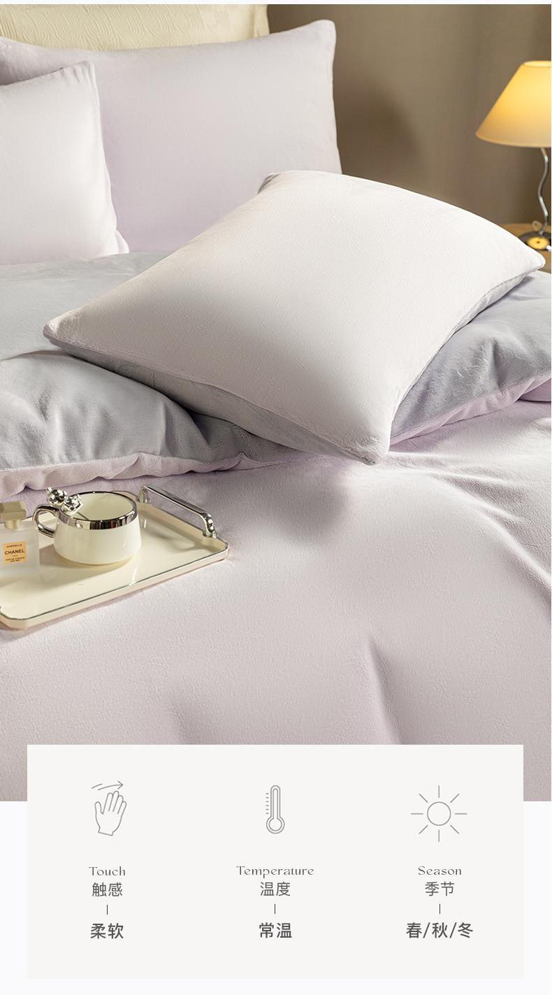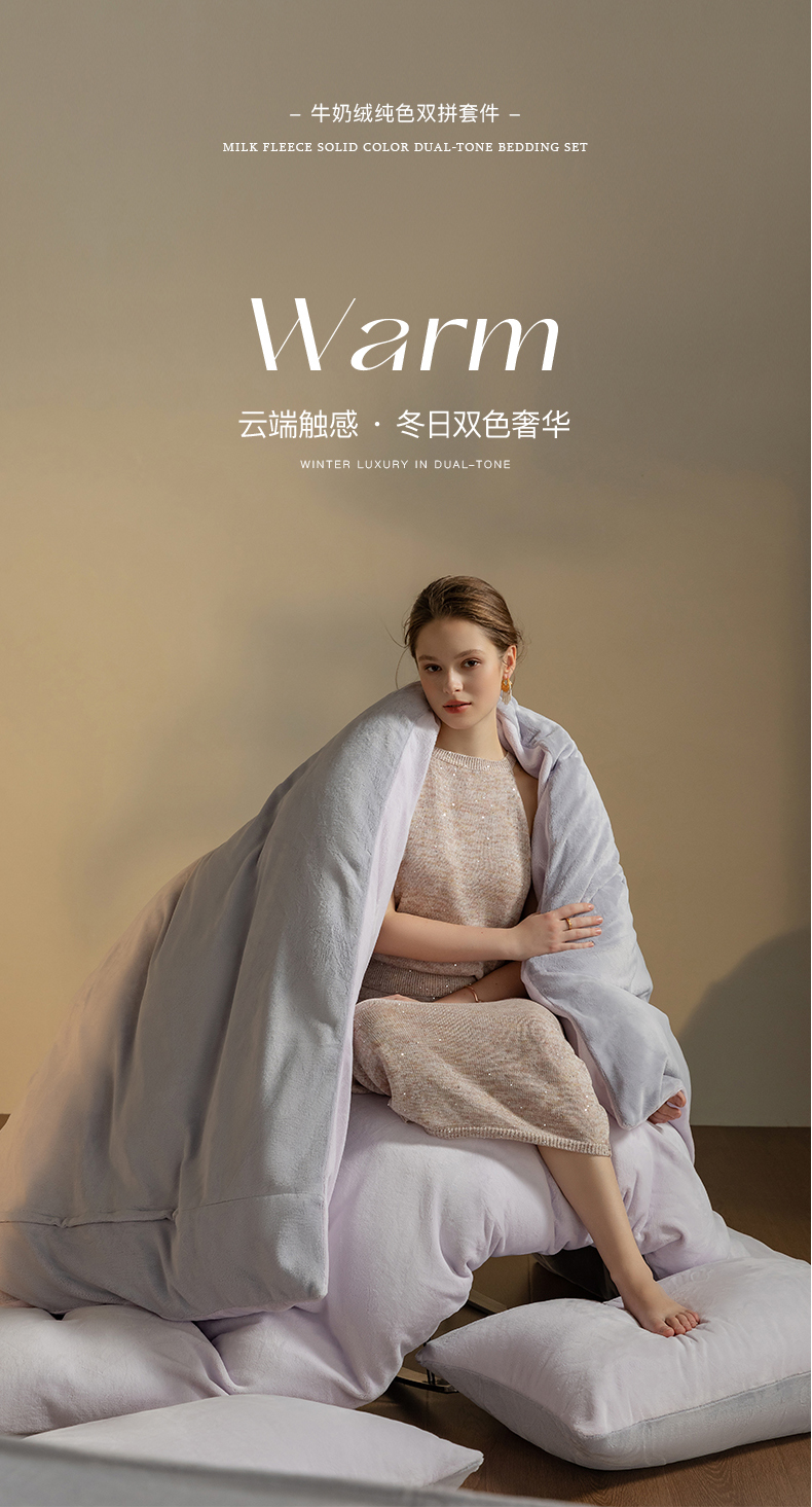 顶柔牛奶绒纯色双拼套件TJ1601,高密高克重牛奶绒拼色设计,简约高级