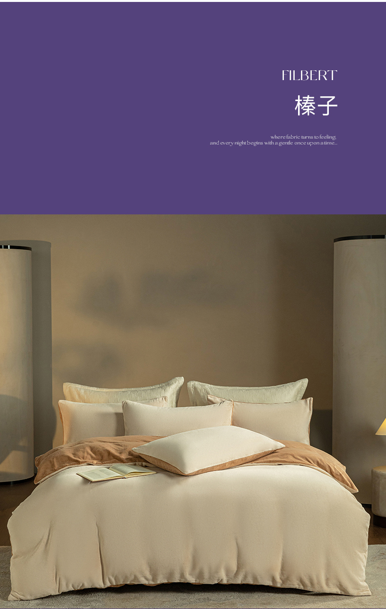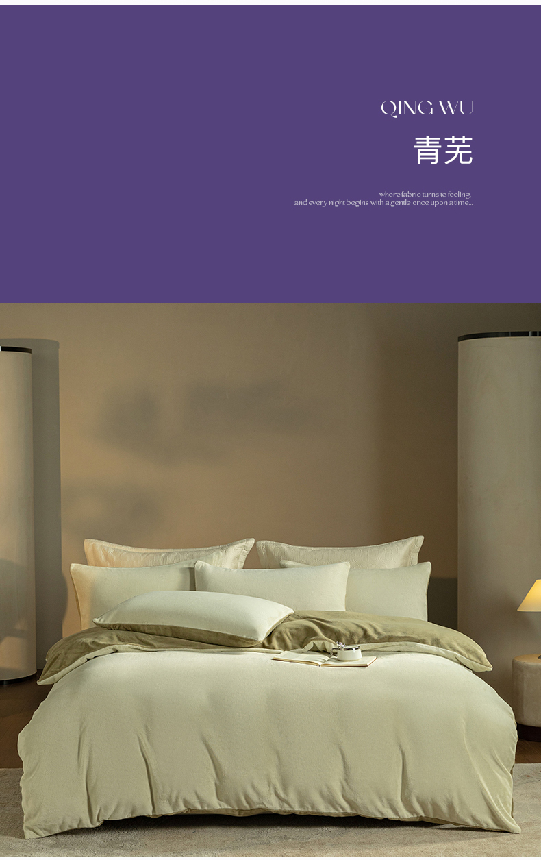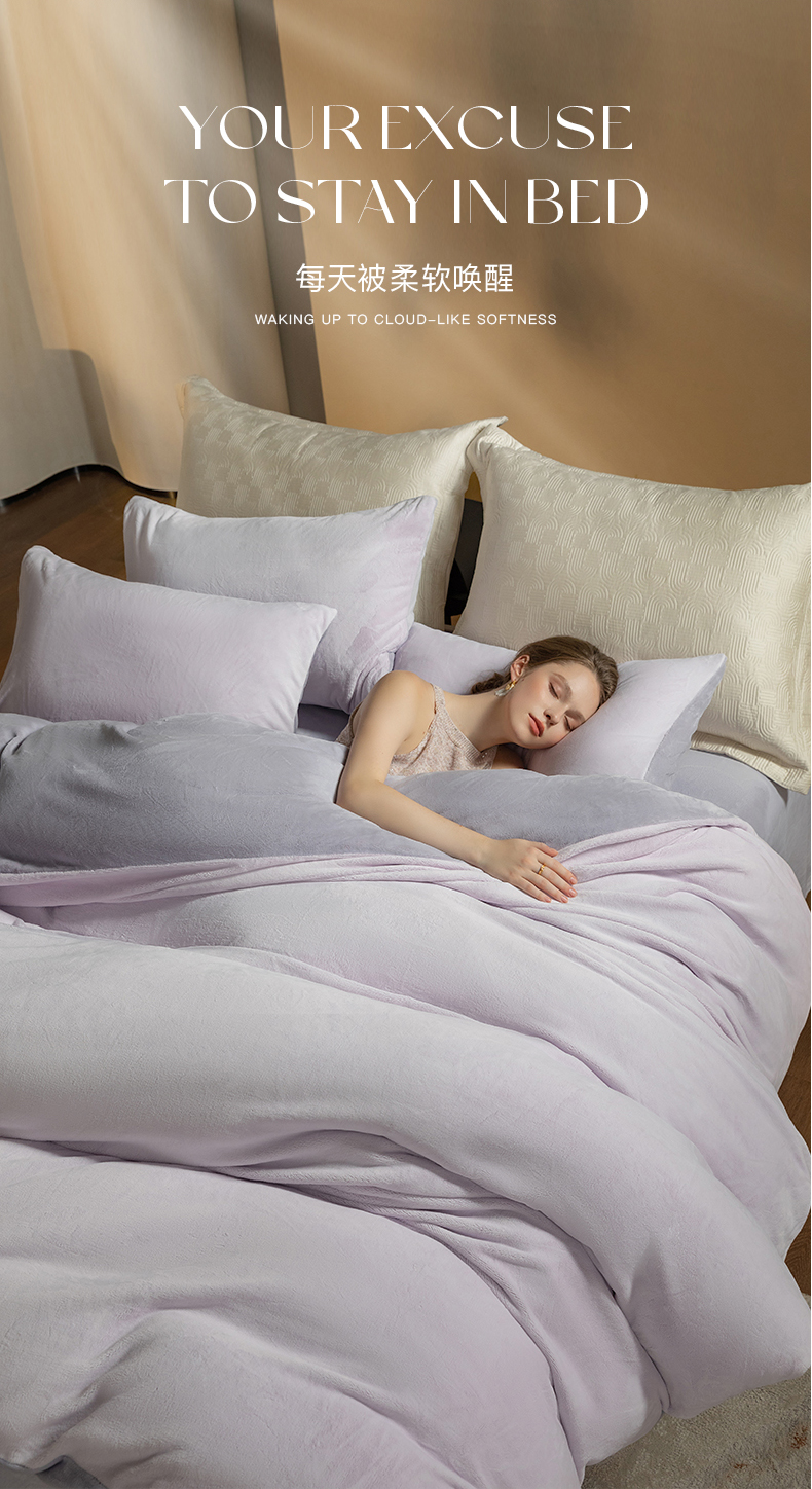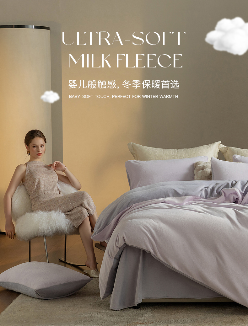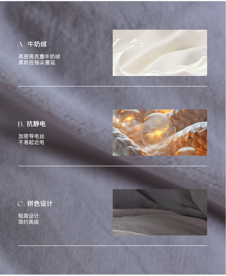 顶柔牛奶绒纯色双拼套件TJ1601,高密高克重牛奶绒拼色设计,简约高级