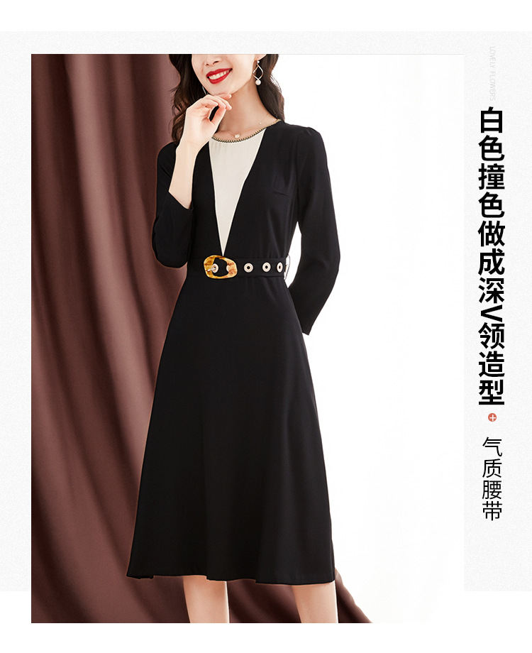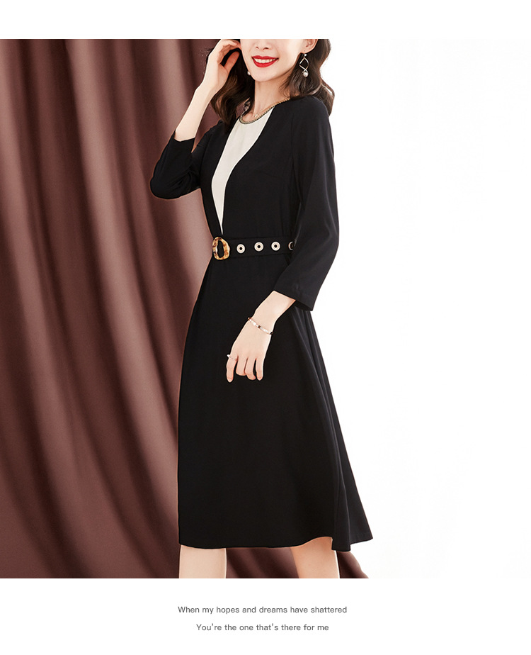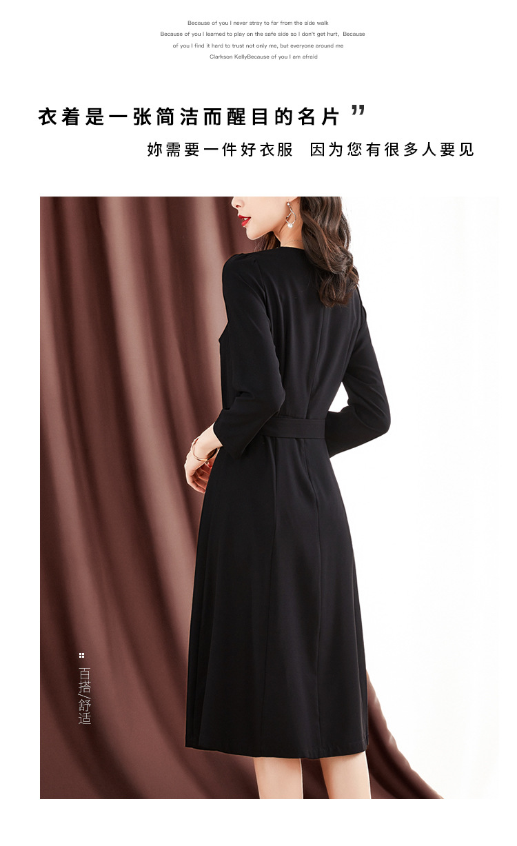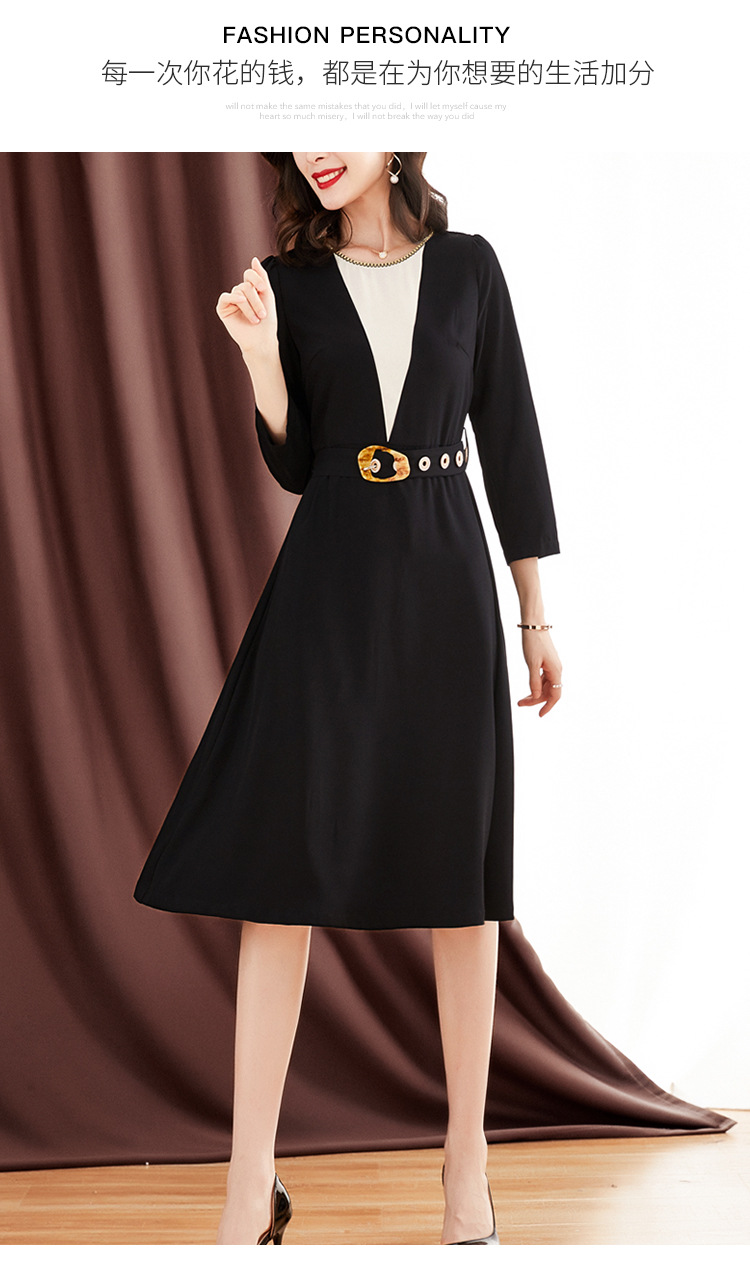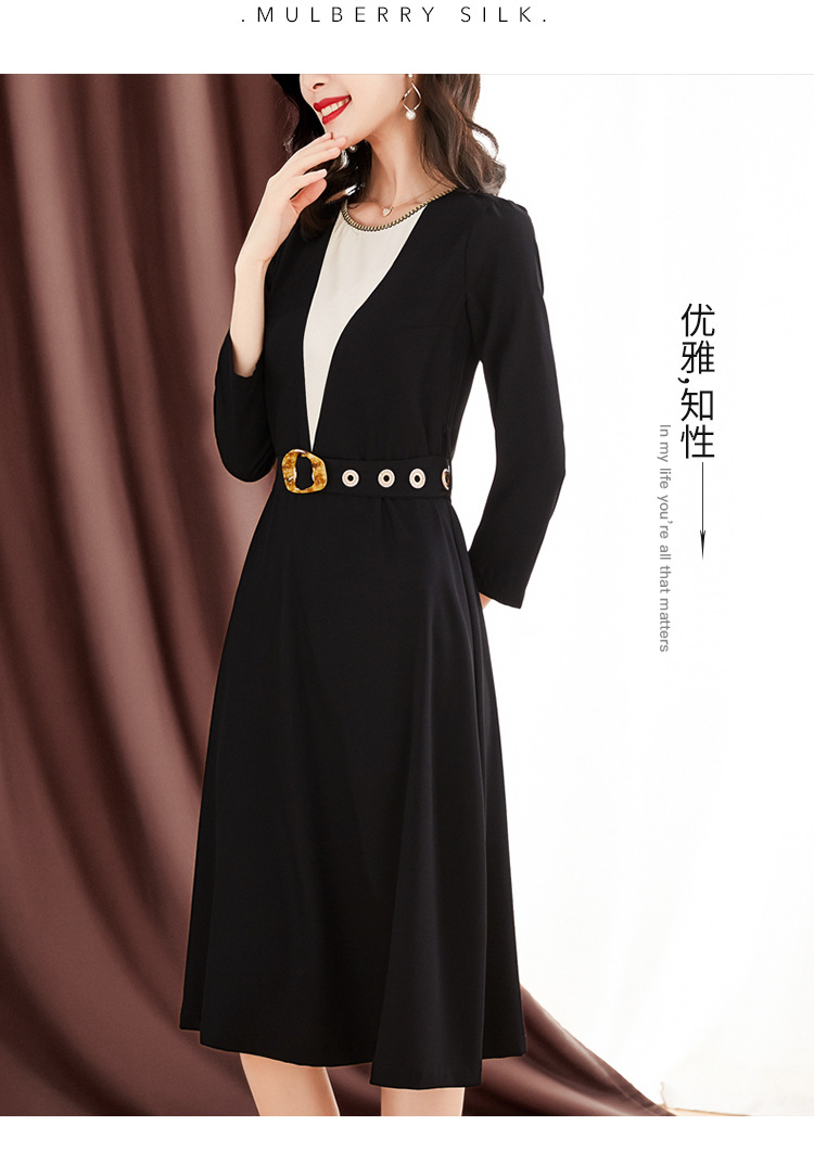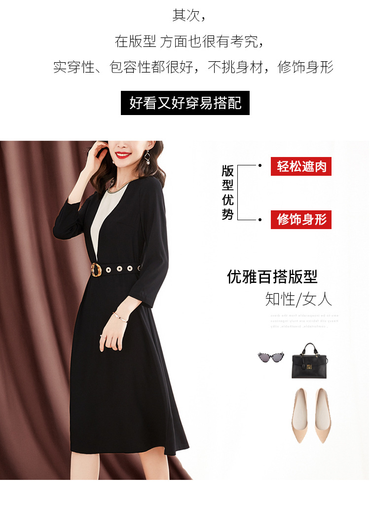 新款连衣裙轻熟腰带收腰拼接显瘦中长黑色裙子ZS-1050