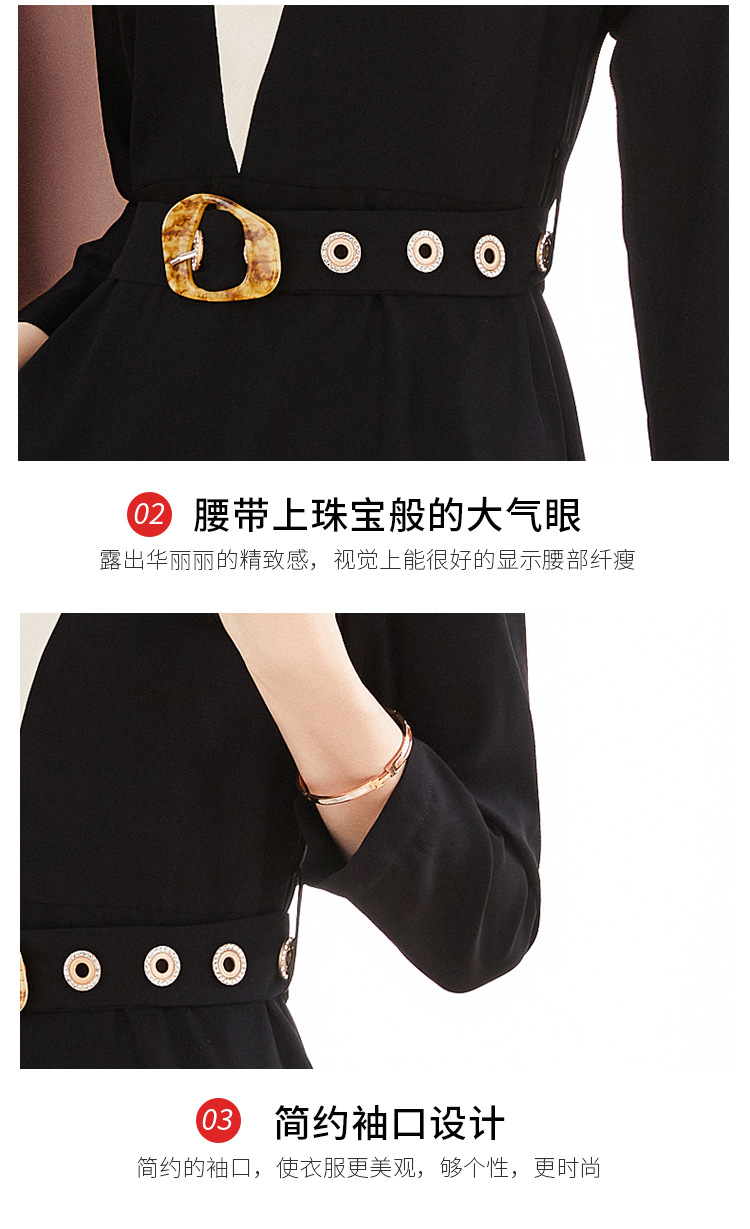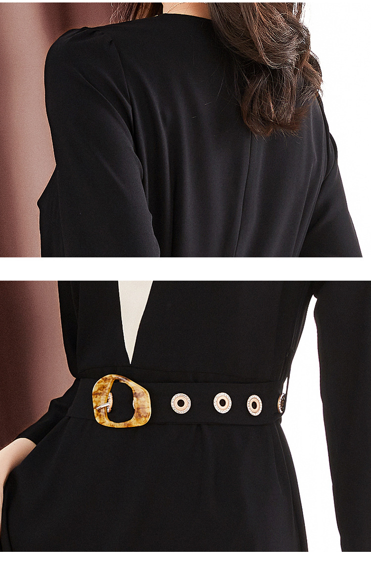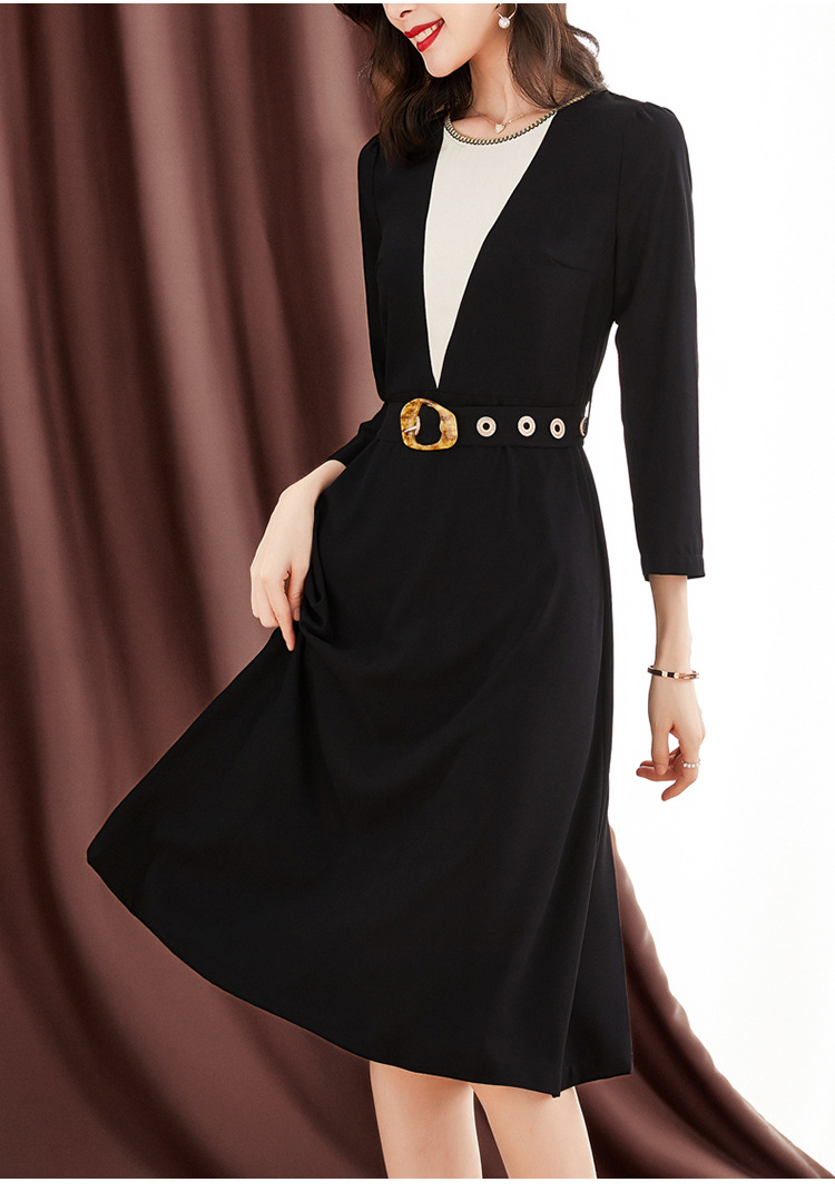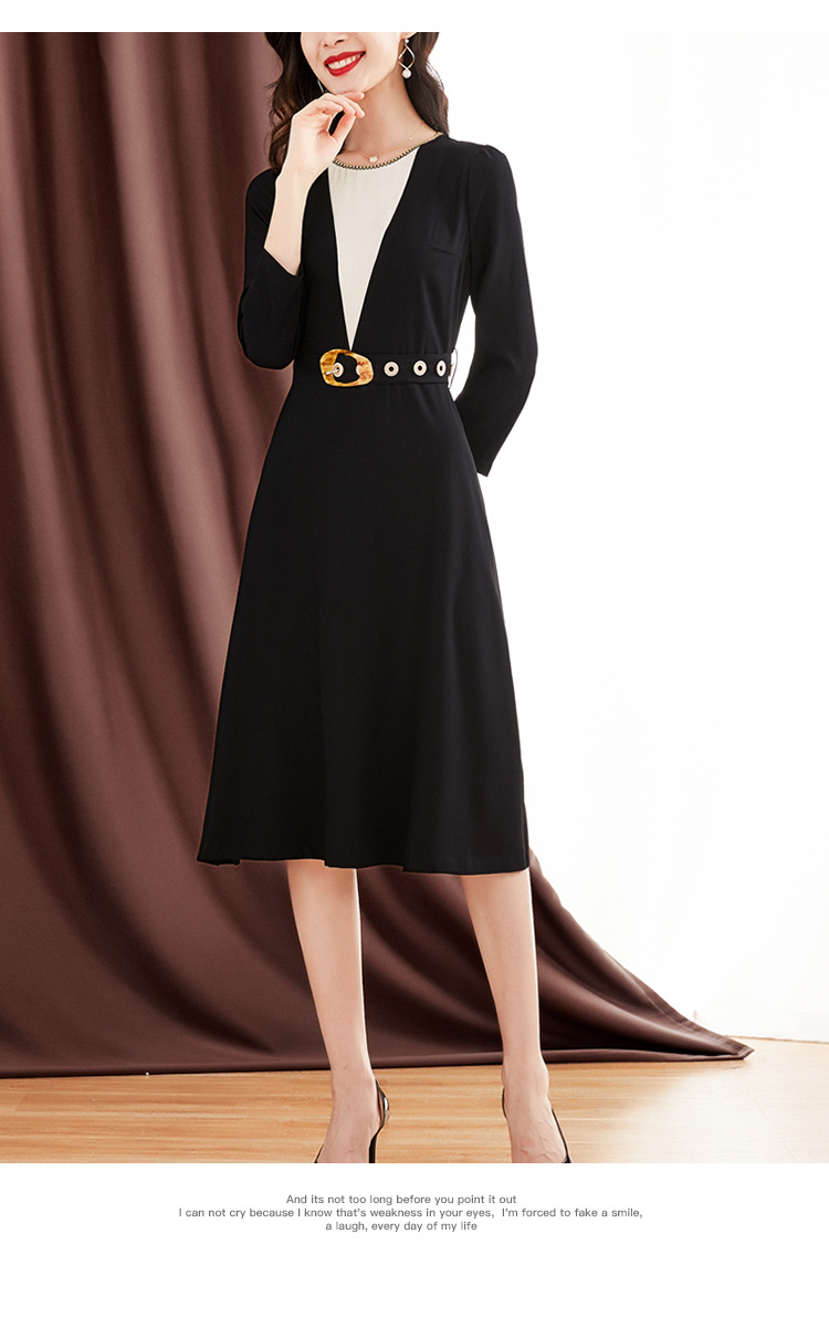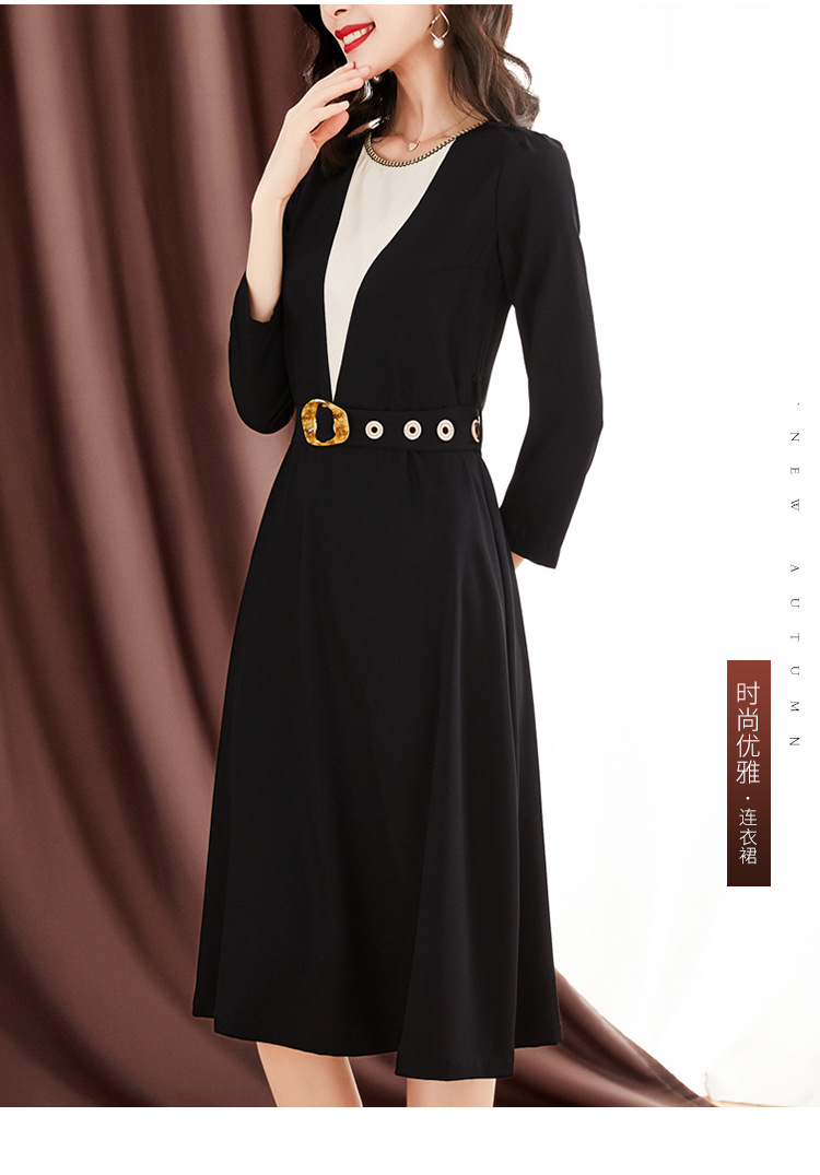 新款连衣裙轻熟腰带收腰拼接显瘦中长黑色裙子ZS-1050