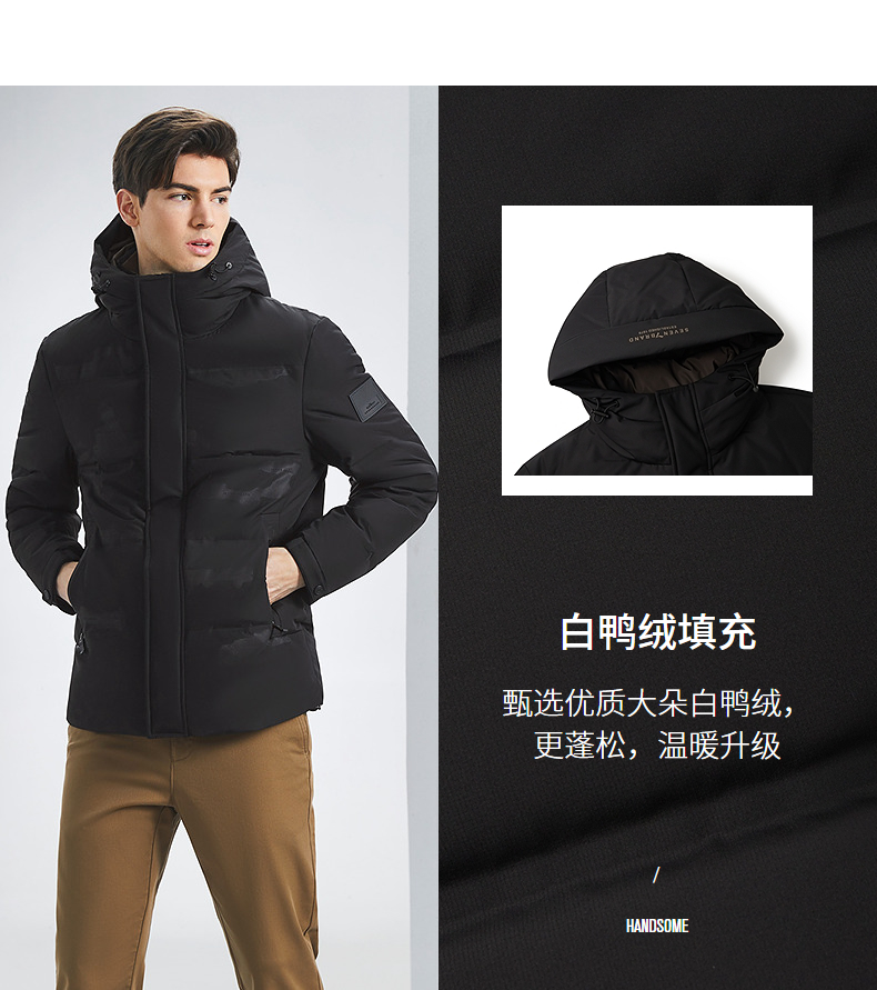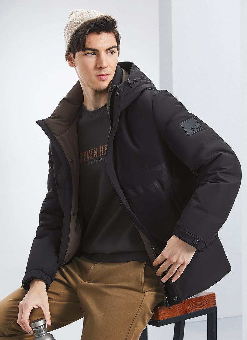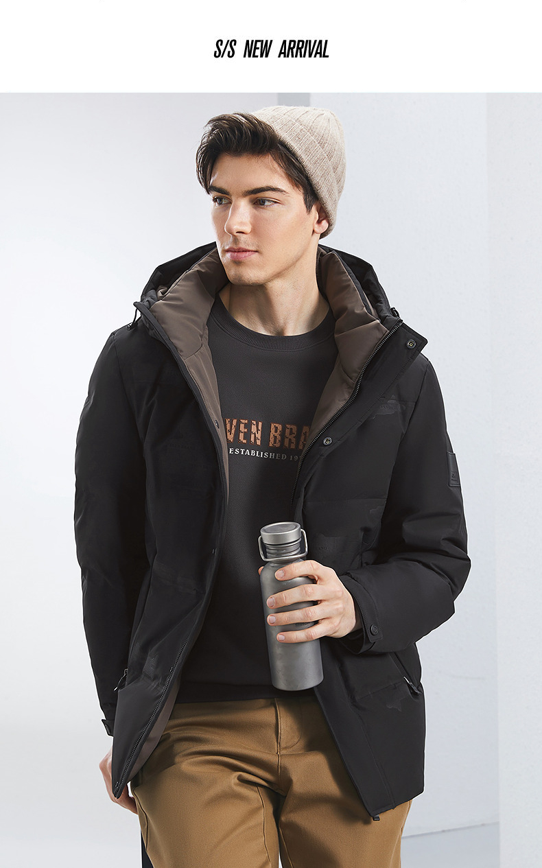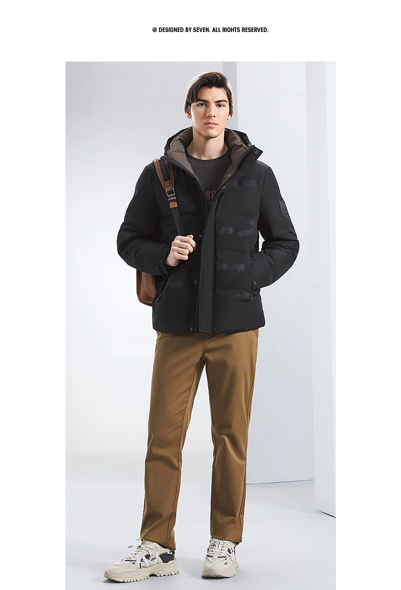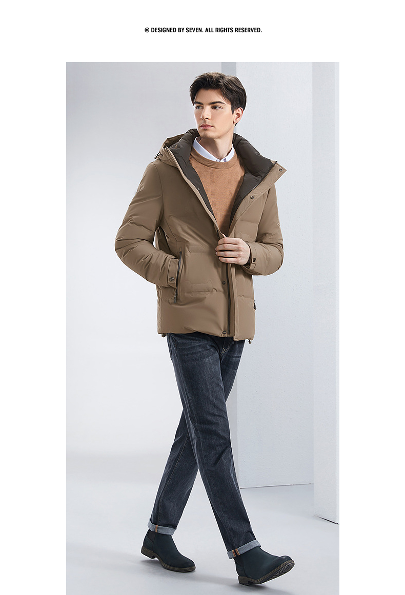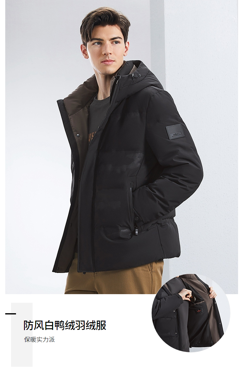【白鸭绒】柒牌羽绒服男冬季2024新款石墨烯保暖防寒男士连帽外套 127E70050