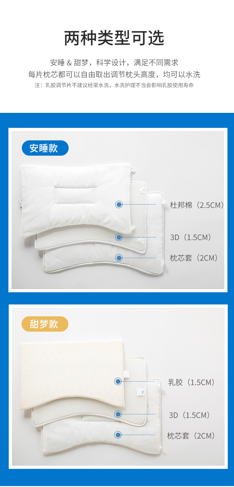 Dzone第一站 安睡(杜邦)&甜梦(乳胶)幼童枕 A类婴幼儿产品四季男宝女宝通用儿童枕 水洗透气0-1-6-10岁