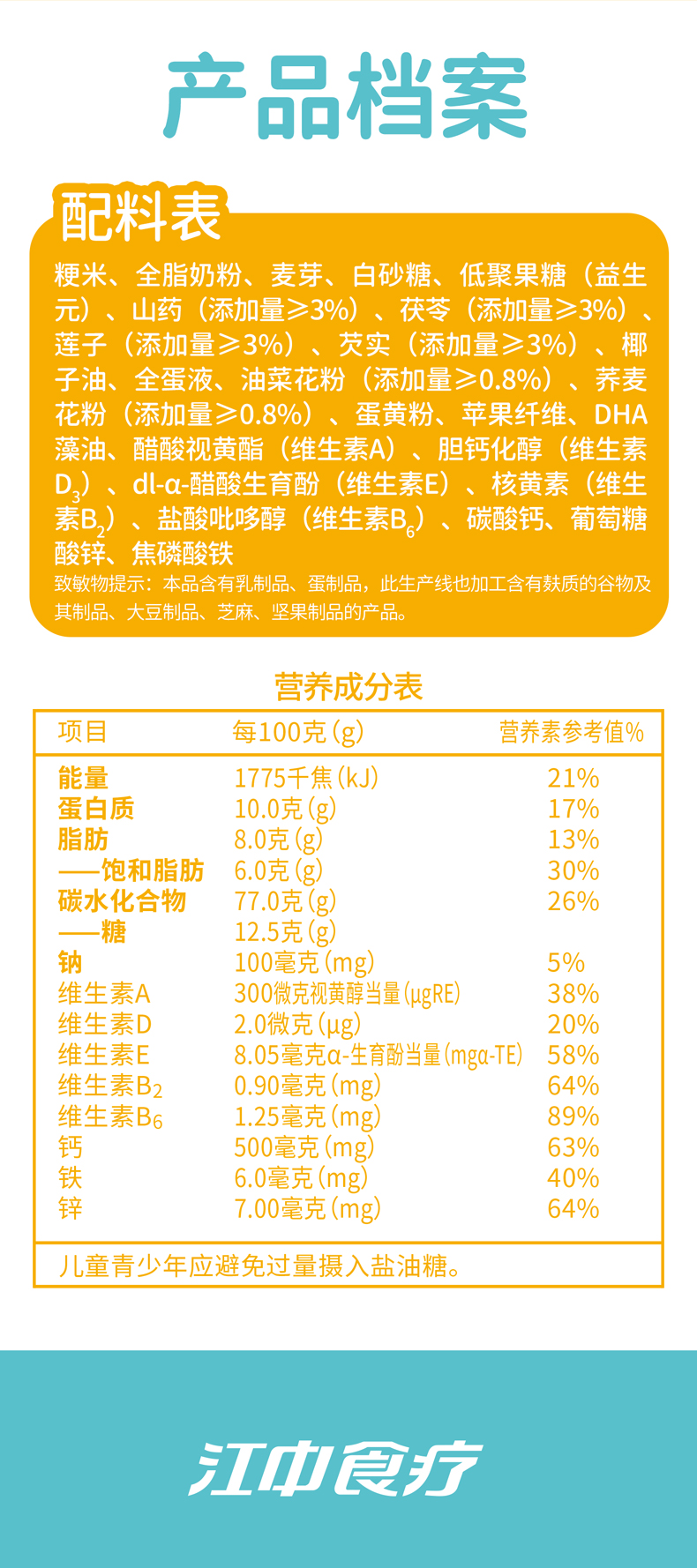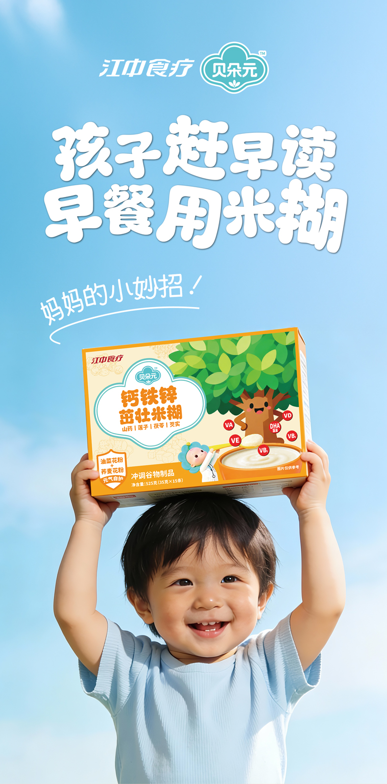 【新品】江中食疗贝朵元钙铁锌茁壮米糊15条装 525g/盒