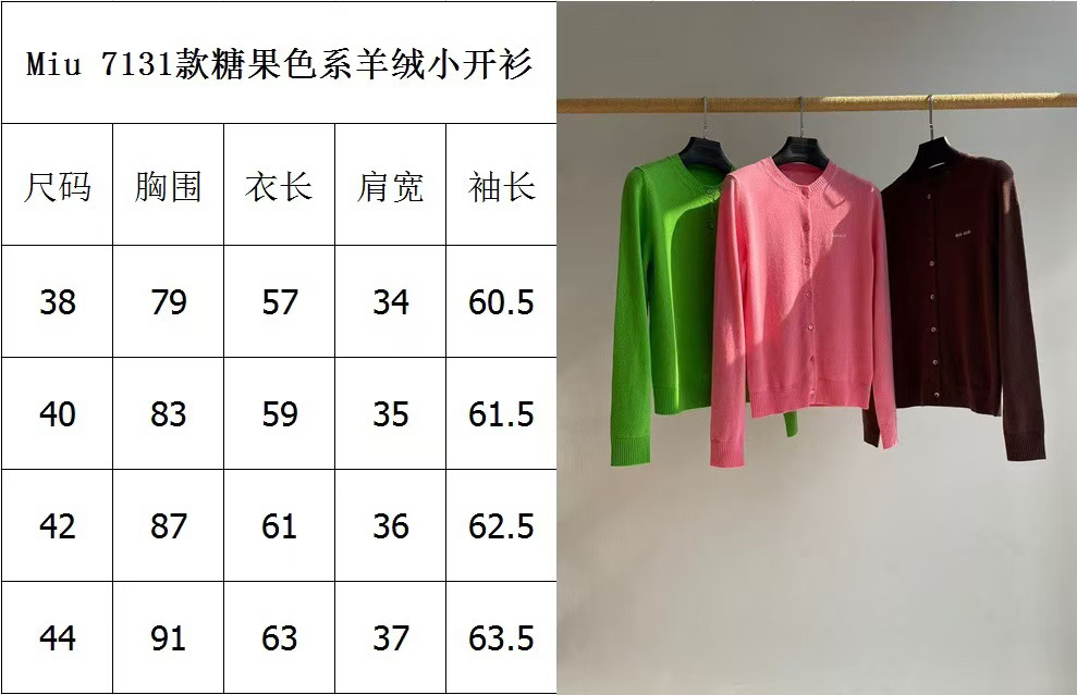1123-2 渠道货 Miu糖果色系 山羊绒 针织开衫 我穿42或44差别不大