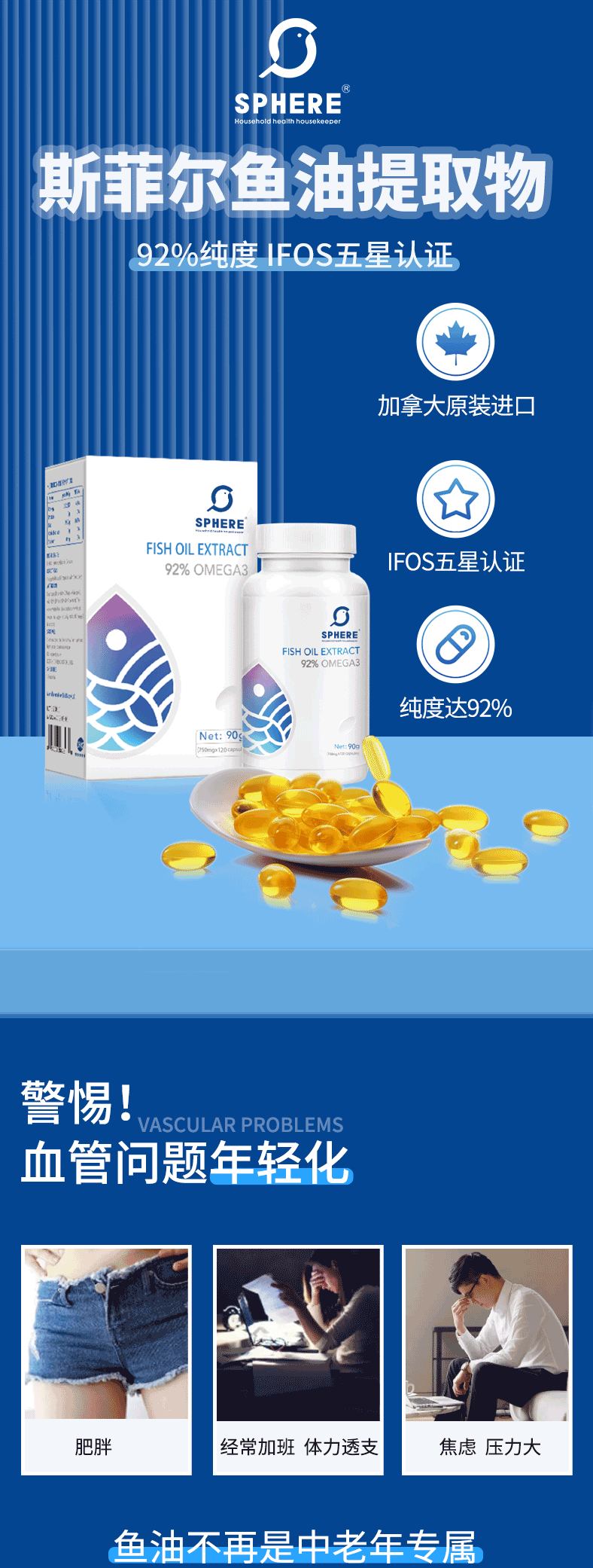 【预售】SPHERE斯菲尔92%高纯度鱼油omega3 含dha成人常备鱼油胶囊 120粒/瓶