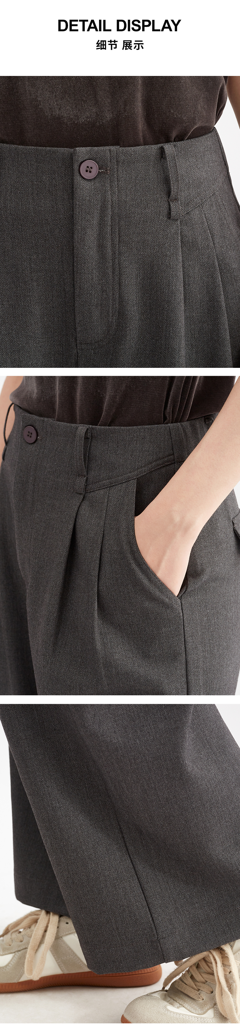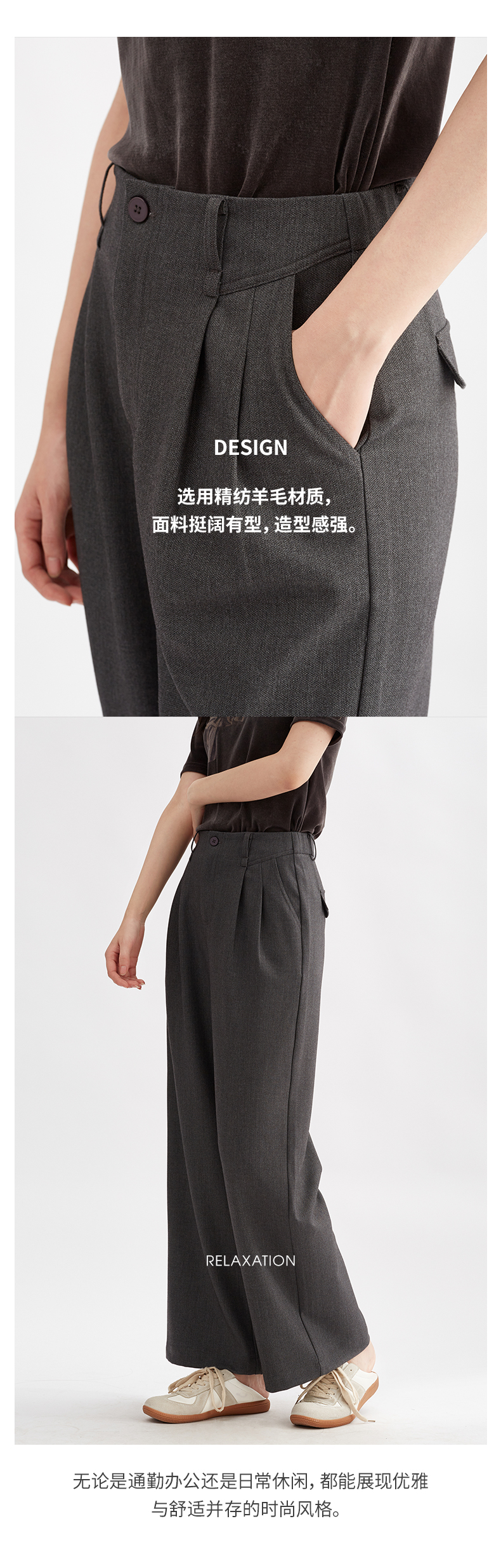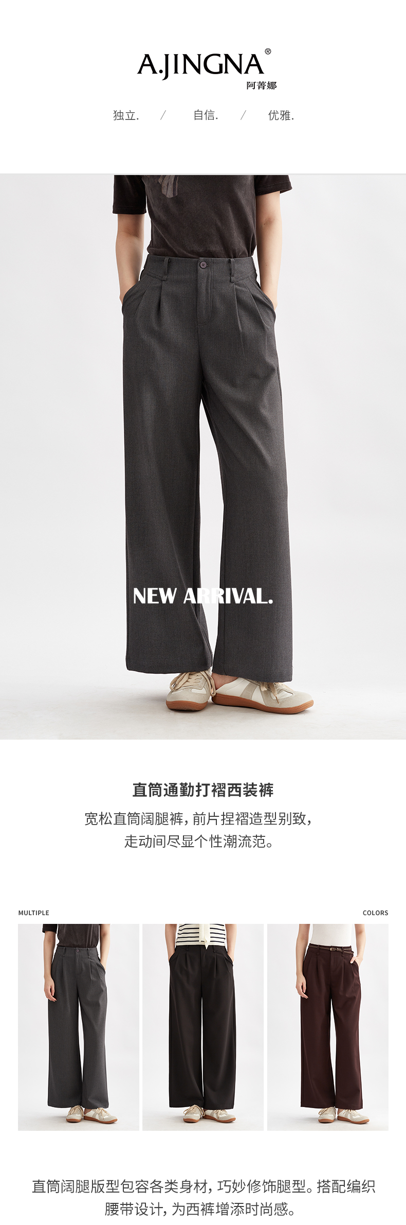 【直筒阔腿】阿菁娜直筒通勤西装裤高腰休闲打褶长裤F30Q210007