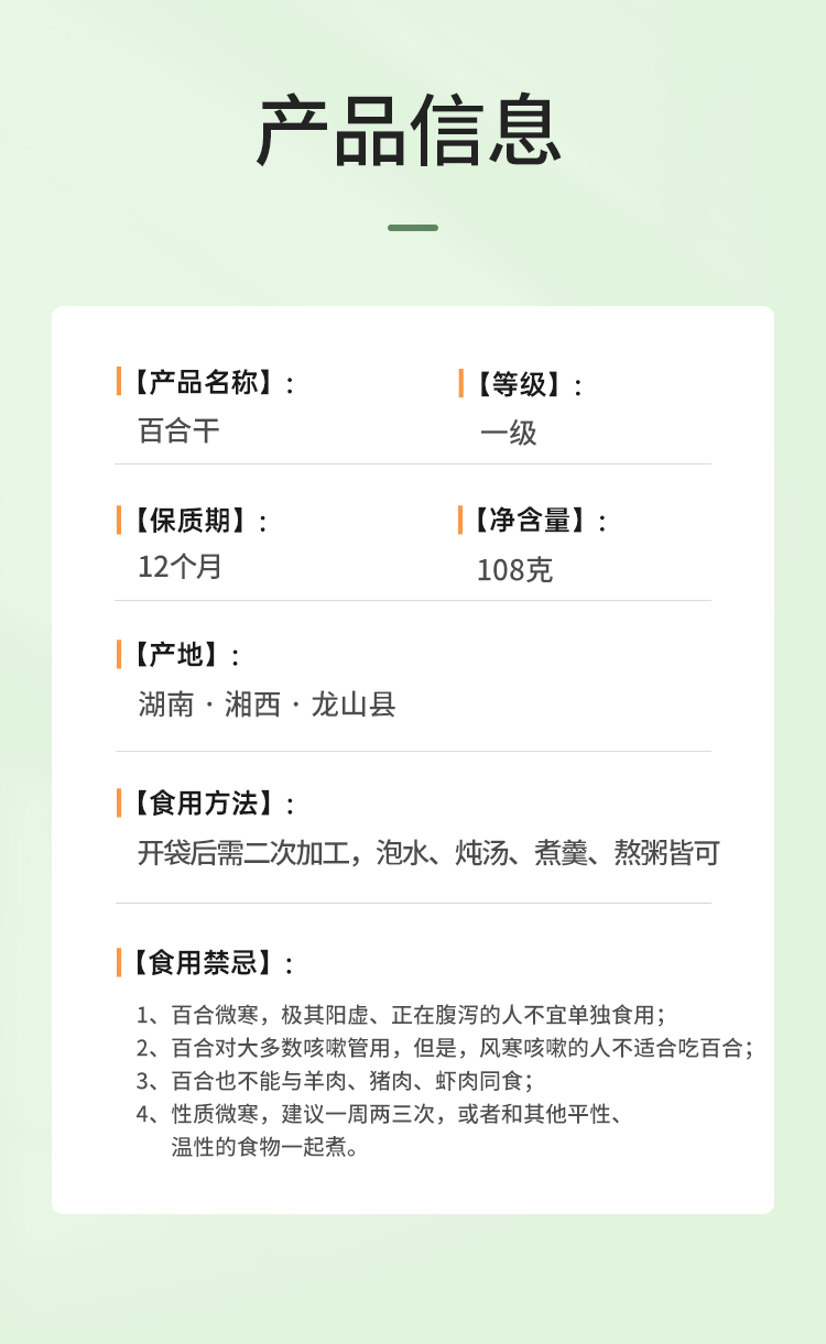【红杏林】龙山一级百合 微苦回甘 片大肉厚 无硫原色