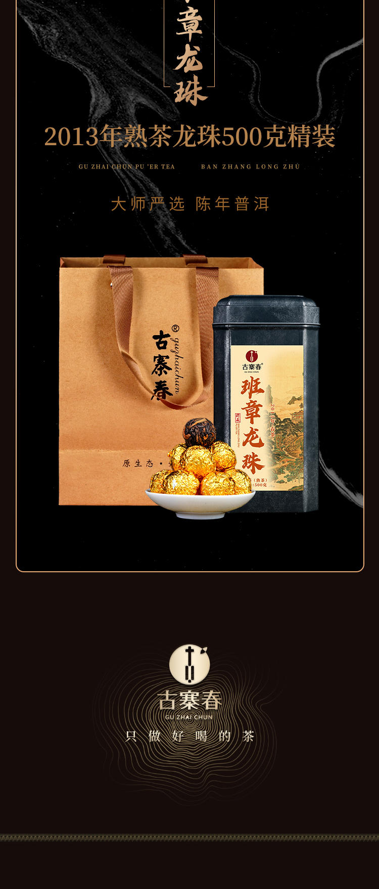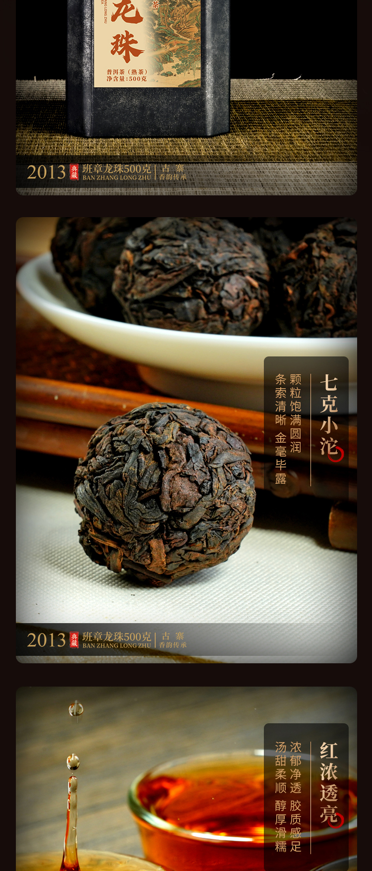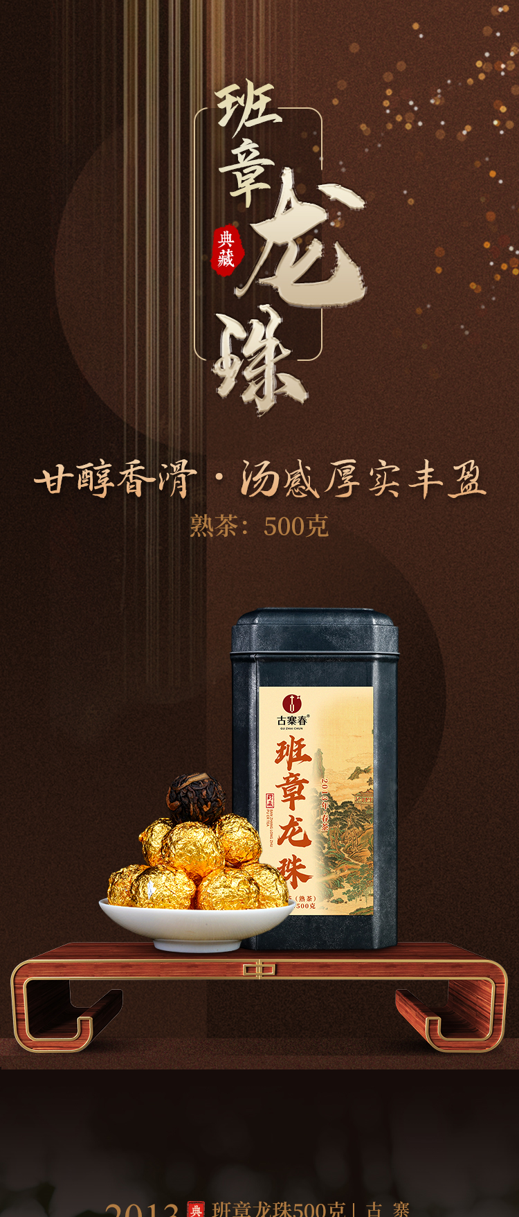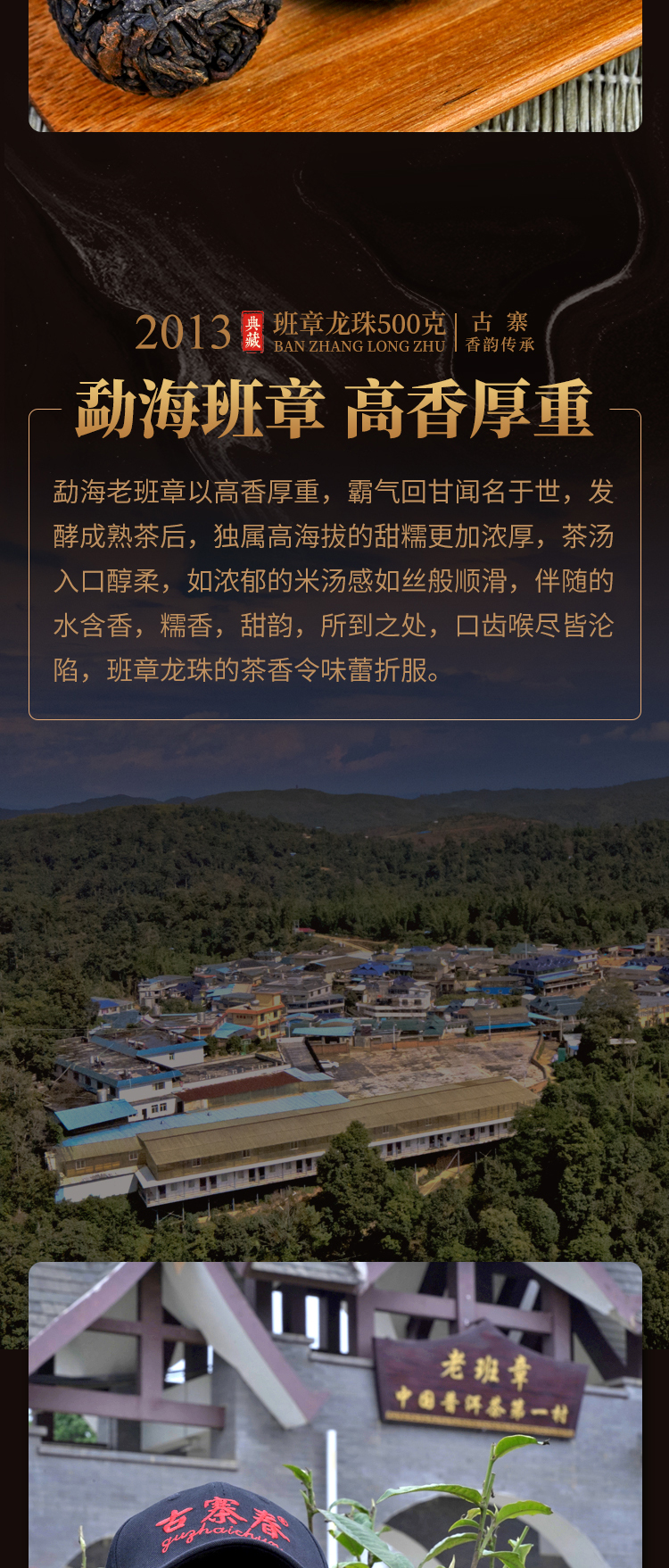 仅余几罐【班章熟茶龙珠】2013年勐海茶区班章拼配而成,甘醇香滑汤感厚实丰盈,500克/罐