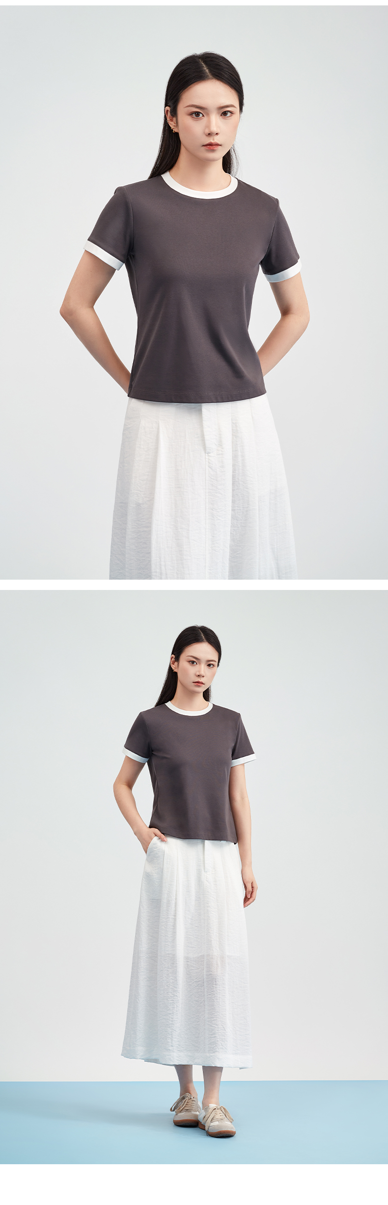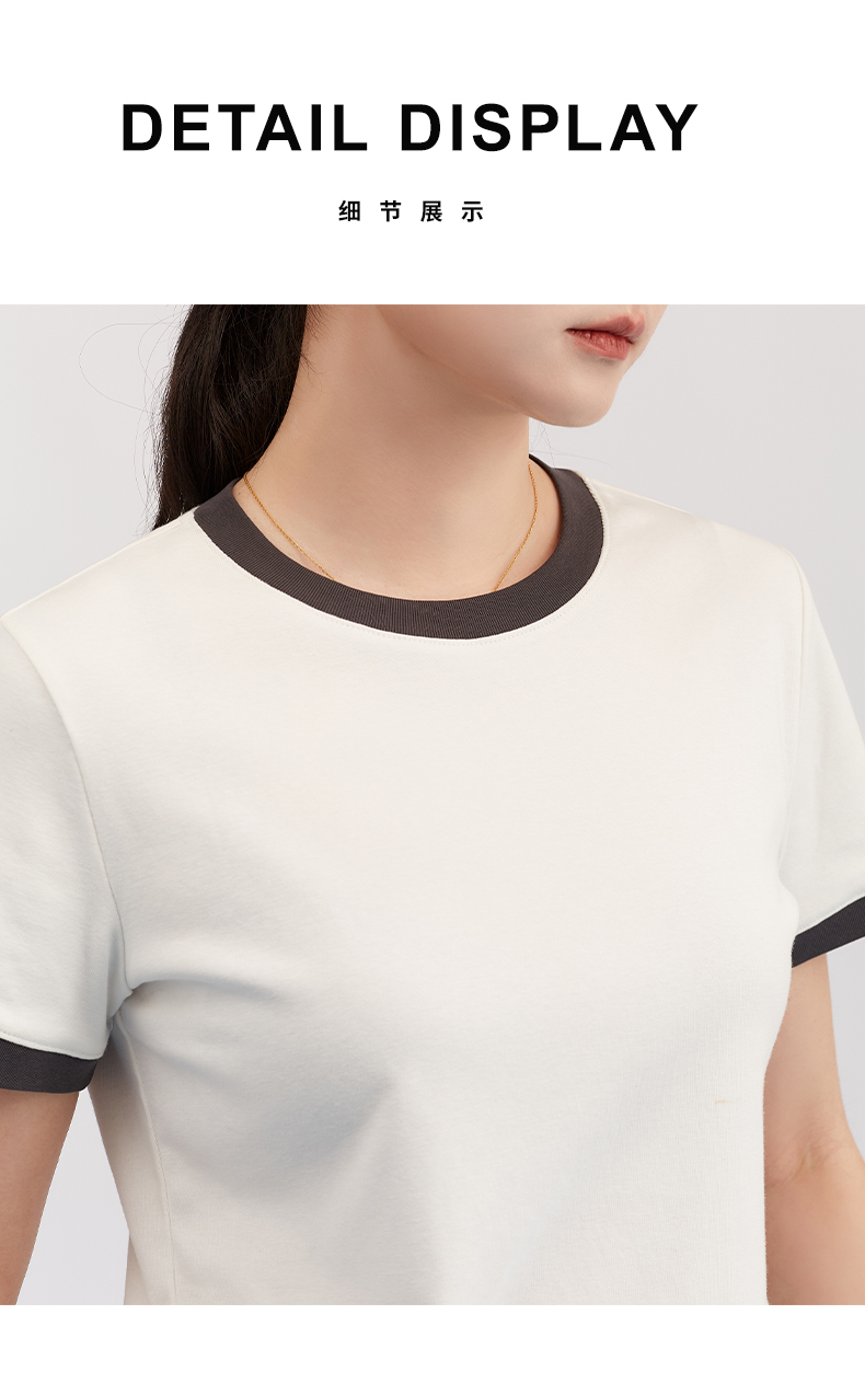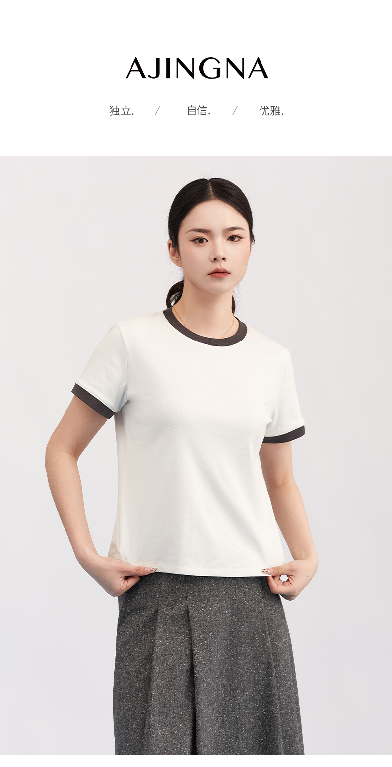 【商场同款】阿菁娜春夏季新款设计感白T恤撞色包边设计微宽松H型显瘦遮肉A31X101006