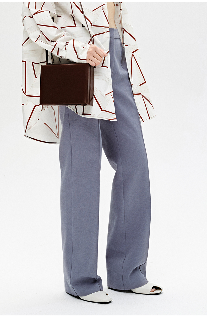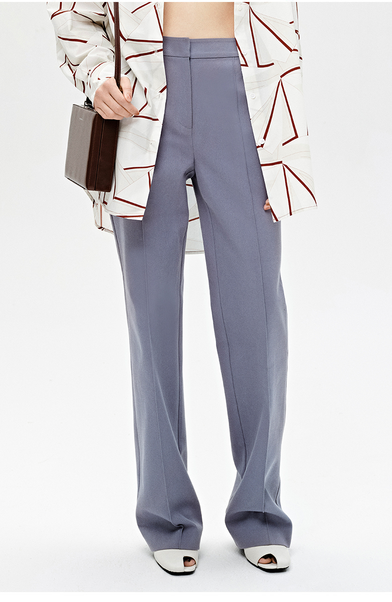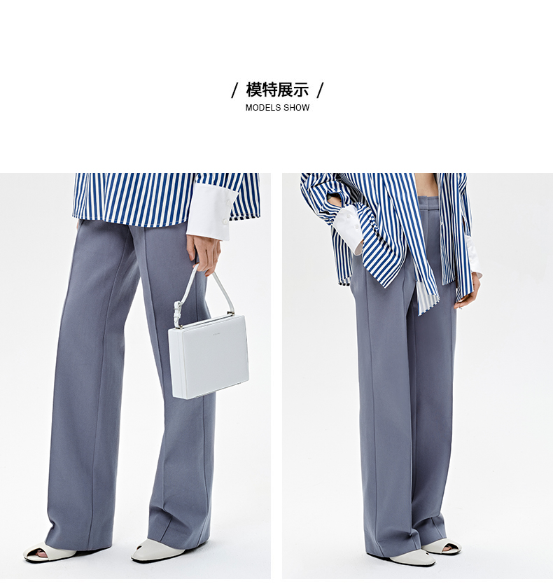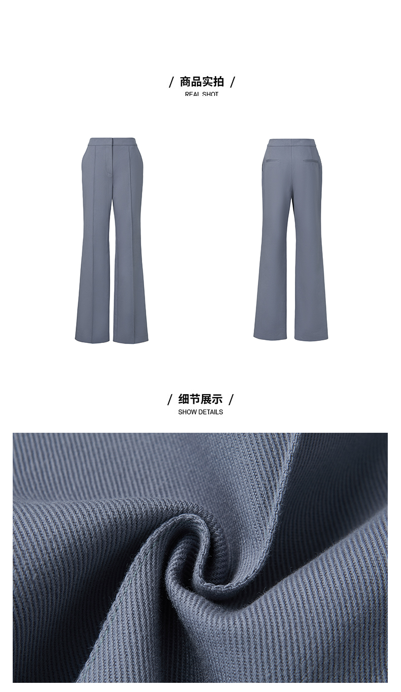 HIDEMI 雾霾蓝显瘦微喇型斜纹棉质长西裤