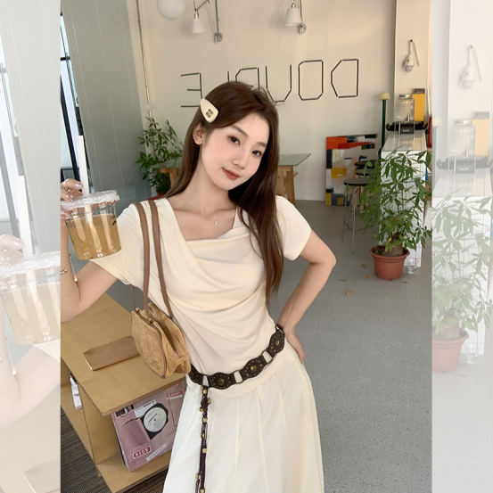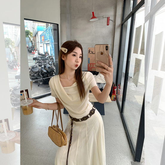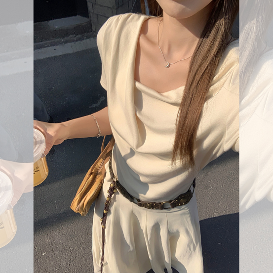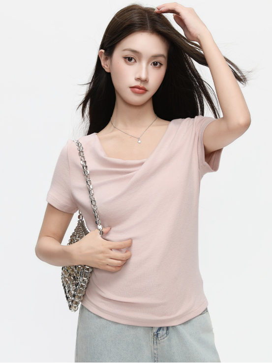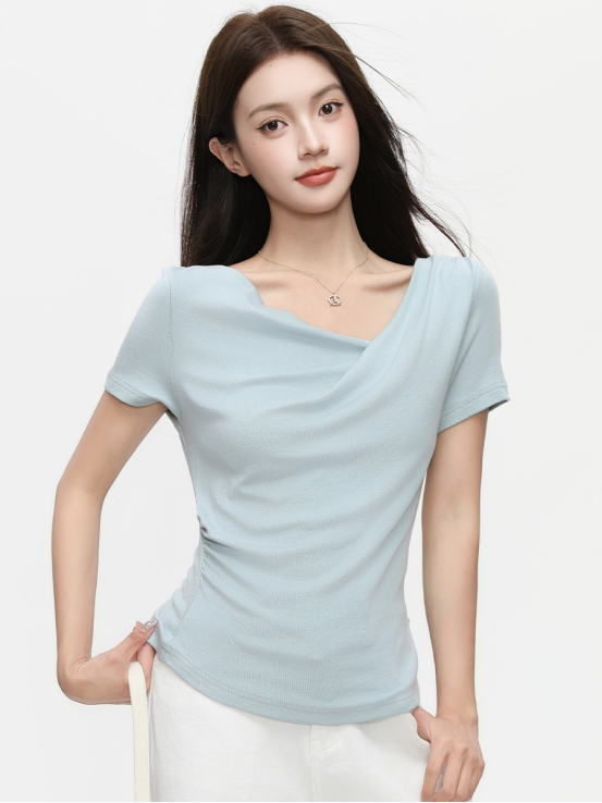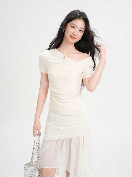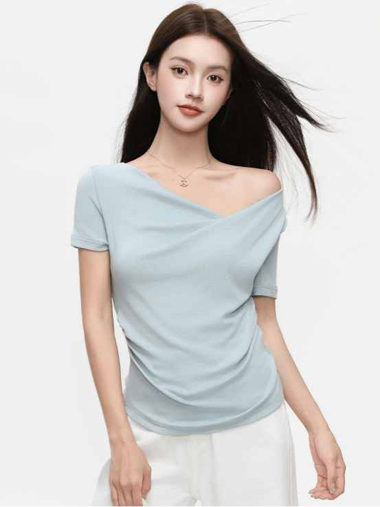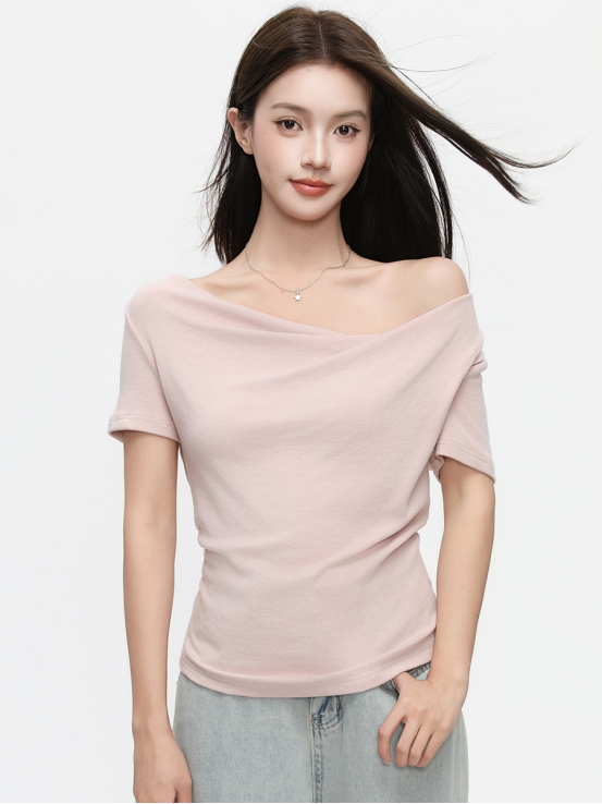 Avann韩系纯欲辣妹荡领性感露肩短袖T恤