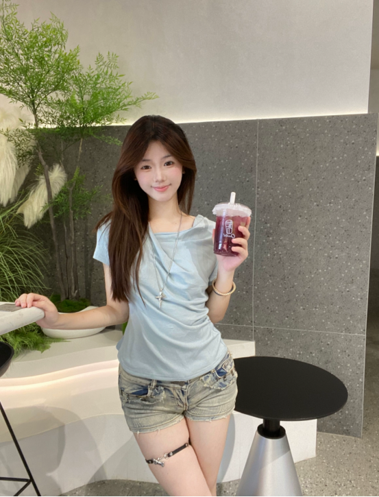 浅蓝色 “海盐气泡蓝💧|视觉降温5℃! 克莱因蓝的显白平替, 配白色短裤=行走的纯欲氧气瓶, 海边拍照点赞爆棚神器!