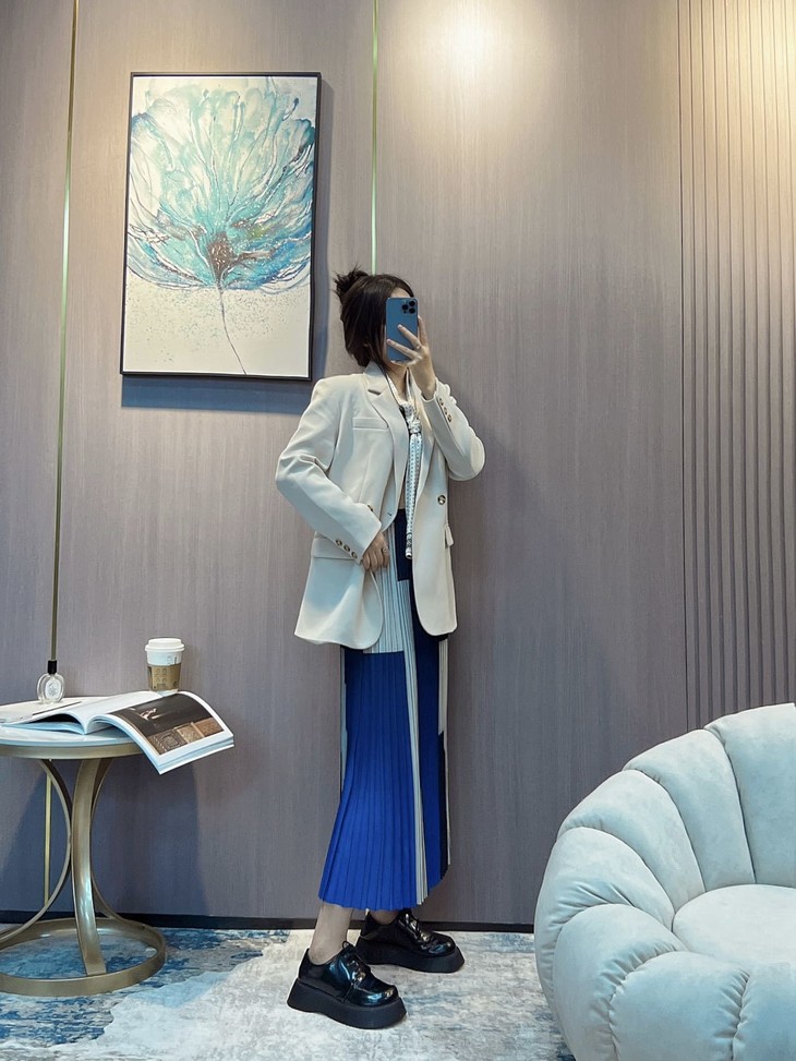 ⚠️懒人必备穿搭法 ✔️硬朗的牛仔外套混搭优雅的百褶裙,修饰身形飒爽有范 ✔️衬衫与半裙,职场总裁范 ✔️运动卫衣混搭百褶裙,温柔又有力量,减龄有活力 ✔️毛衣搭百褶裙高颜值CP组,真正的集优雅浪漫、慵懒气质于一身♥️女人味爆棚,春日出游踏青上镜好看到亮瞎眼 不知如何选择裙子的姐妹,推荐这个系列闭眼入🛒🛒 懒人百搭又遮肉,绝了🔺