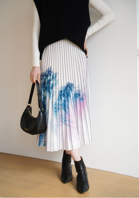 【品牌直发】GUNEFUU古那福气质半身褶皱裙❗️灵动飘逸的色彩 ,褶皱A字长裙显高显瘦还百搭!