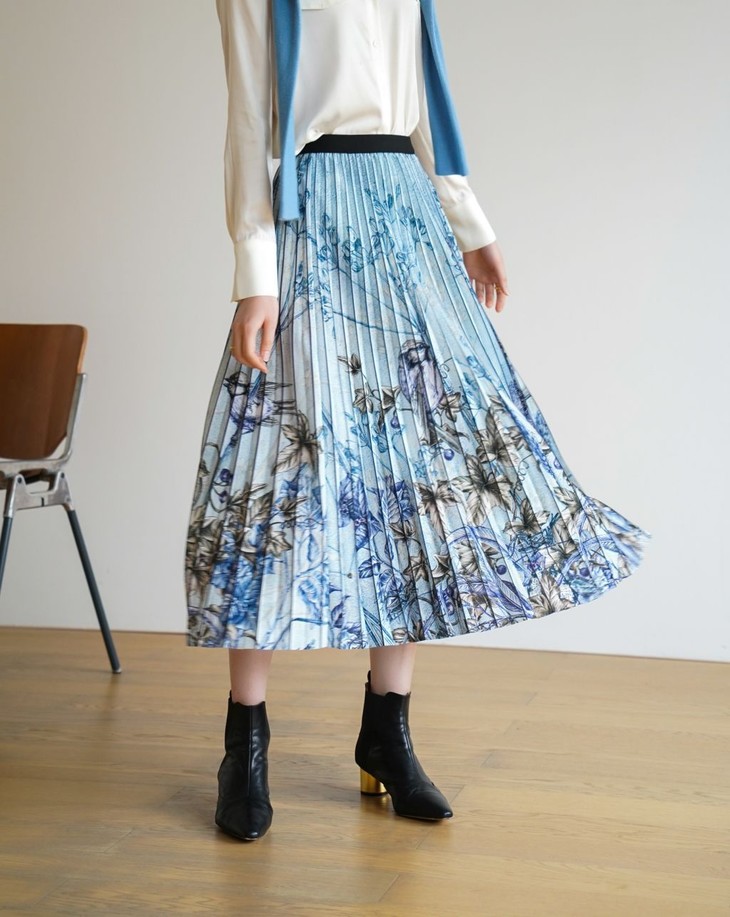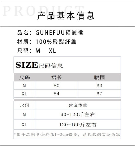 ♨️推荐理由: ✅A字版型,实穿百搭 ,修饰臀胯曲线,梨形姐妹放心穿 ✅褶皱长裙版,藏肉又有垂感穿着显瘦,修饰身材比例,拉出大长腿的心机效果 ✅甄选高级时装面料,有筋骨感的面料猜撑得起立体感的裙身 ✅通过高温压褶很立体,视觉上更有层次感和韧性,久穿久洗不易散开 ✅松紧腰舒适有弹性,回弹性好不易松垮 ✅裙长至小腿,最优雅的最有韵味的长度,不挑人好驾驭