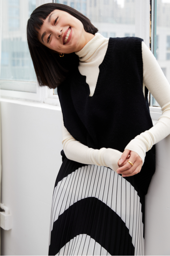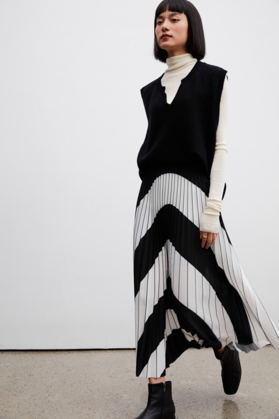 🎹 【夜曲 】 下弧形设计 ,简约黑白配色 绝对是显瘦王炸,没有用常规的黑白条纹 而是用了弧形的设计 低调的展现与众不同的独特品味 轻松简约的表达自己的时尚态度 不费力的小众高级