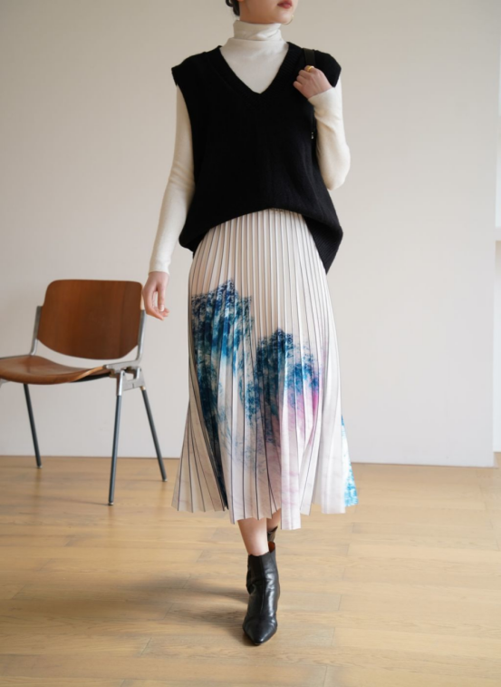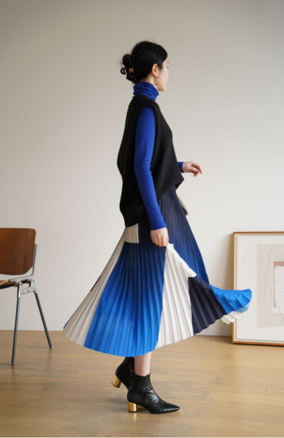 日本GUNEFUU的这款褶皱长裙 延续了三宅一生的褶皱氛围感