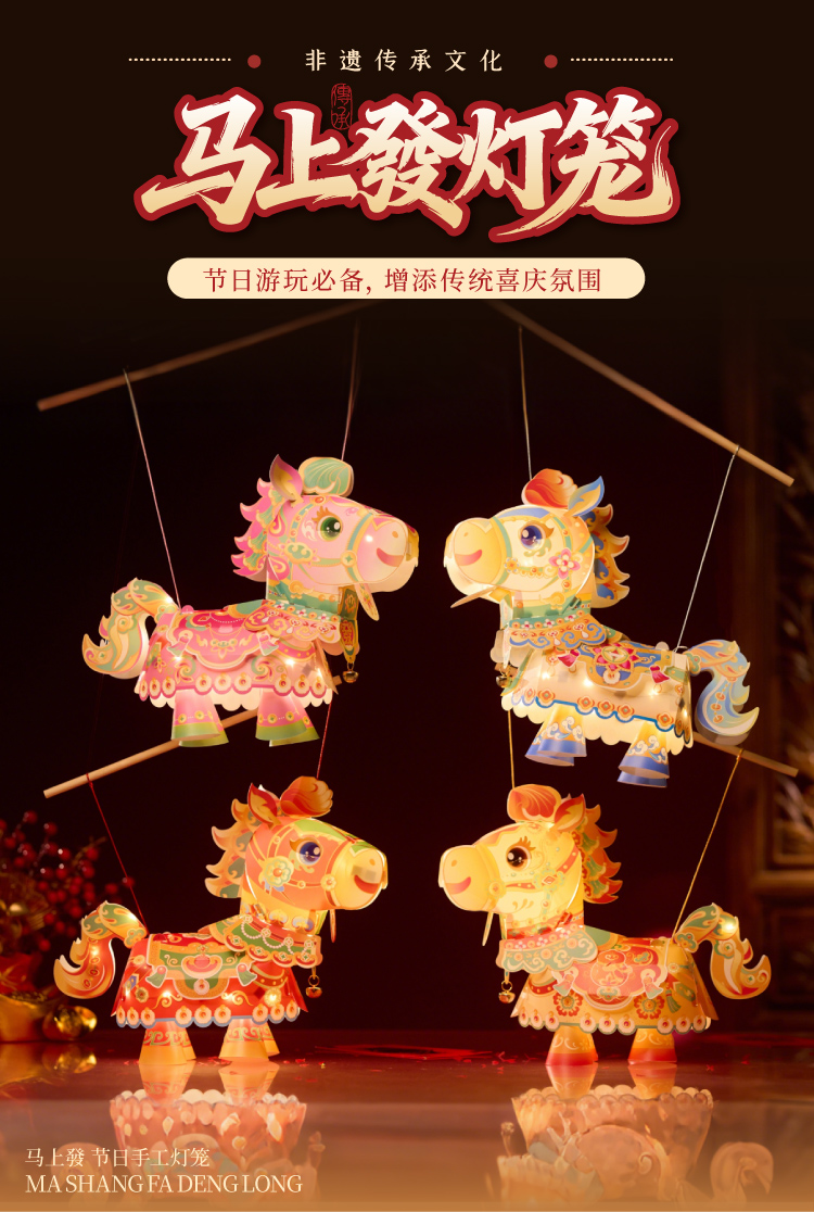 新年春节元旦马年马上發灯笼手工diy儿童制作材料包花灯装饰2026