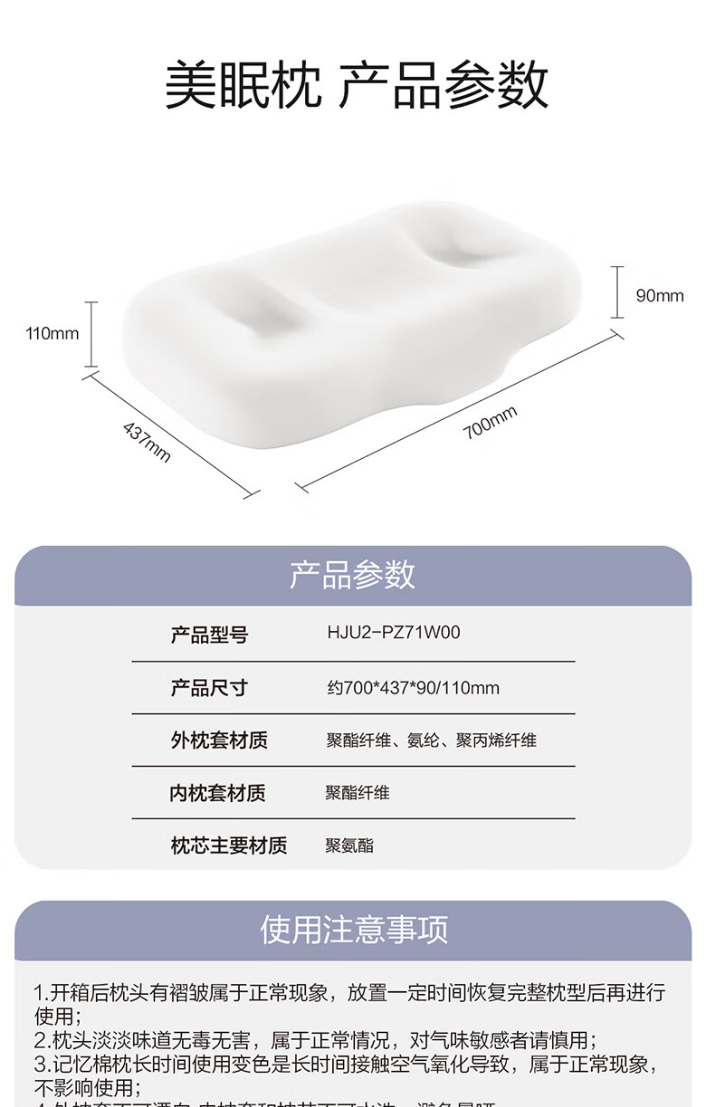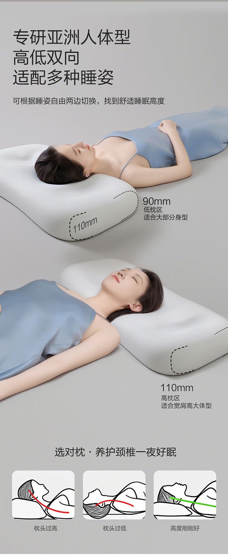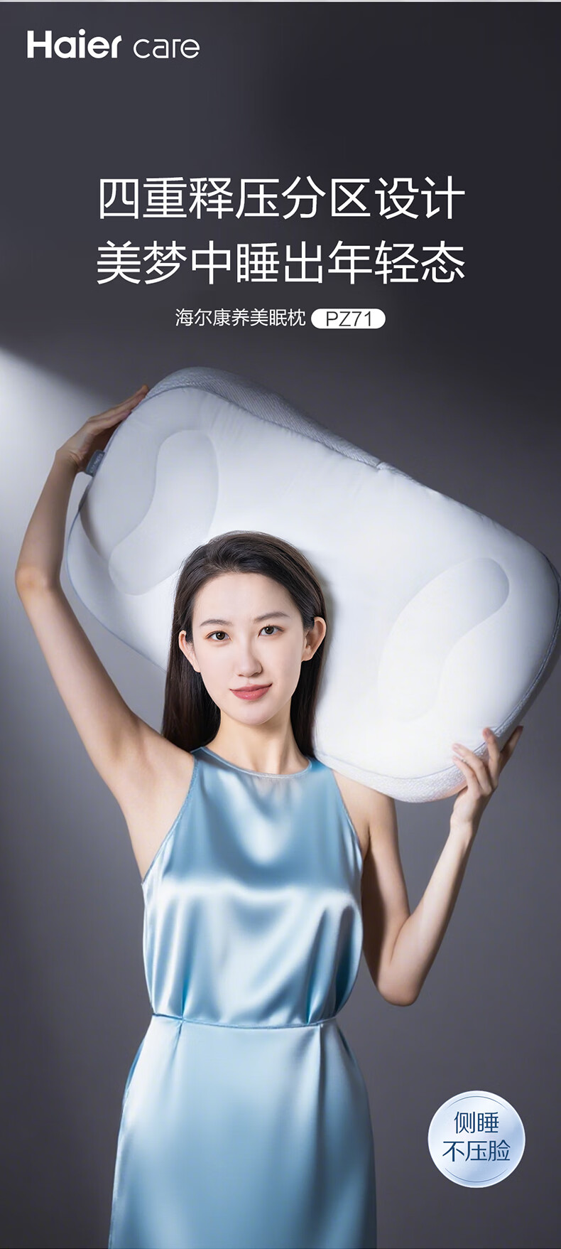 海尔康养PZ71美眠枕头护颈侧睡不压脸人体工学分区腰果枕温感科技