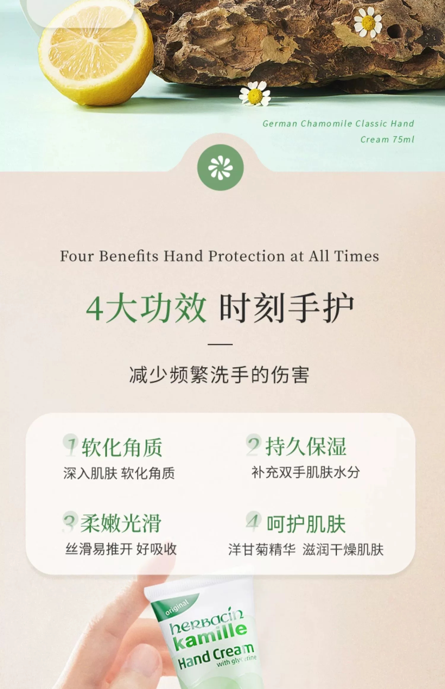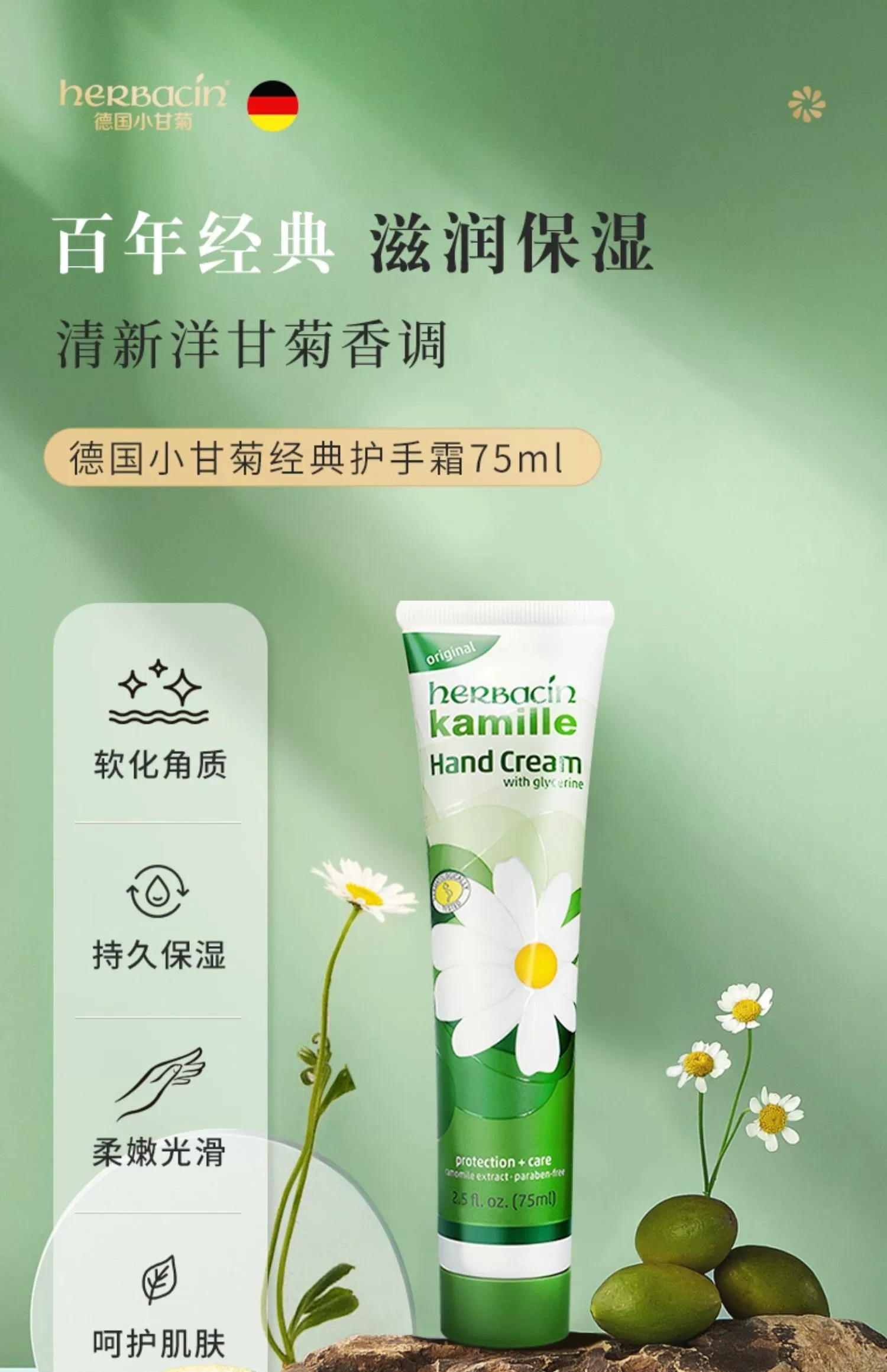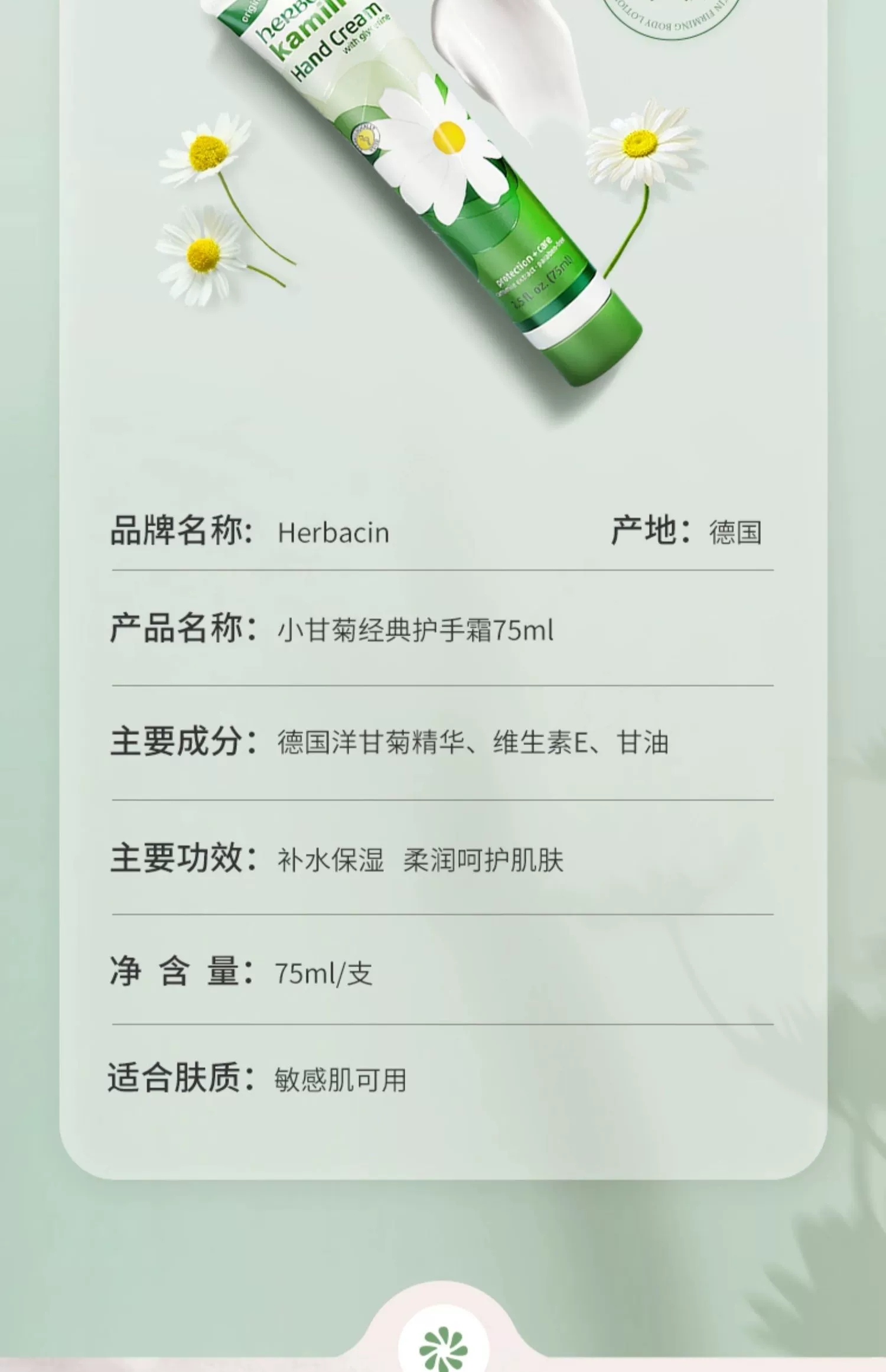 Herbacin/贺本清德国小甘菊好本清经典护手霜75ml*1支保湿嫩白 1件装