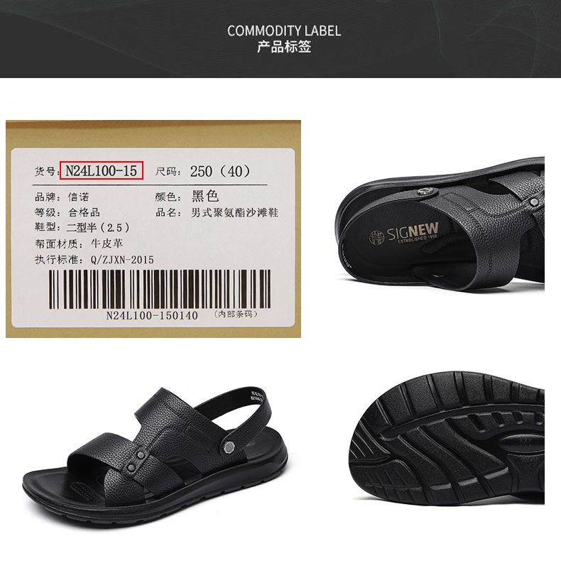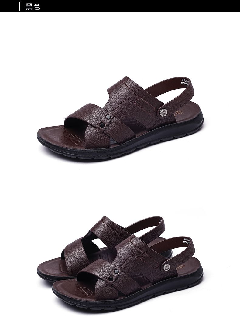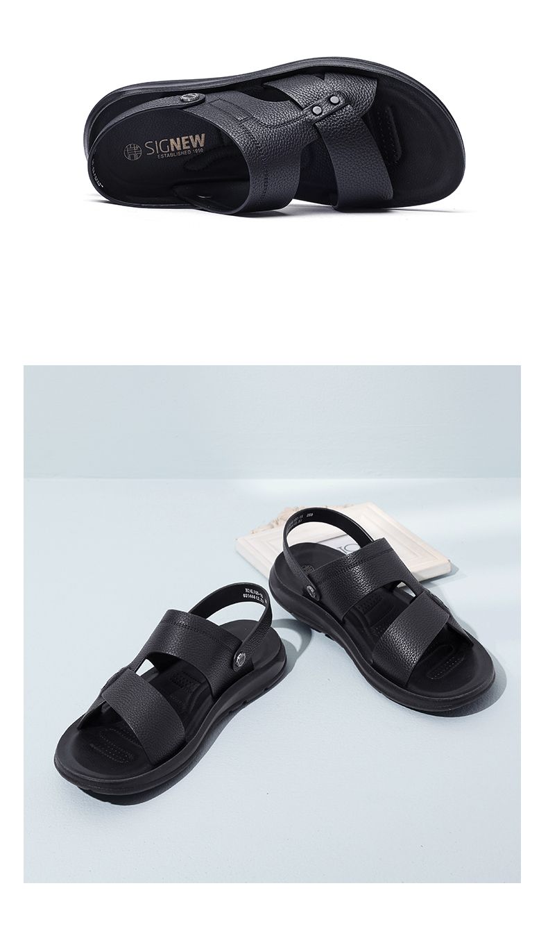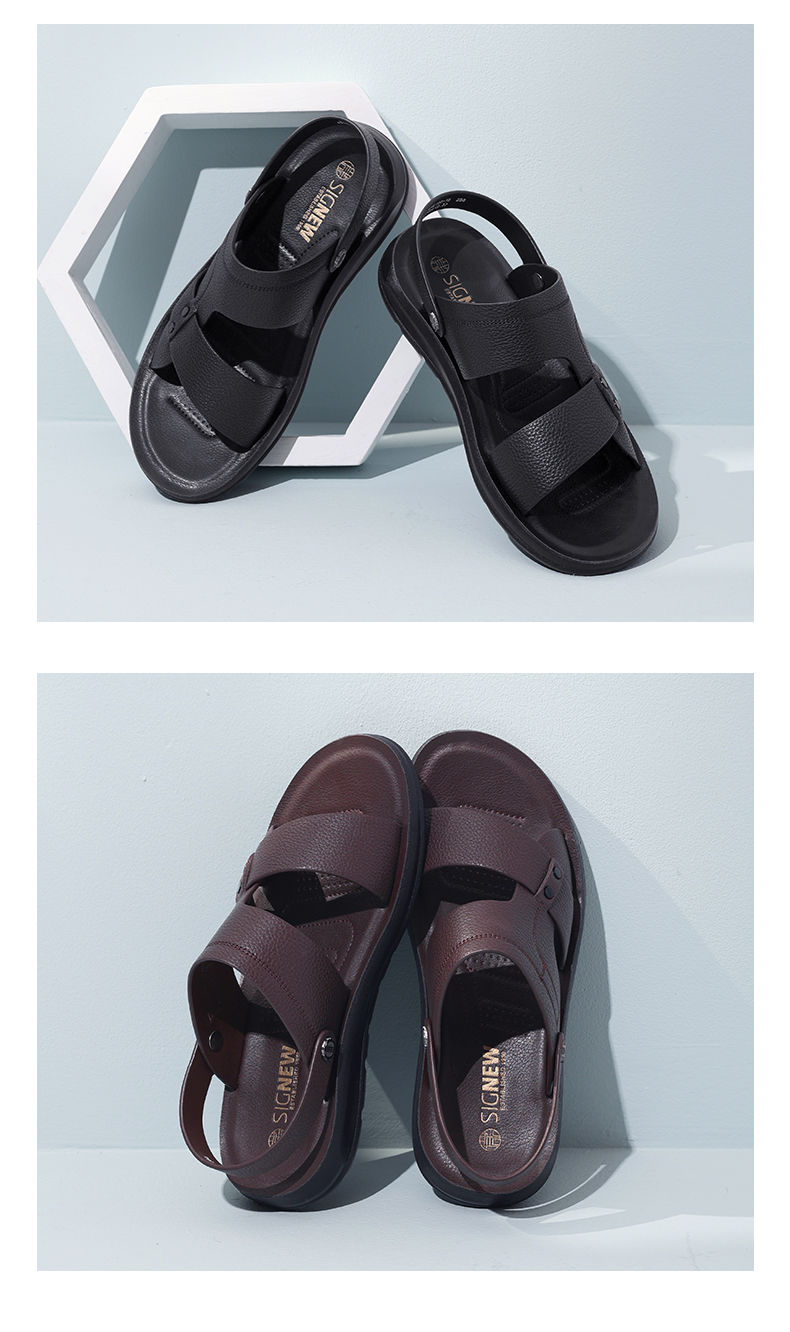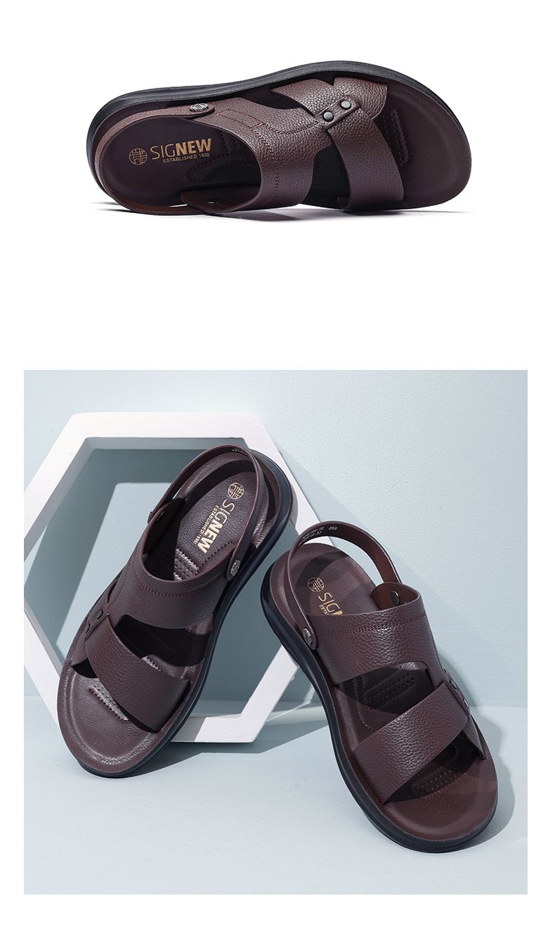 信诺 真皮舒适凉鞋 2024新款夏季男沙滩拖鞋中老年大码两穿爸爸鞋N24L100-15