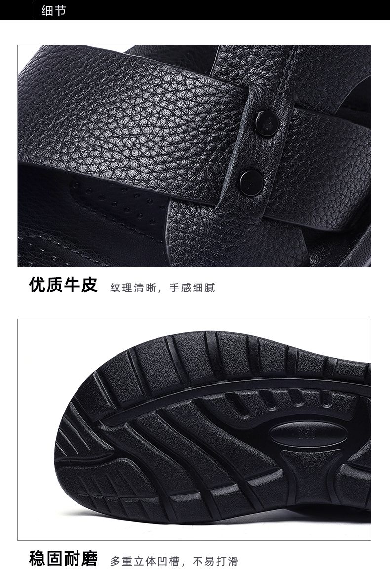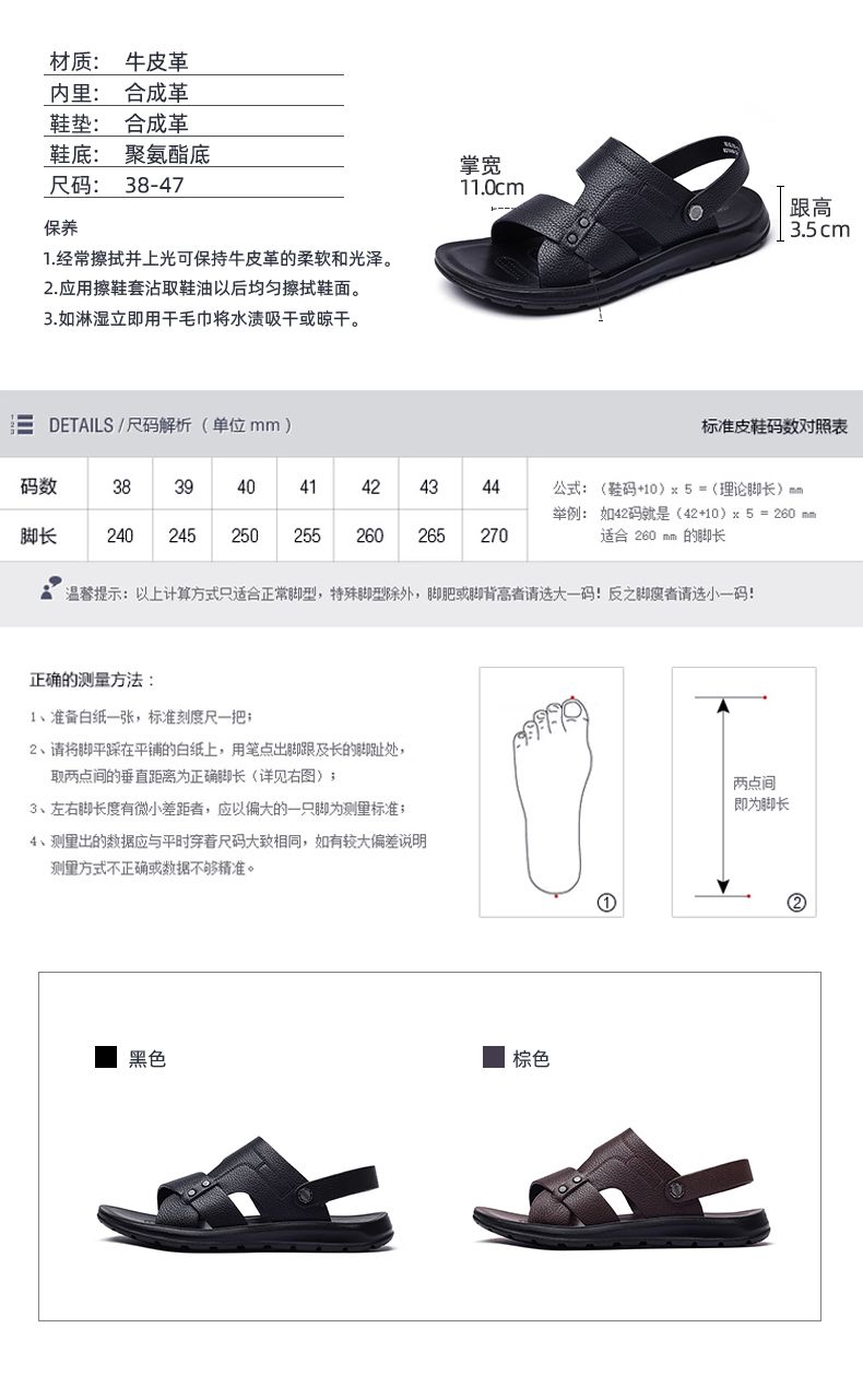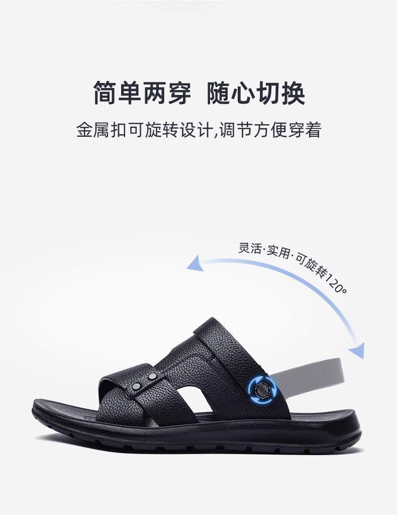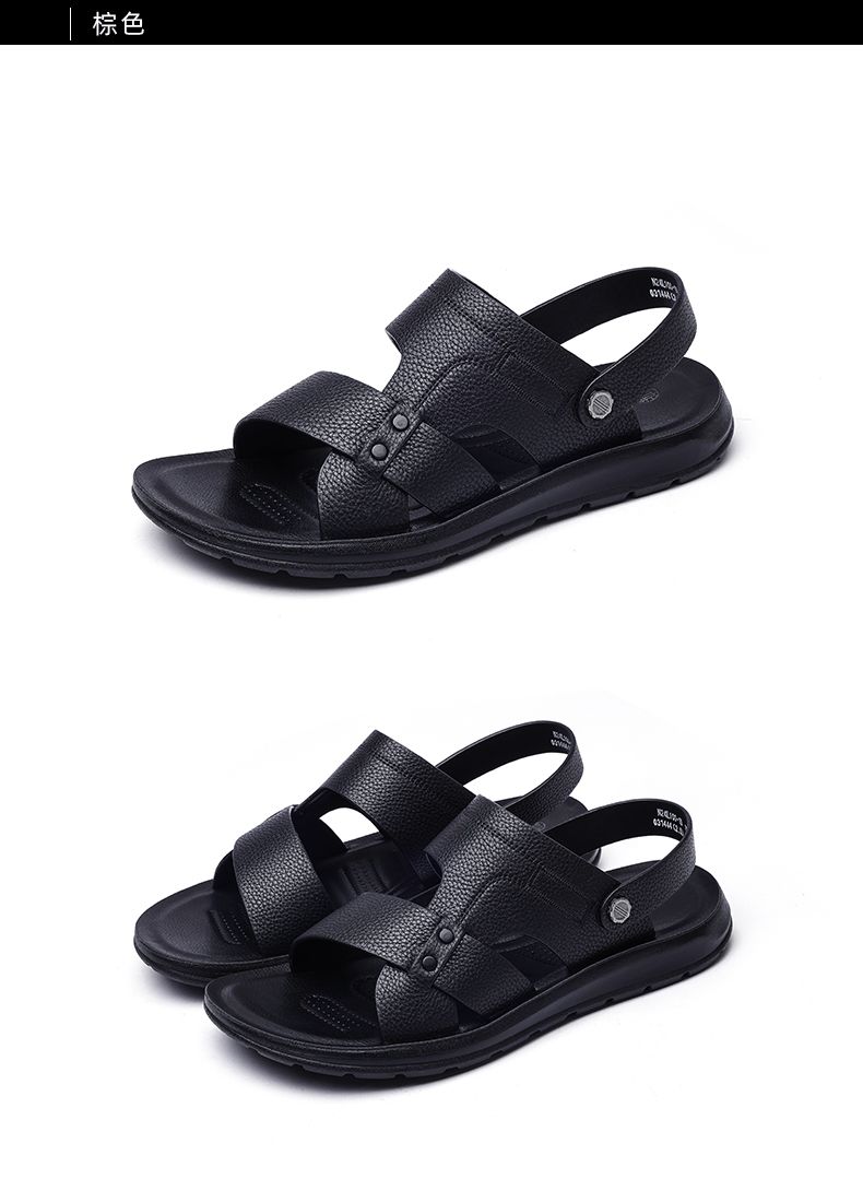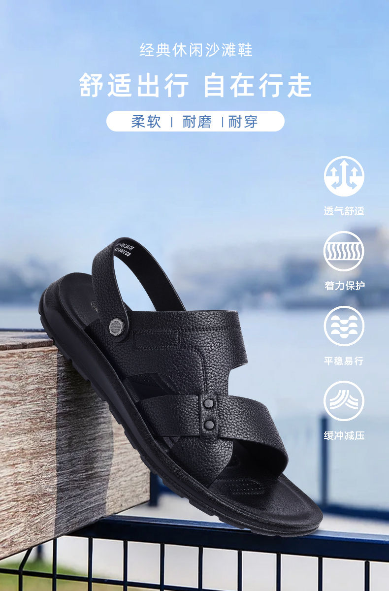 信诺 真皮舒适凉鞋 2024新款夏季男沙滩拖鞋中老年大码两穿爸爸鞋N24L100-15