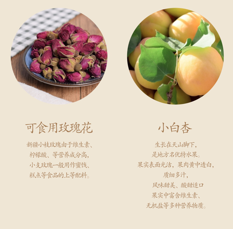 【净含量】210g/盒,2盒/每份,葡萄、玫瑰核桃、杏子三种口味可选