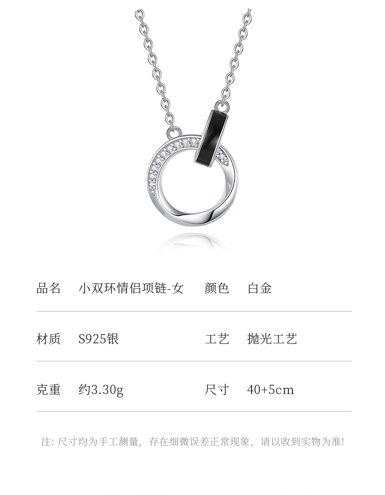 卡蒂罗KADER 小蛮腰情侣项链 925银莫比乌斯双环简约轻奢小众设计锁骨链吊坠 日常百搭简约气质