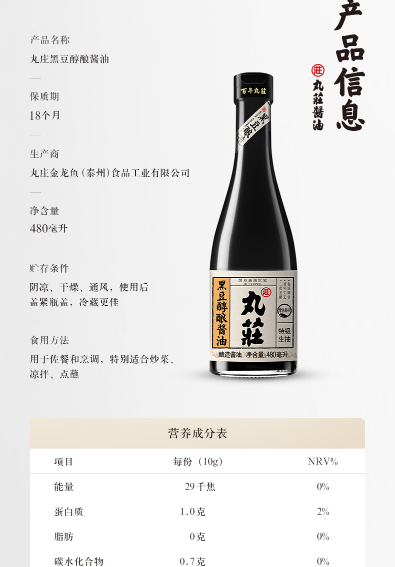 丸庄 黑豆醇酿(高鲜)酱油 480ML 丸庄 黑豆红烧酱油 480ML 梁汾 三年老陈醋5度550ml