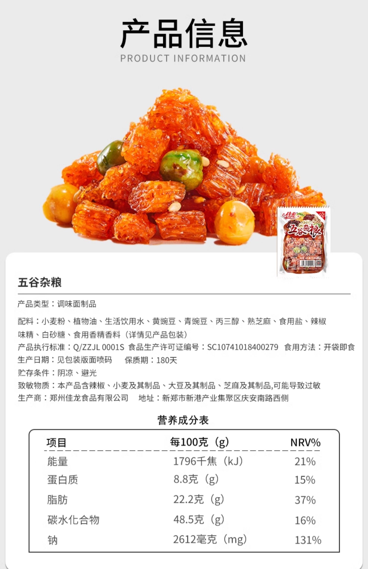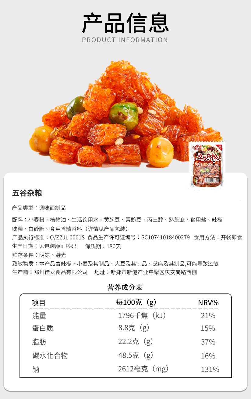 佳龙 五谷杂粮 辣条 18g/小袋