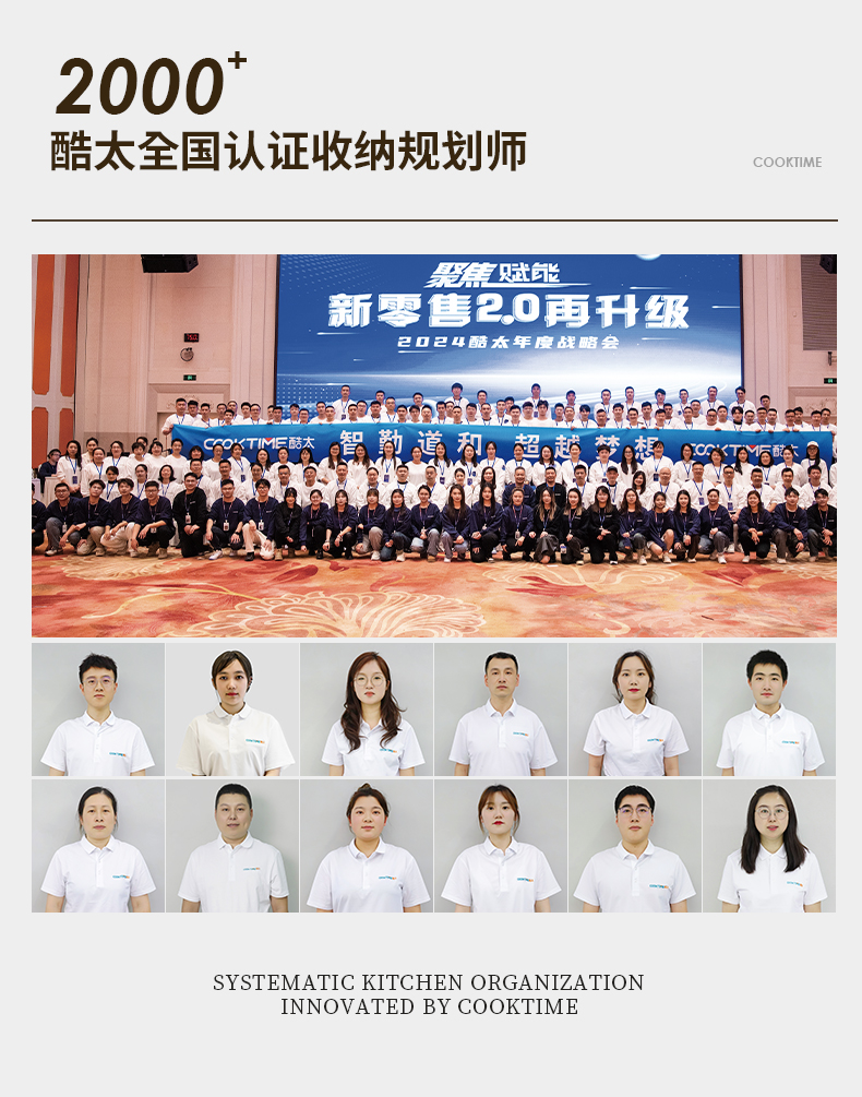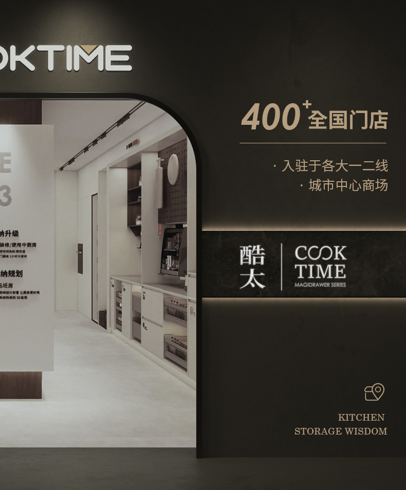 - 酷太坚持8年自主研发,已获得专利证书130项,拥有一套领先市场的厨房收纳系统,为千万中国家庭解决厨房脏乱差,缔造厨房新生活。
