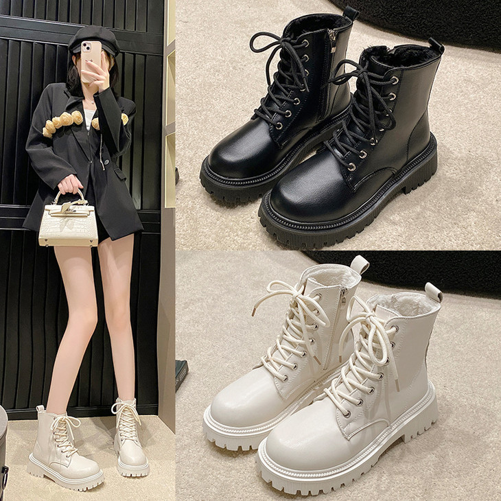 马丁靴女秋冬季新款英伦风加绒加厚时尚厚底机车靴雪地靴短靴
