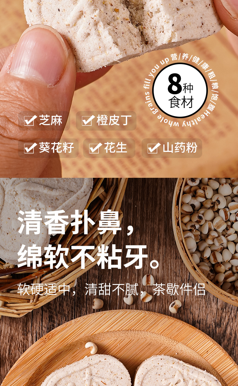 【健康又美味的小零食!蔗糖坚果茯苓八珍糕】不单独添加蔗糖黑芝麻核桃传统糕点心老人儿童小零食健康特价清仓