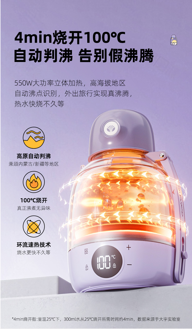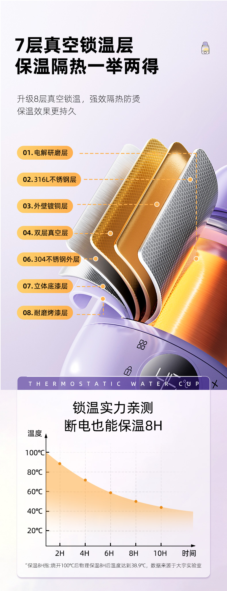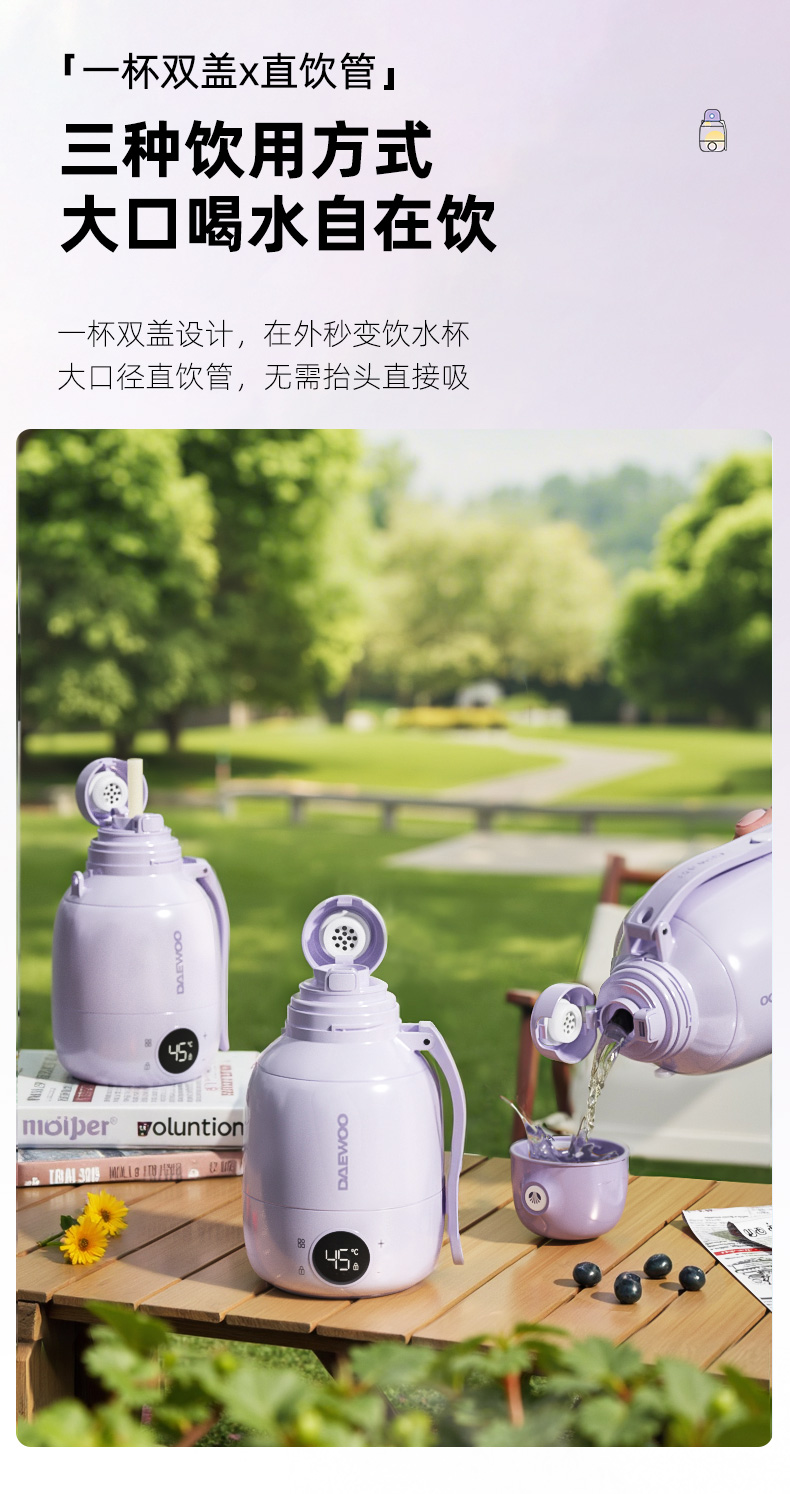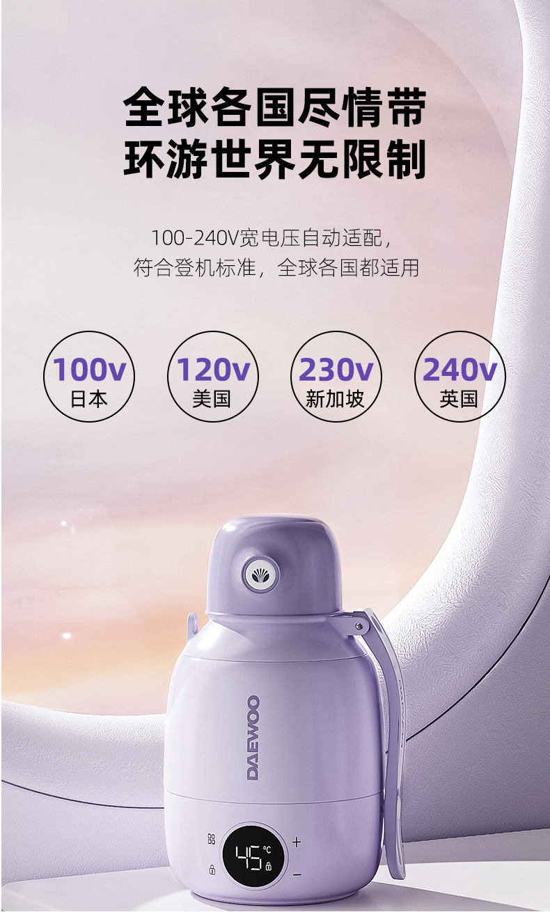 【4min即热烧水】大宇恒温烧水杯DY-TN27S 即热烧水 一机相当于烧水壶/保温壶/调奶器/旅行壶 316L母婴用内胆 13段温度可调 7层真空锁温层 1.5m调节背带 容量600ml