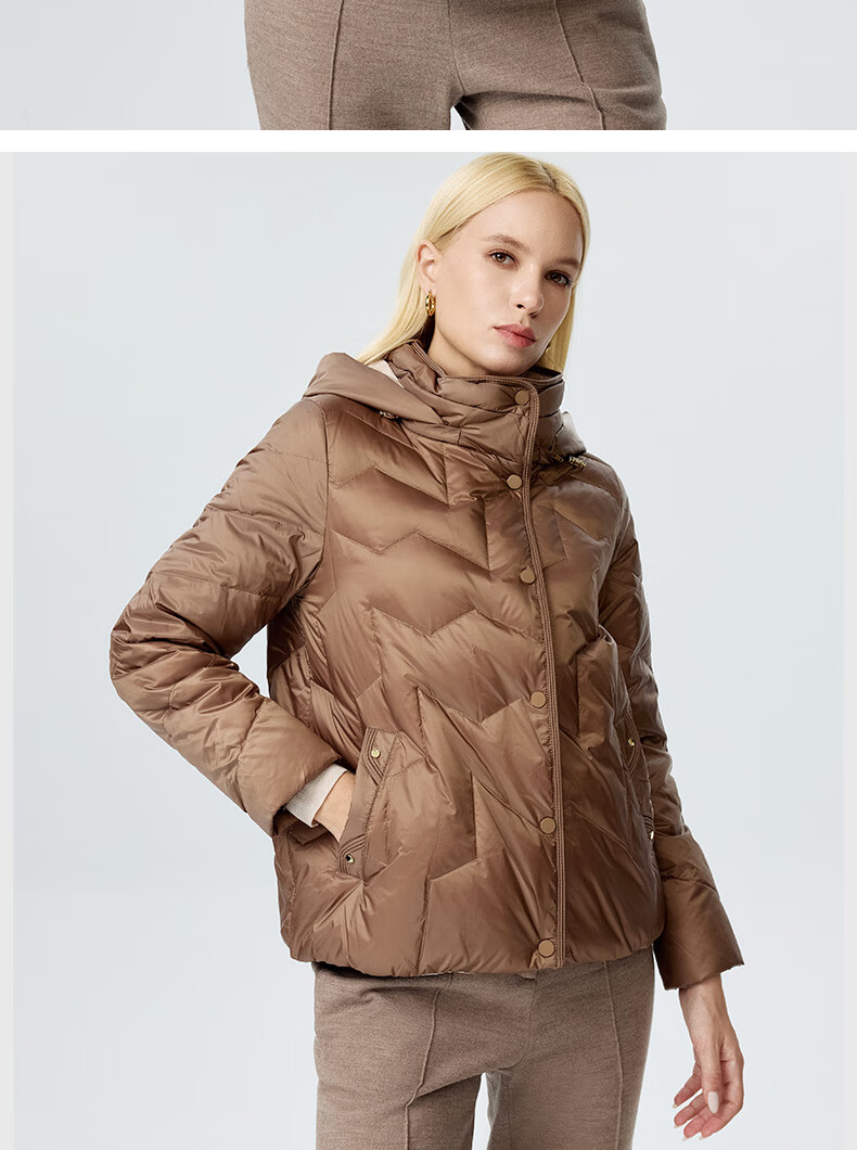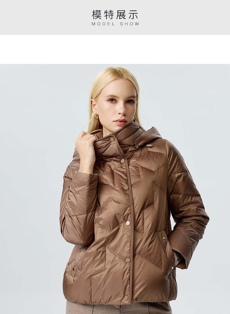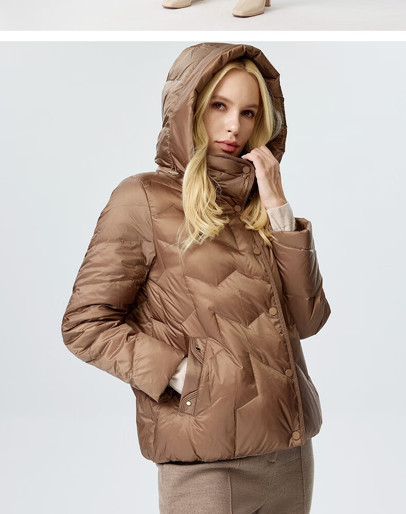 皮尔卡丹女装羽绒服冬季白鸭绒短款通勤保暖外套P3493Y3405M0