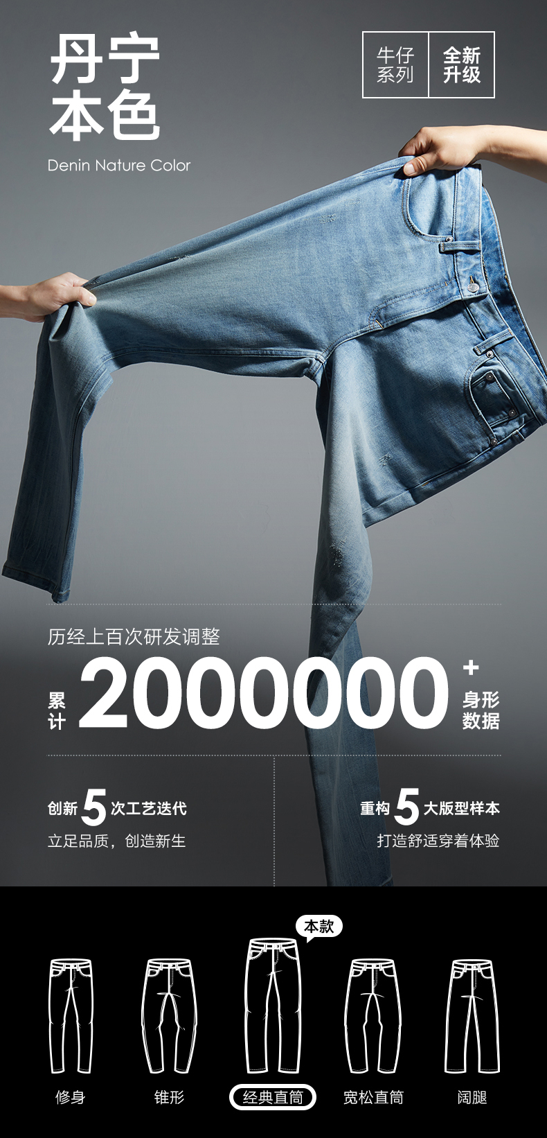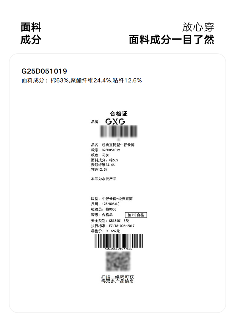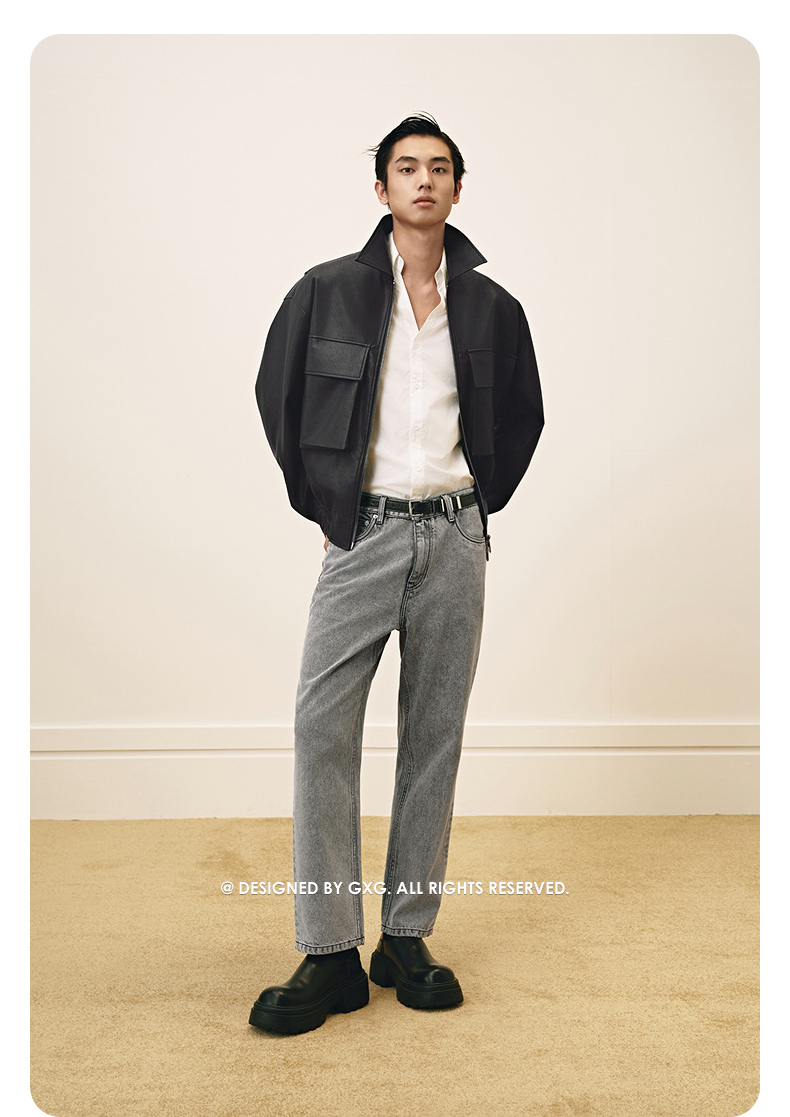 GXG男装 经典直筒花灰牛仔裤潮流男长裤通勤休闲裤 2025春季热卖