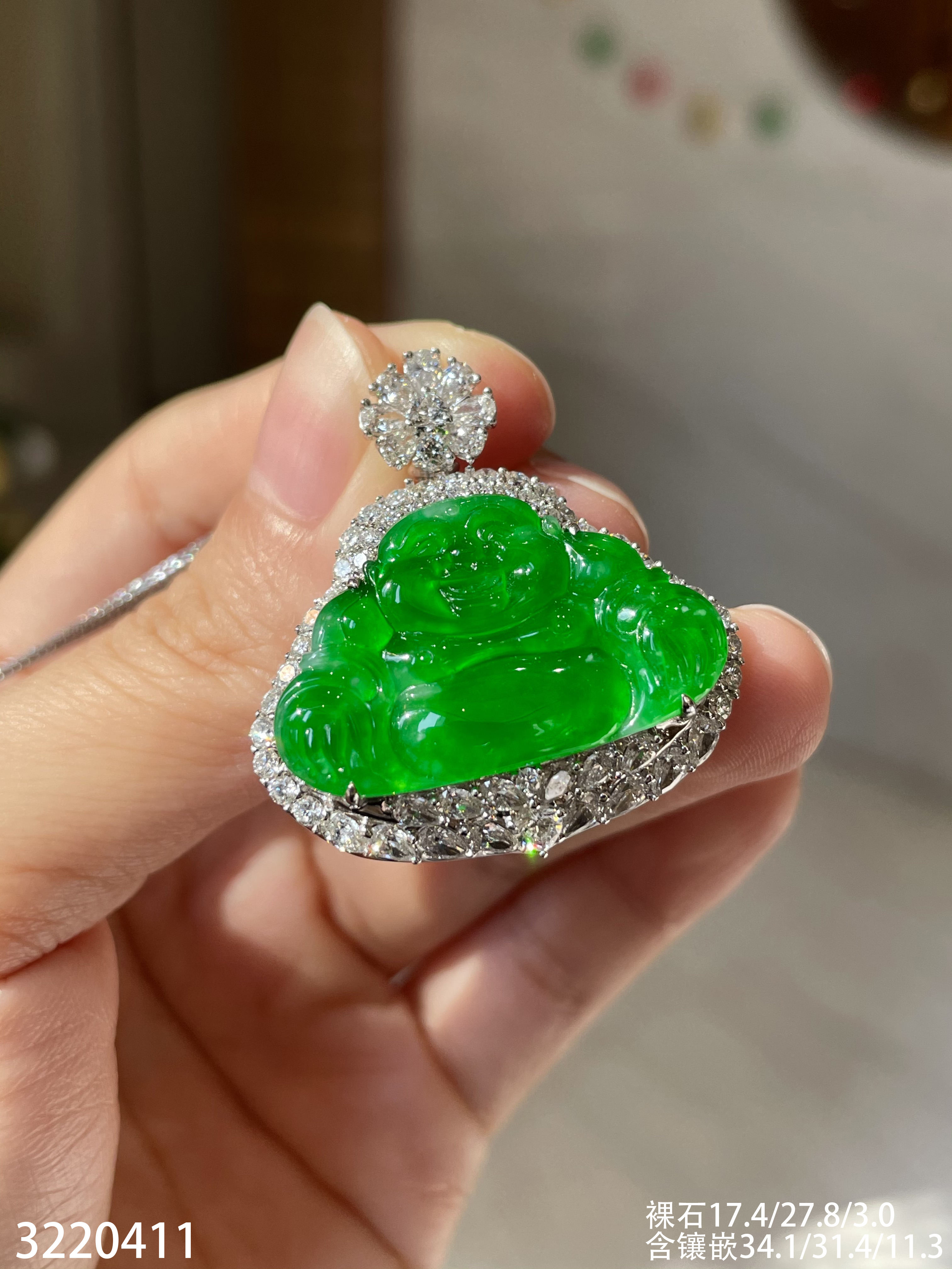 玻璃种福豆吊坠【6190303】具体价格微信咨询