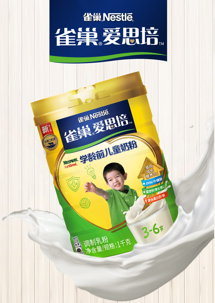 雀巢(Nestle) 儿童奶粉 4段 3-6岁 爱思培 学龄前 全脂奶粉 进口奶源 桶装1000克 (新老包装随机发货)