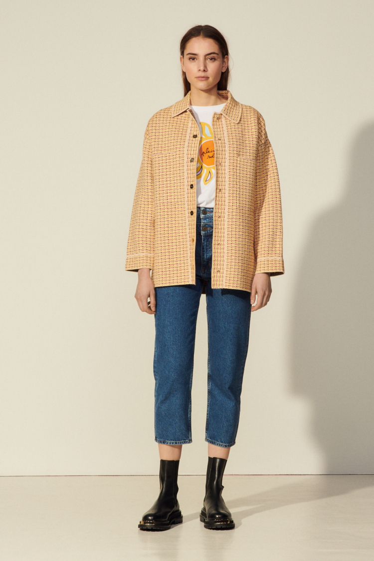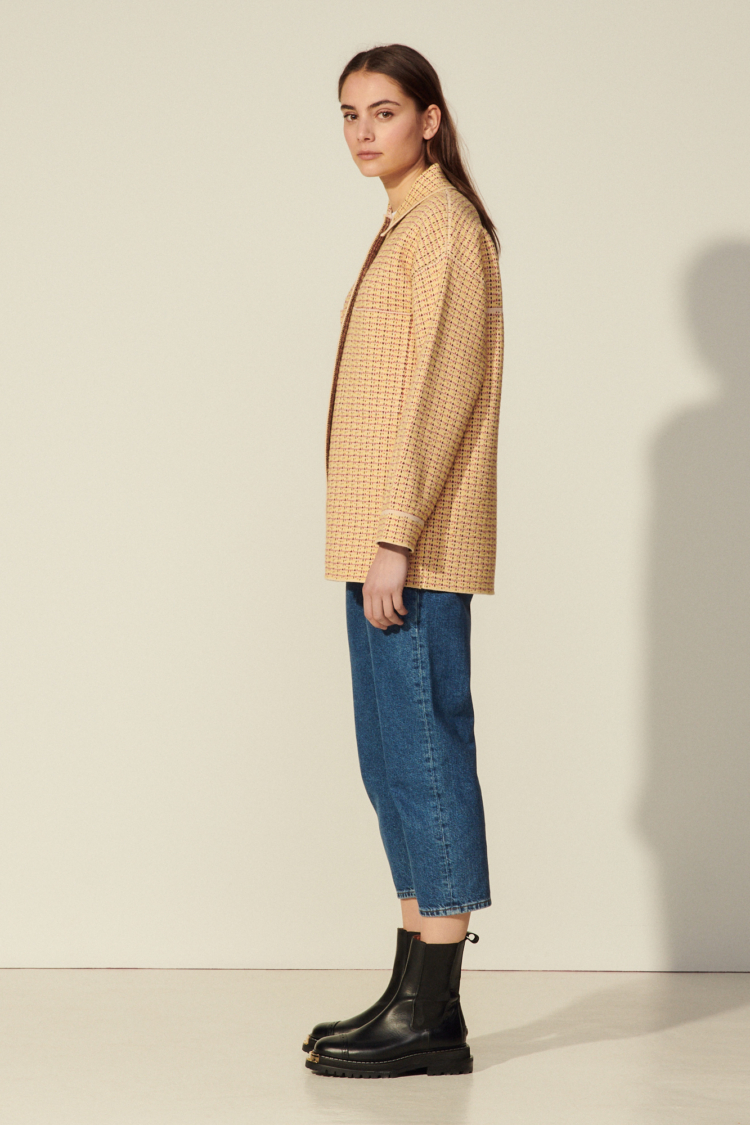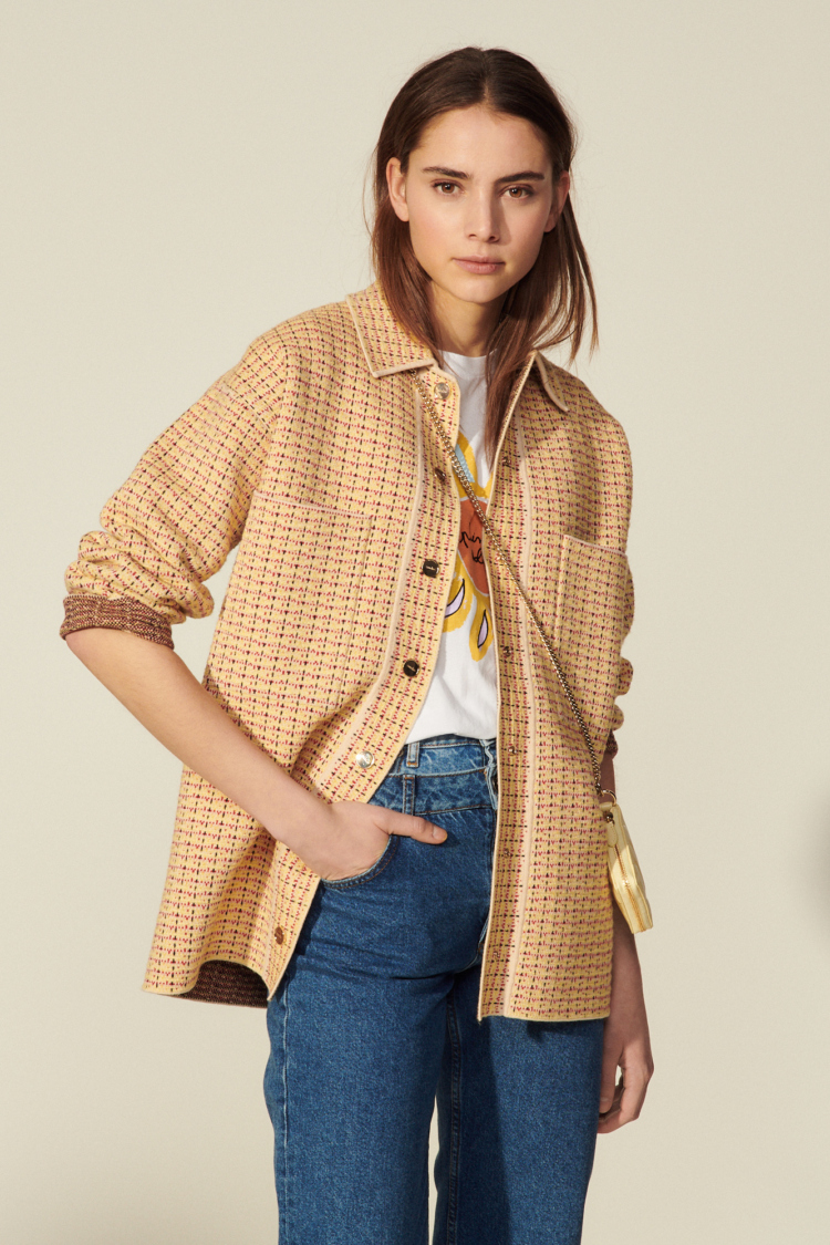 sandro 衬衫领花呢开衫JPY带授权招加盟代理