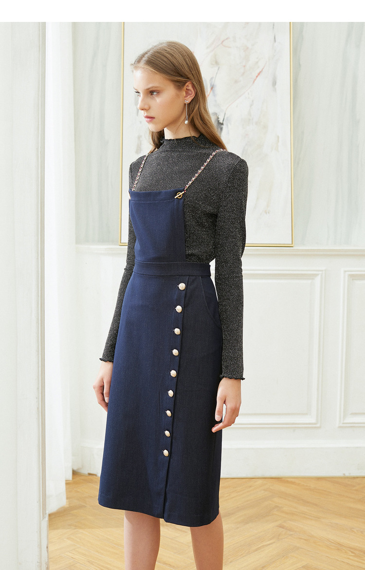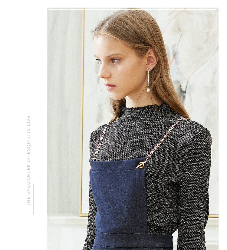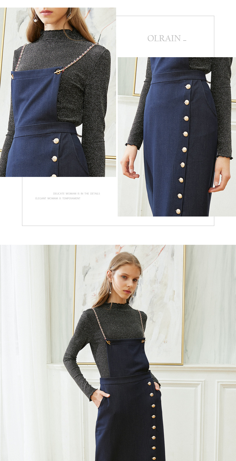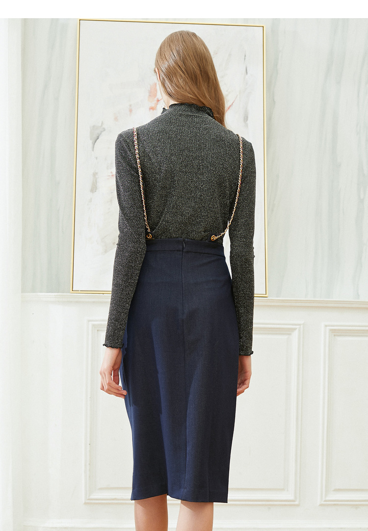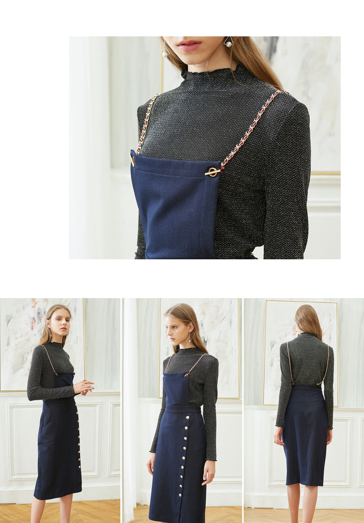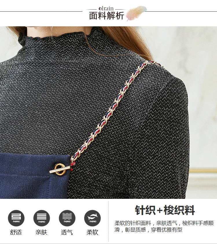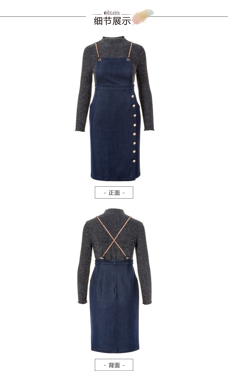 欧芮儿秋冬装2019新款金银丝长袖t恤+吊带包臀裙两件套套装裙