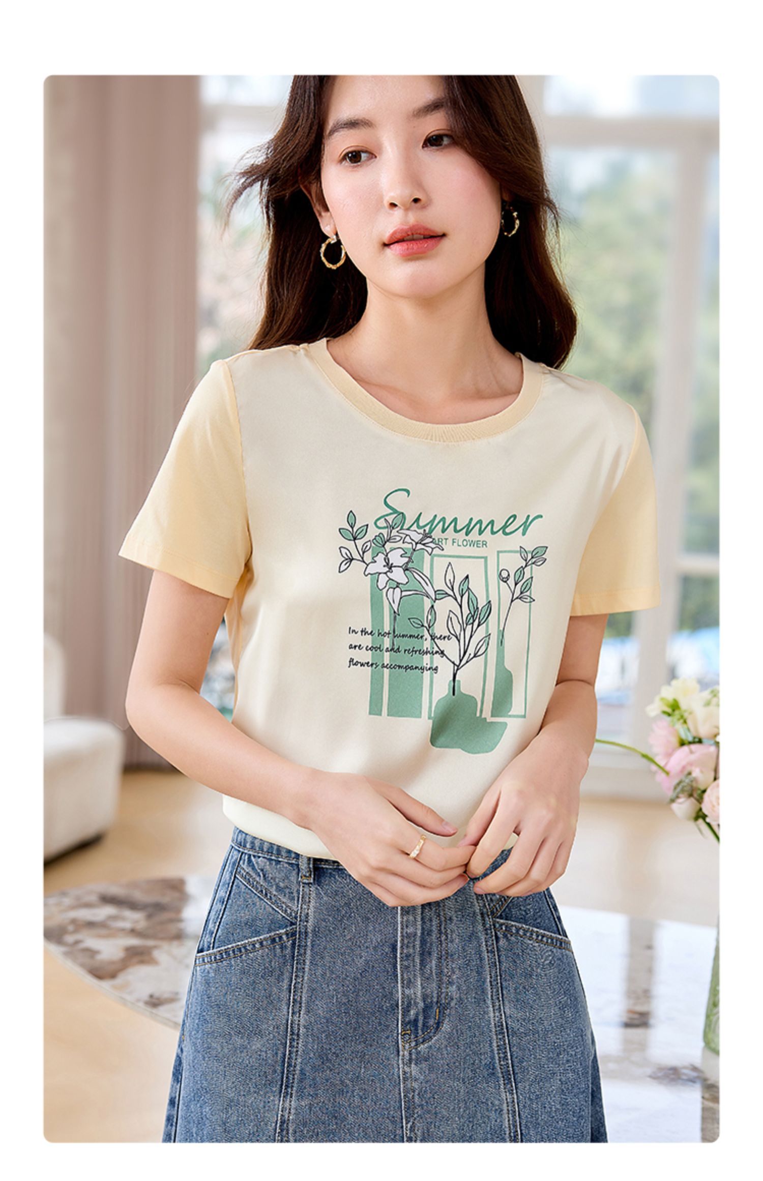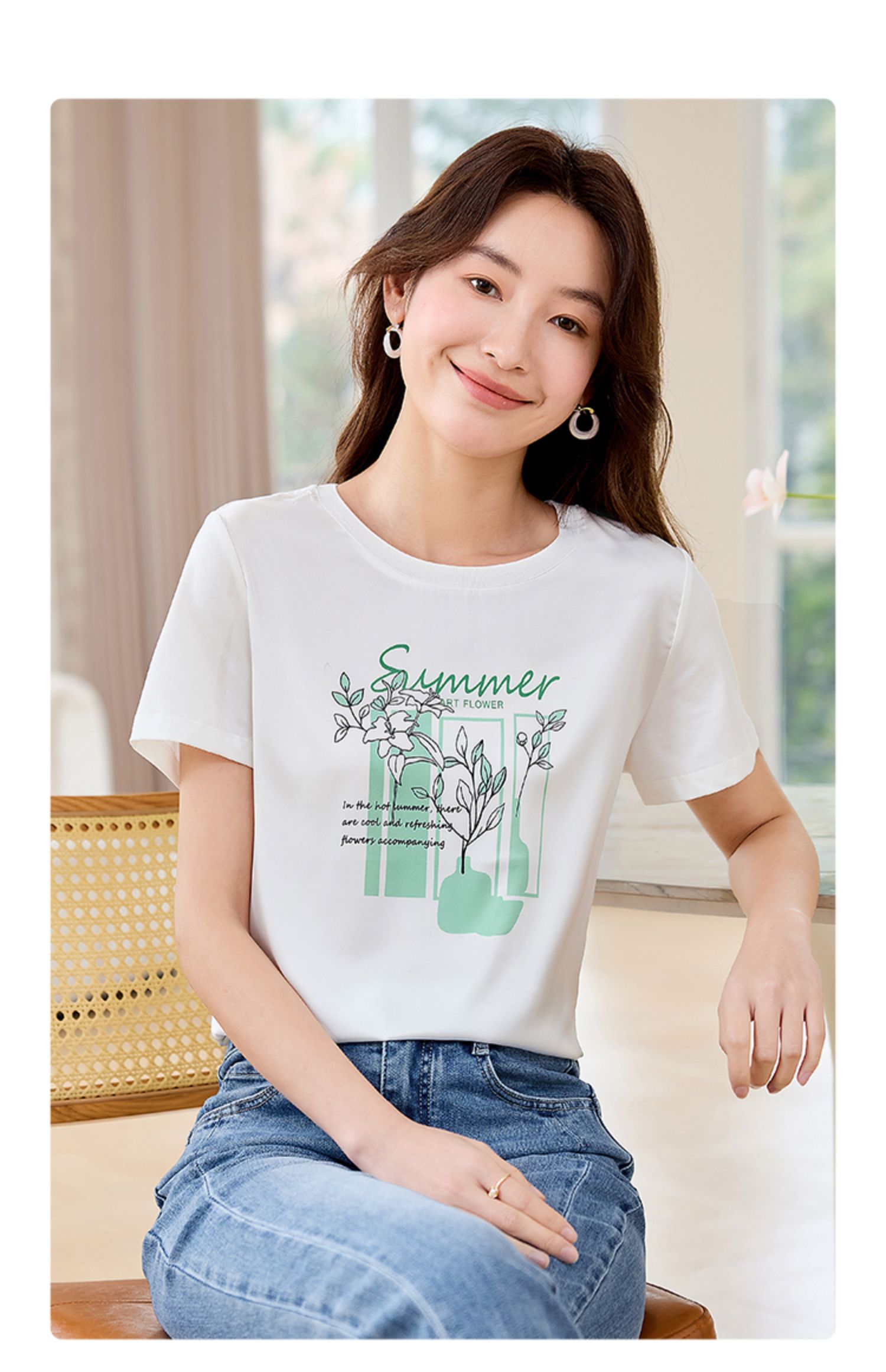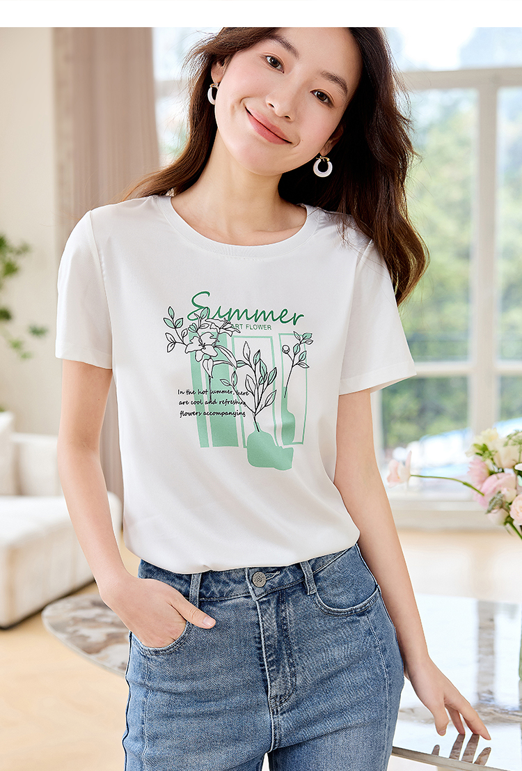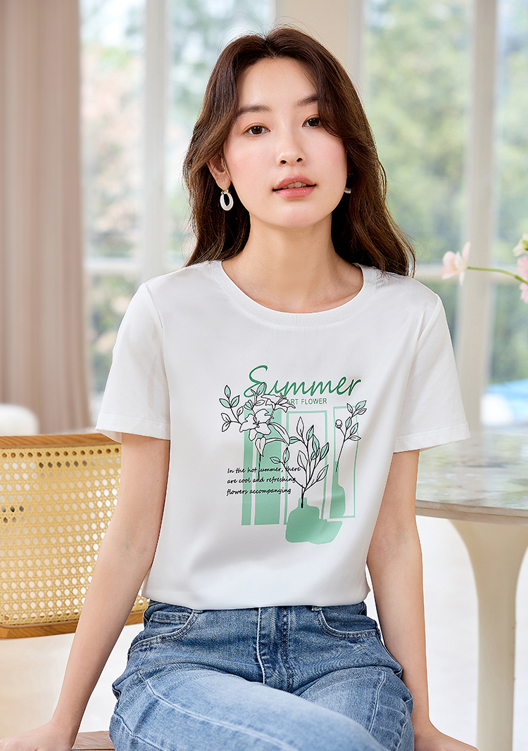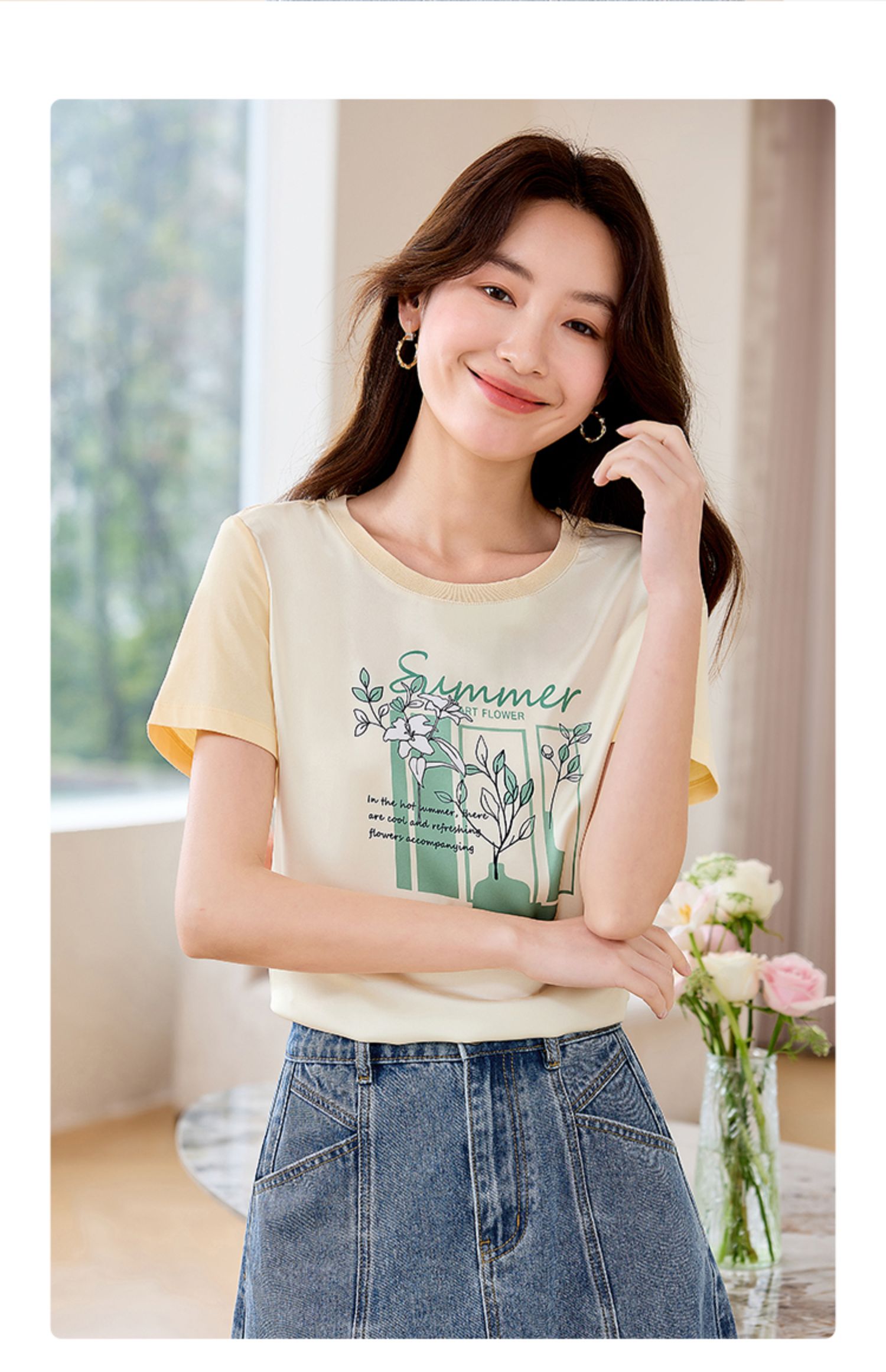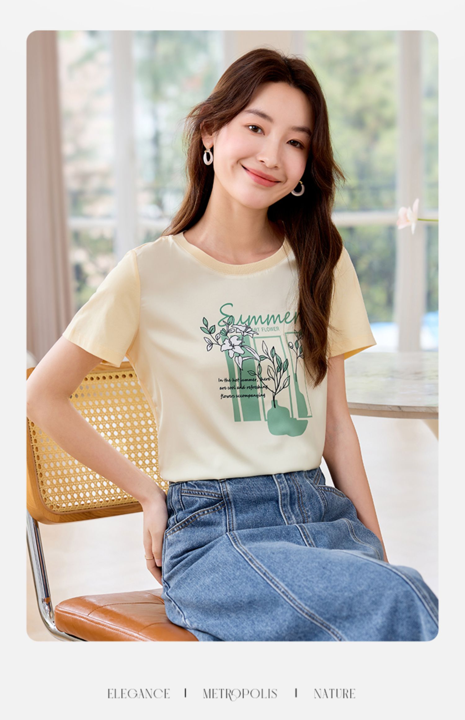 【专属特价】熙世界2025夏新款清新植物花卉印花T恤女短袖气质减龄凉感上衣