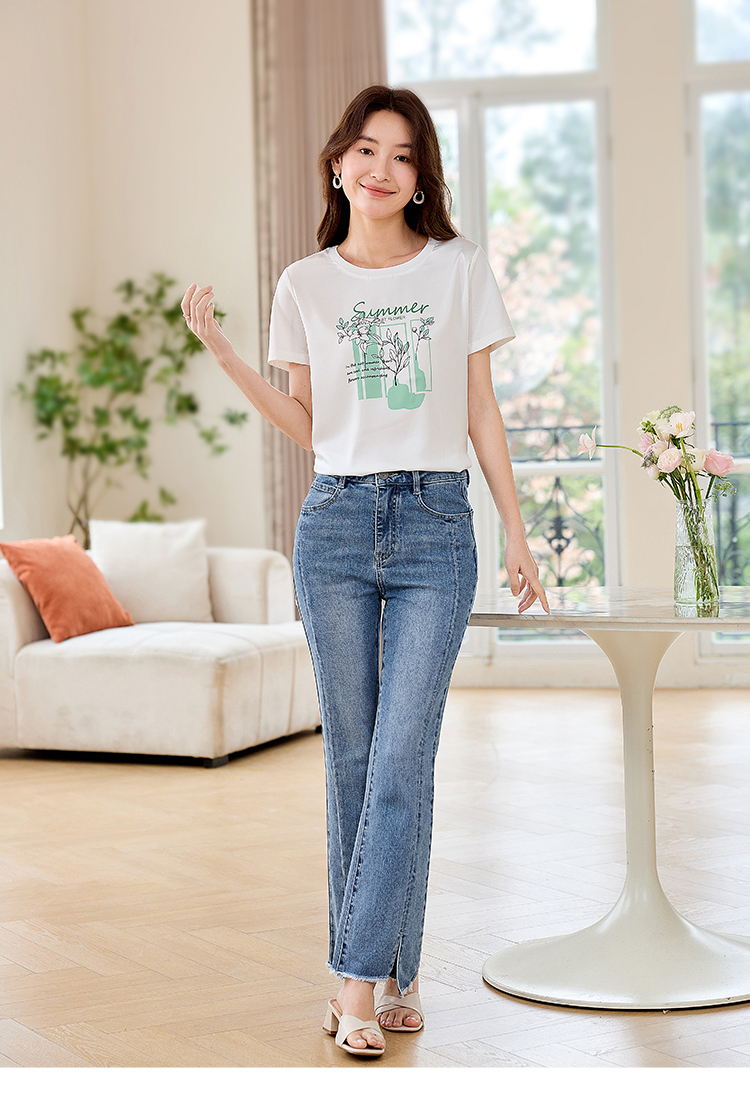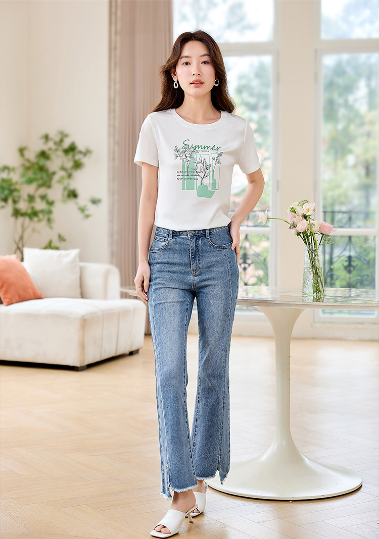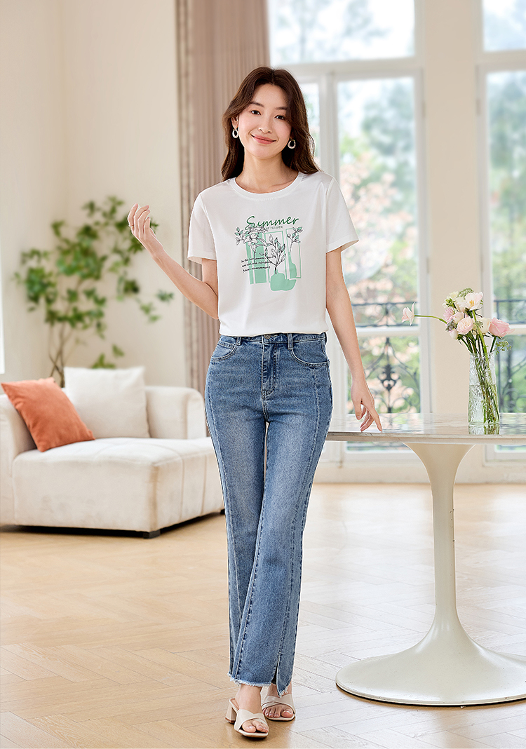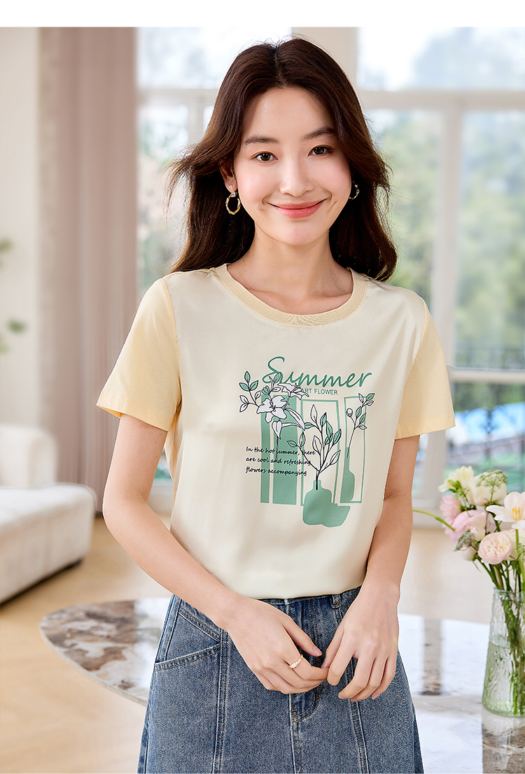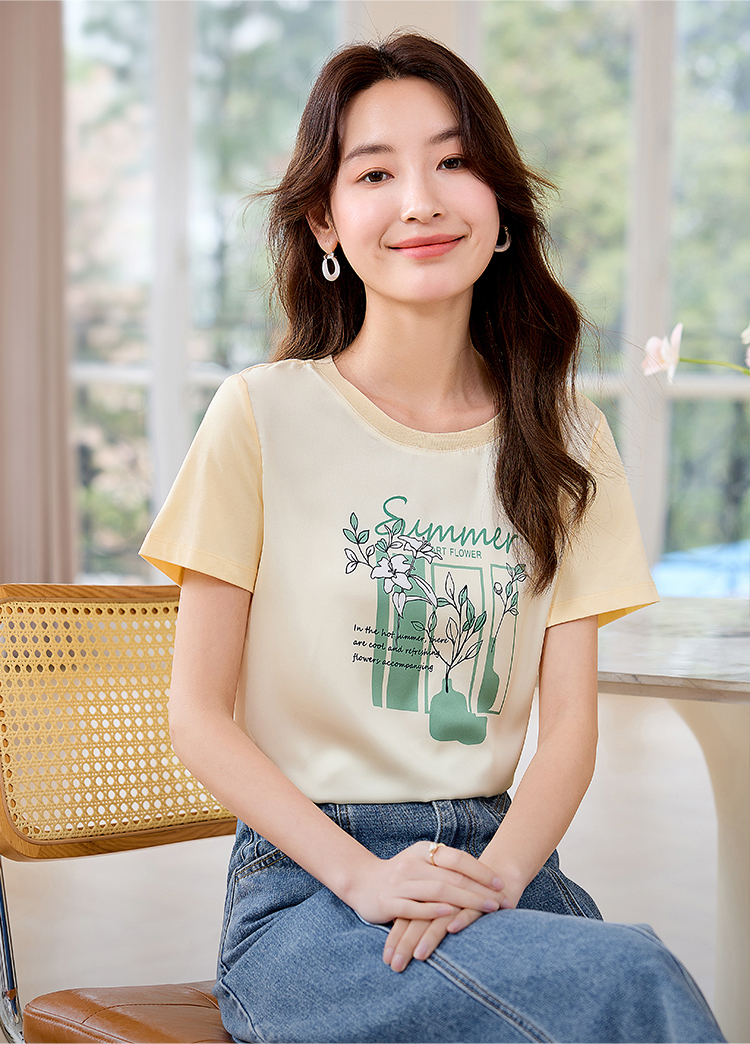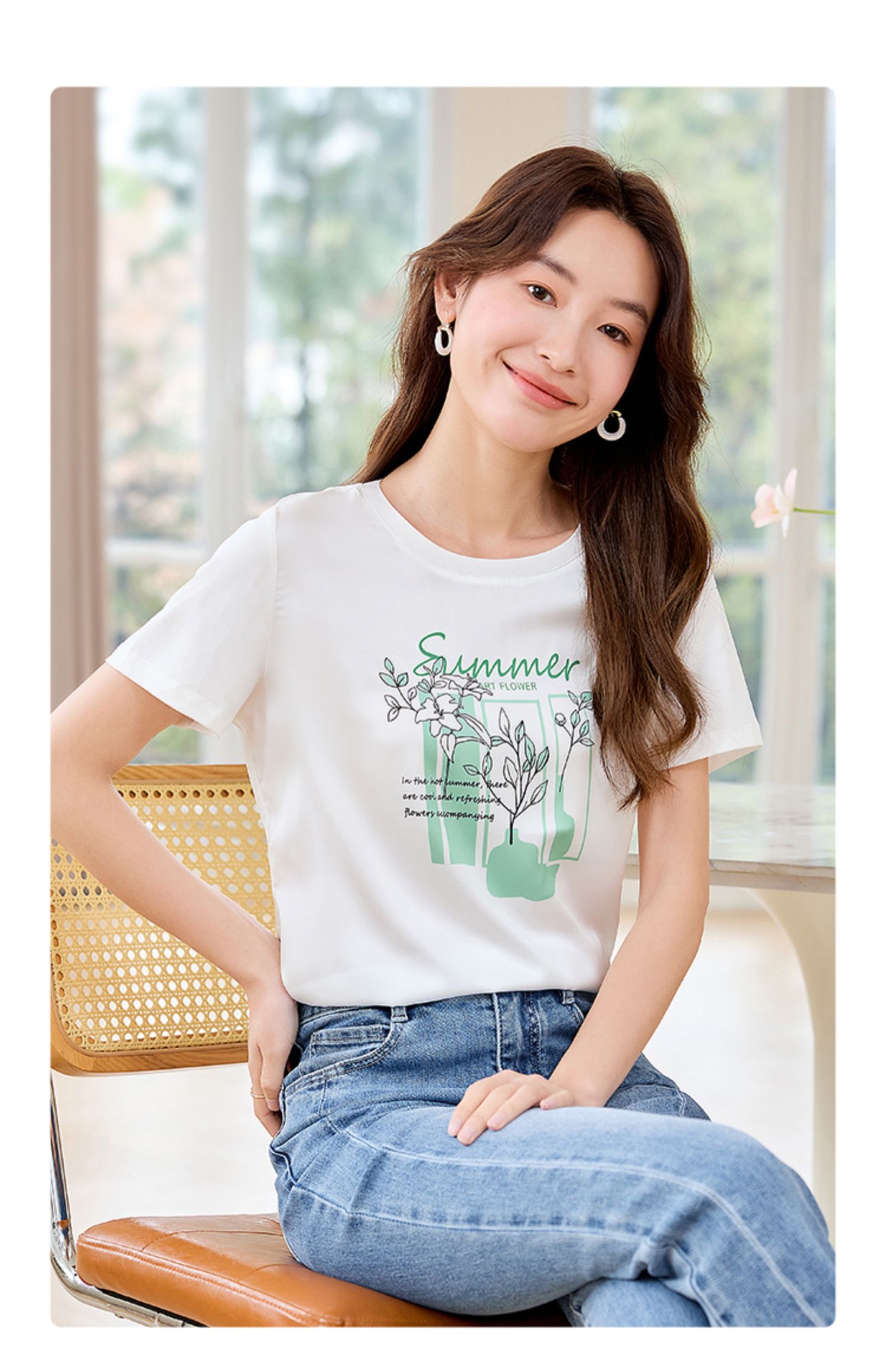 【专属特价】熙世界2025夏新款清新植物花卉印花T恤女短袖气质减龄凉感上衣