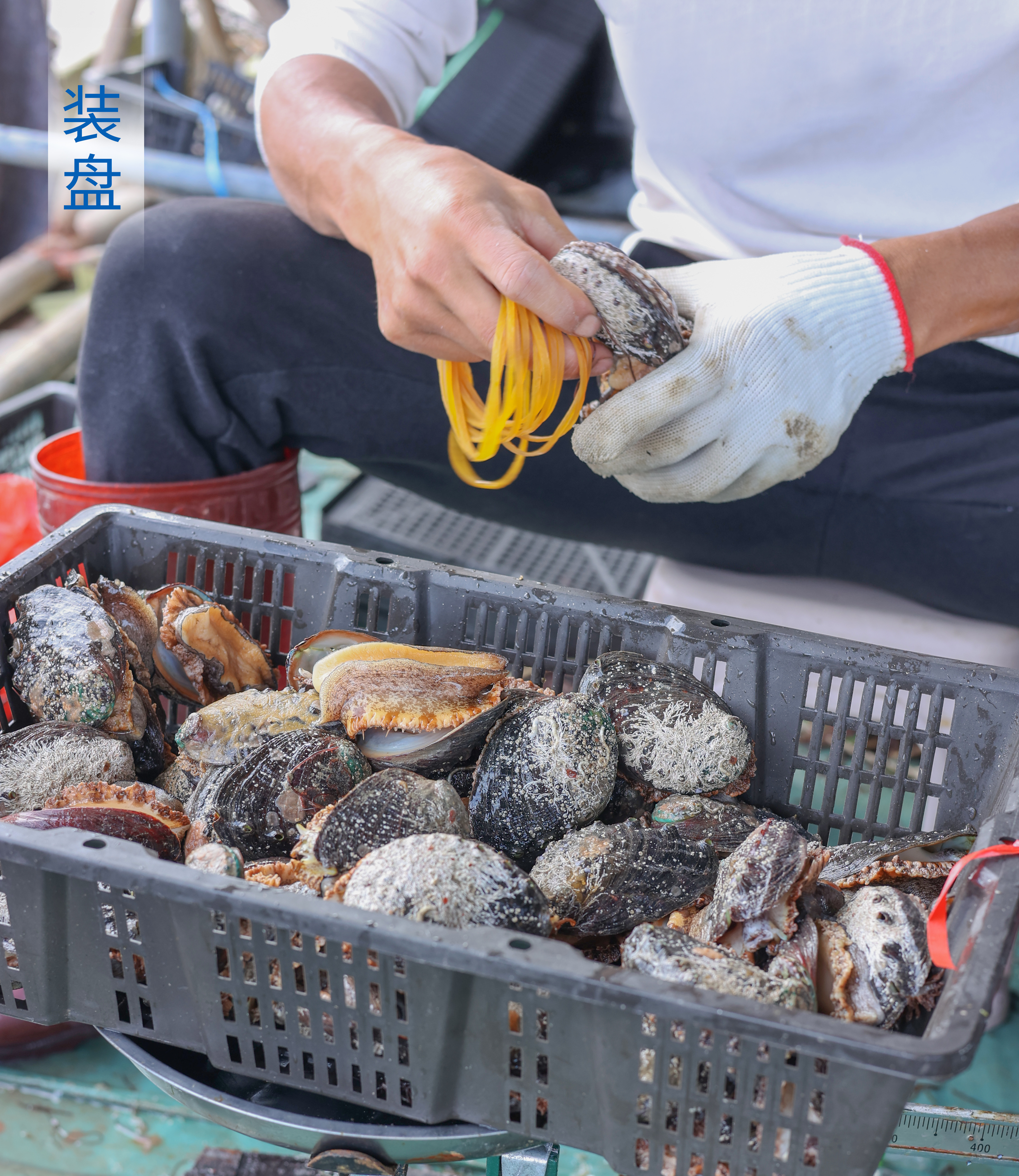 在海里捕捞上来后,立即分拣大小,从捕捞到工厂,不超过2小时,每只鲍鱼都严格采用单体单冻,不复冻。