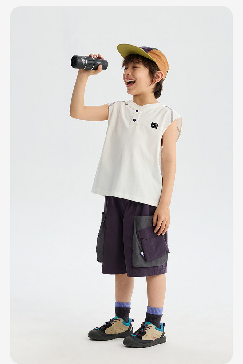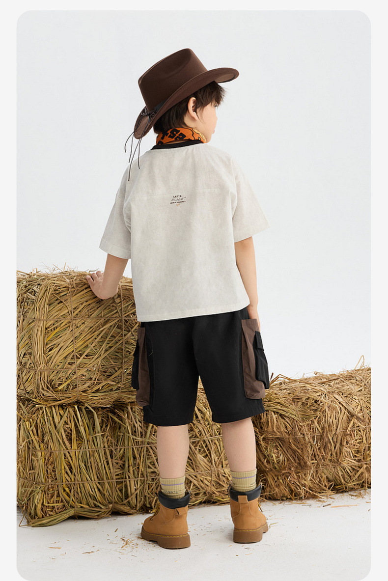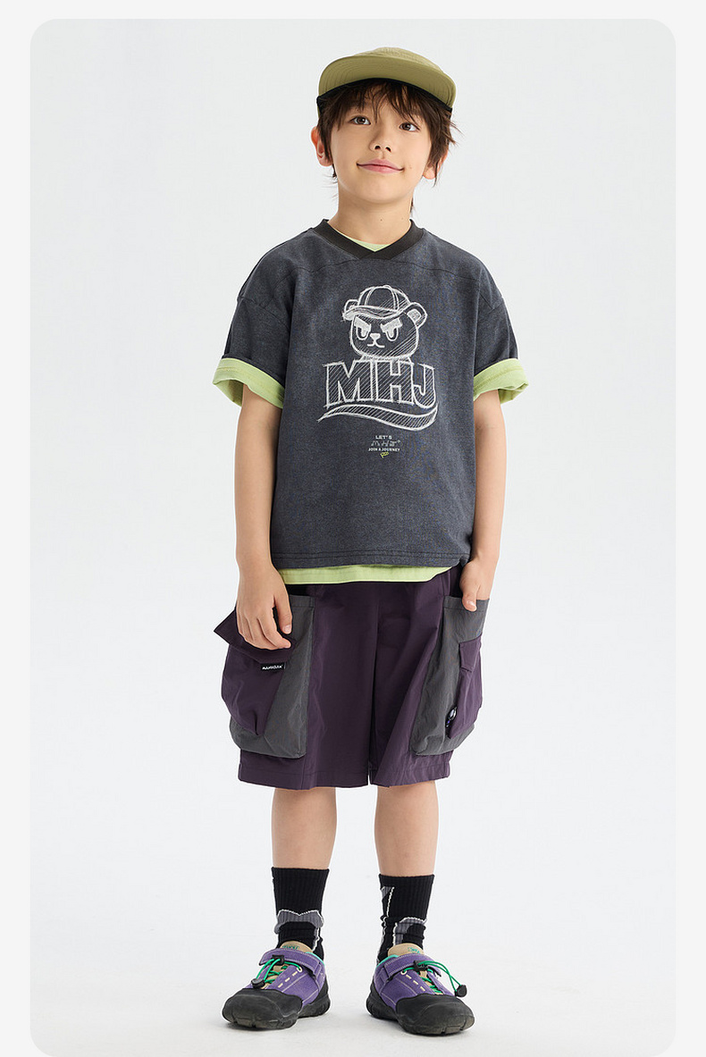 MANHOJIA【装装口袋裤】儿童短裤轻量透气复古撞色拼接口袋短裤