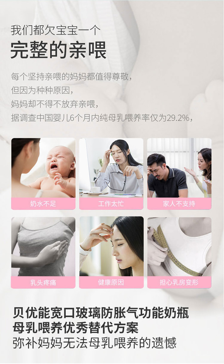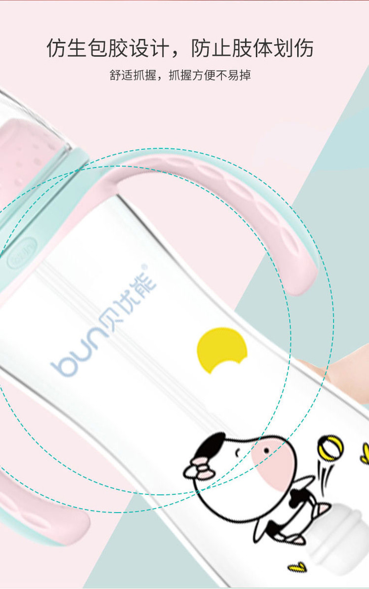 贝优能纤巧型带柄自动宽口玻璃奶瓶160ml