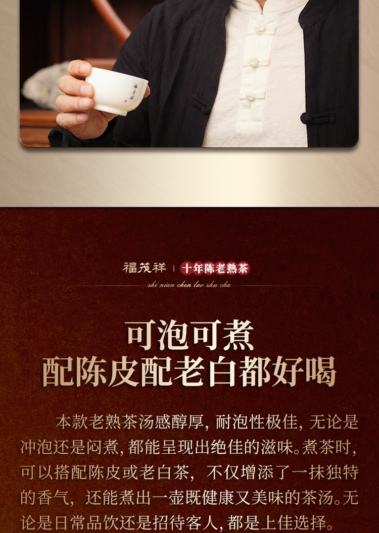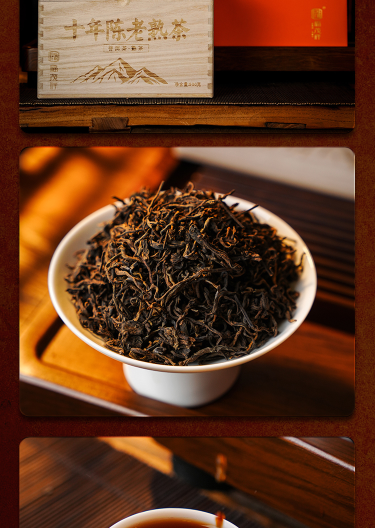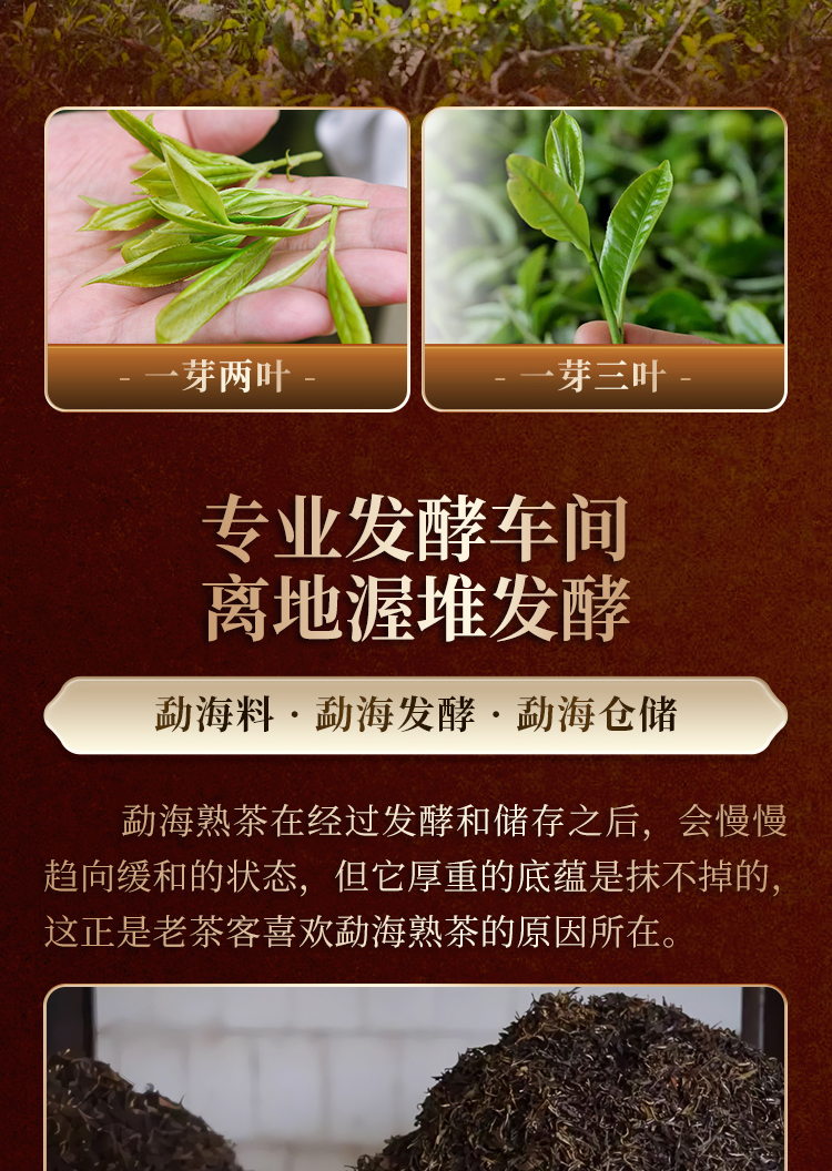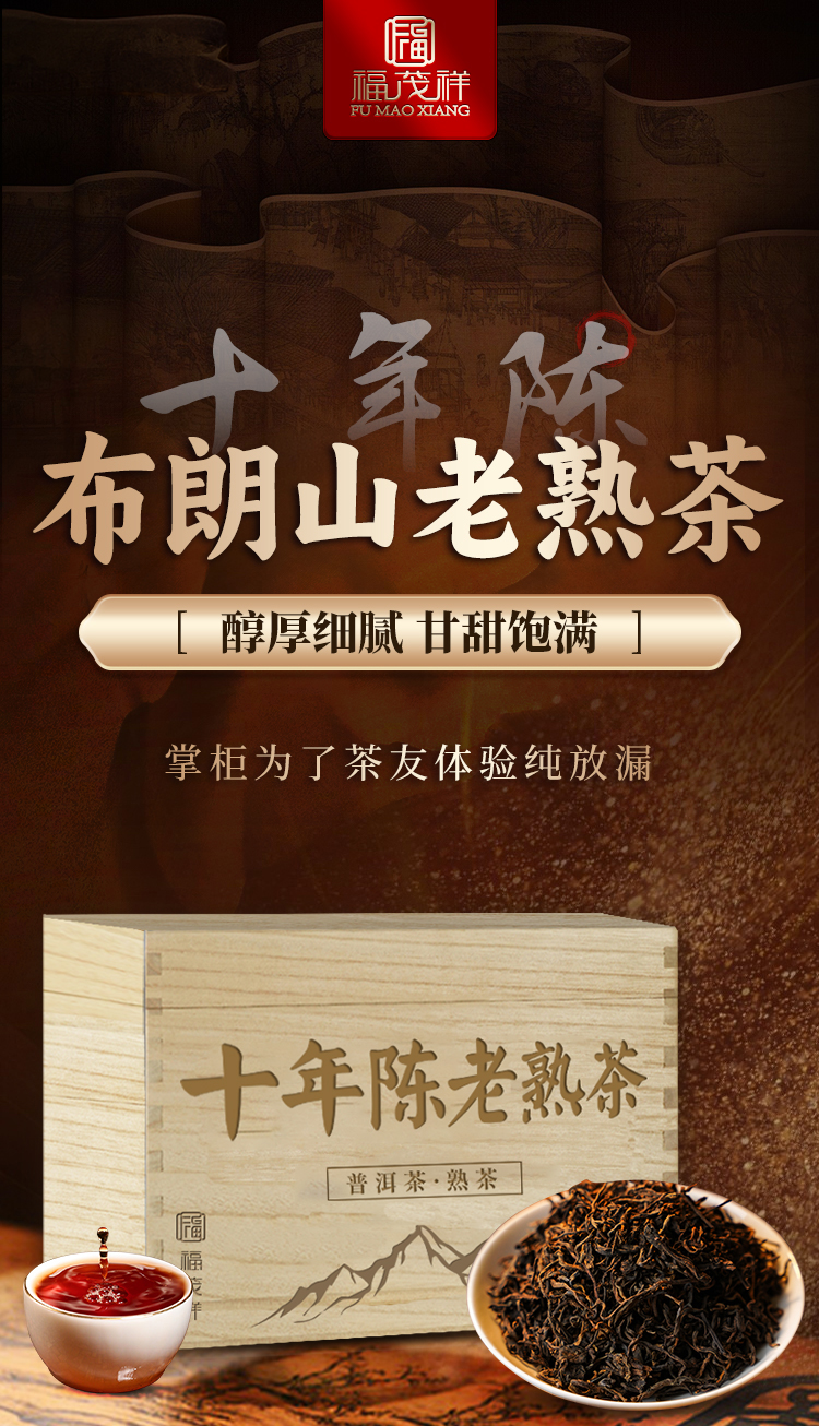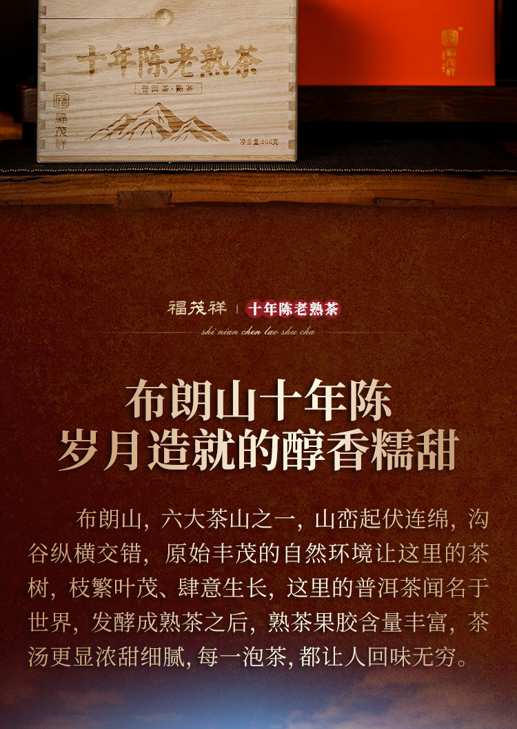 醇厚甘甜【十年陈老熟茶】2014年春茶布朗山发酵普洱熟茶500g木箱装