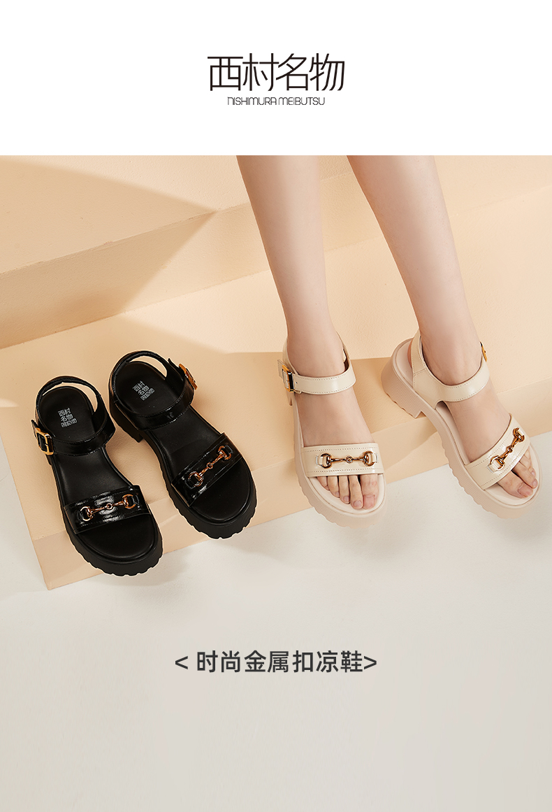 西村名物2021夏季新款牛皮革时尚魔术贴方根时装女凉鞋网红T21BG23411