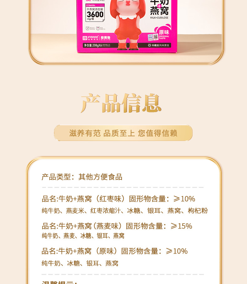 滋养有范 牛奶燕窝即食饮品208g*6(红枣风味)