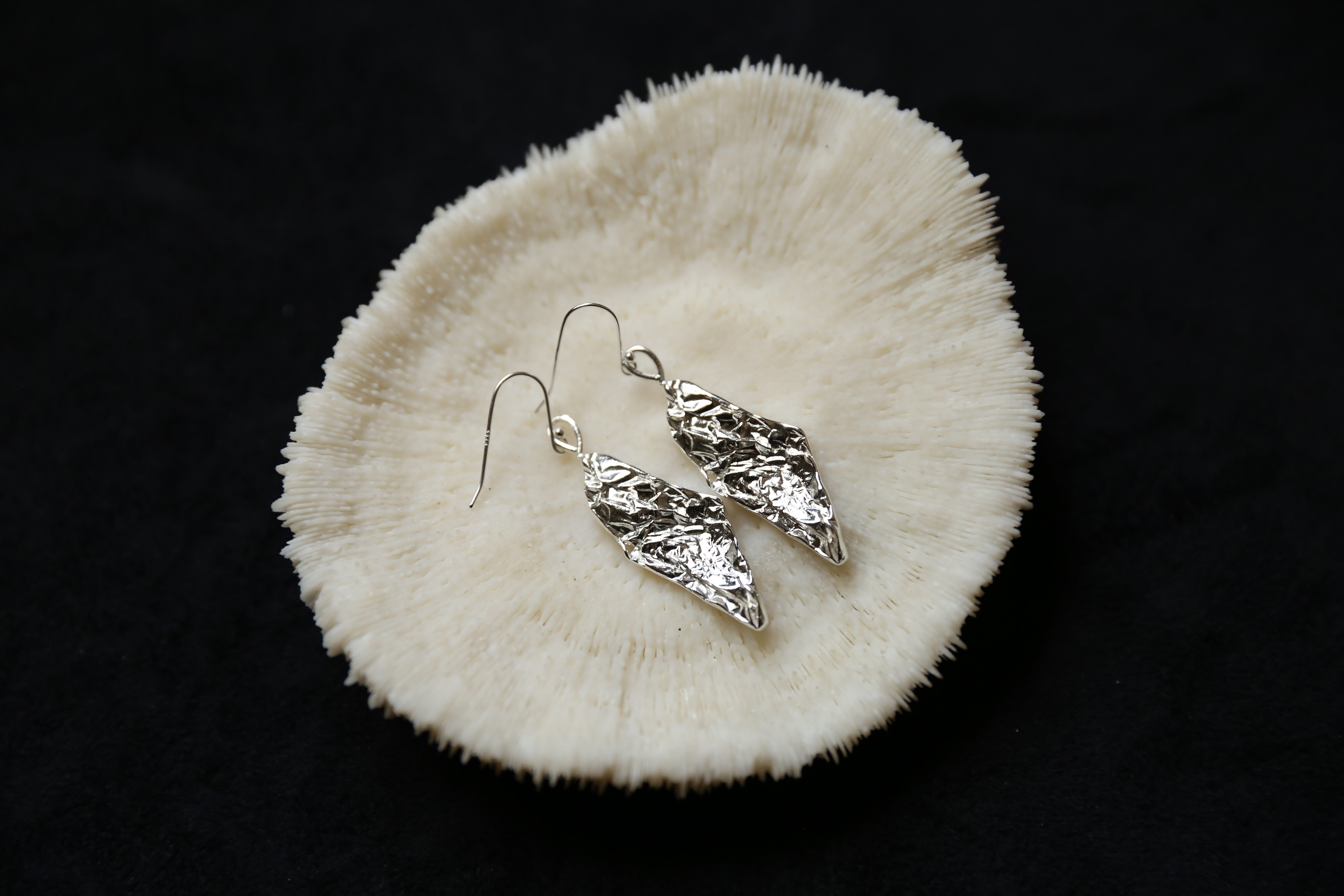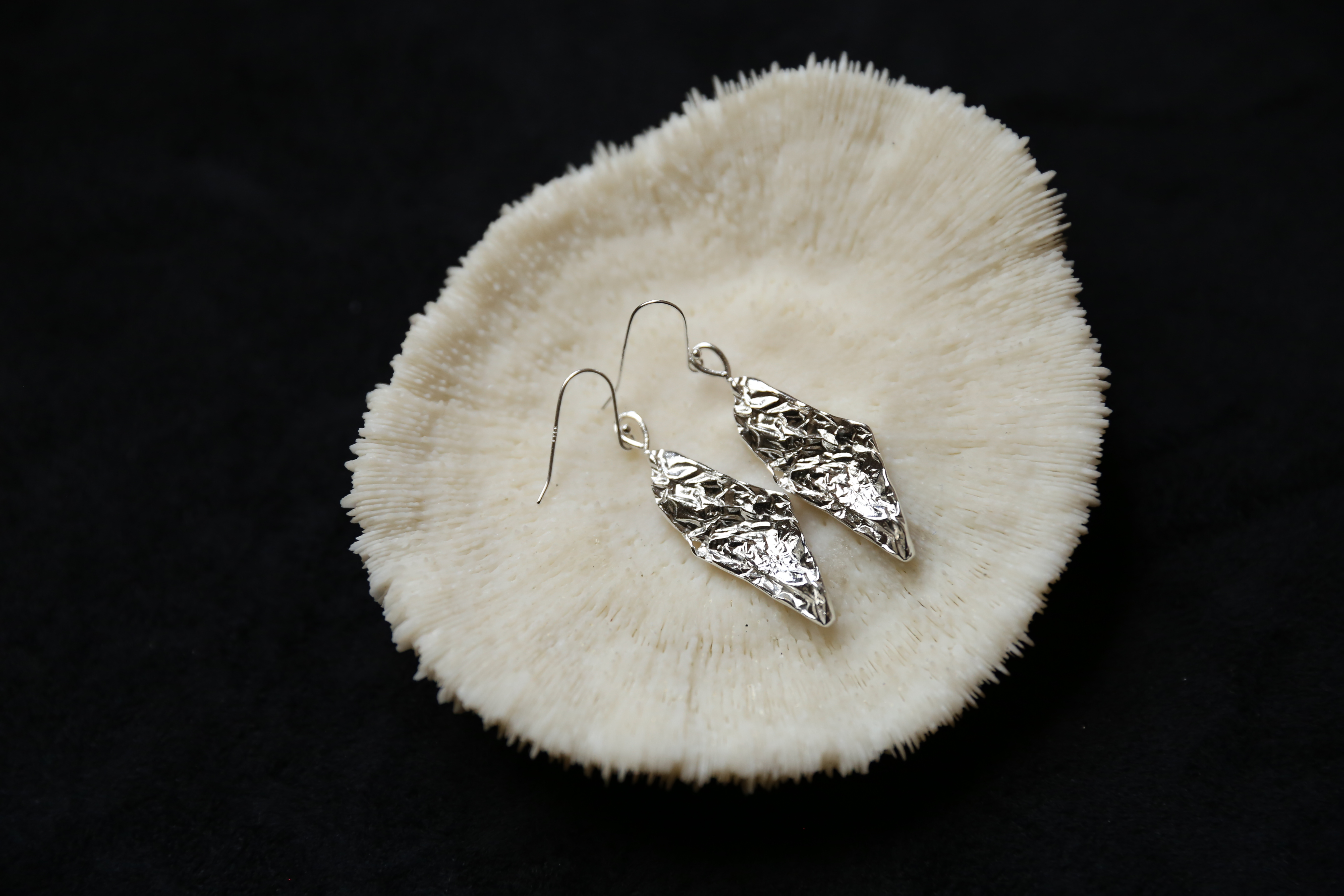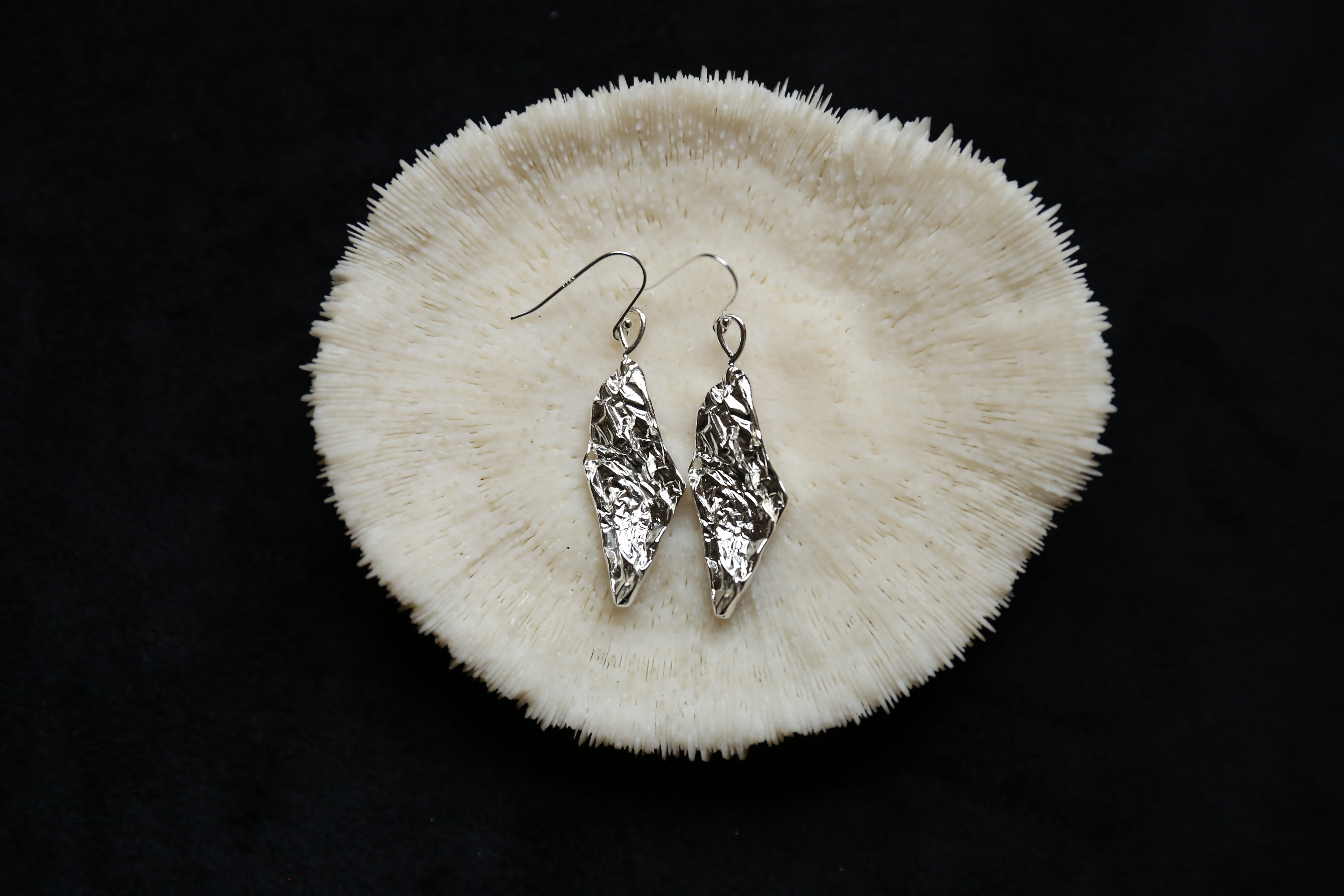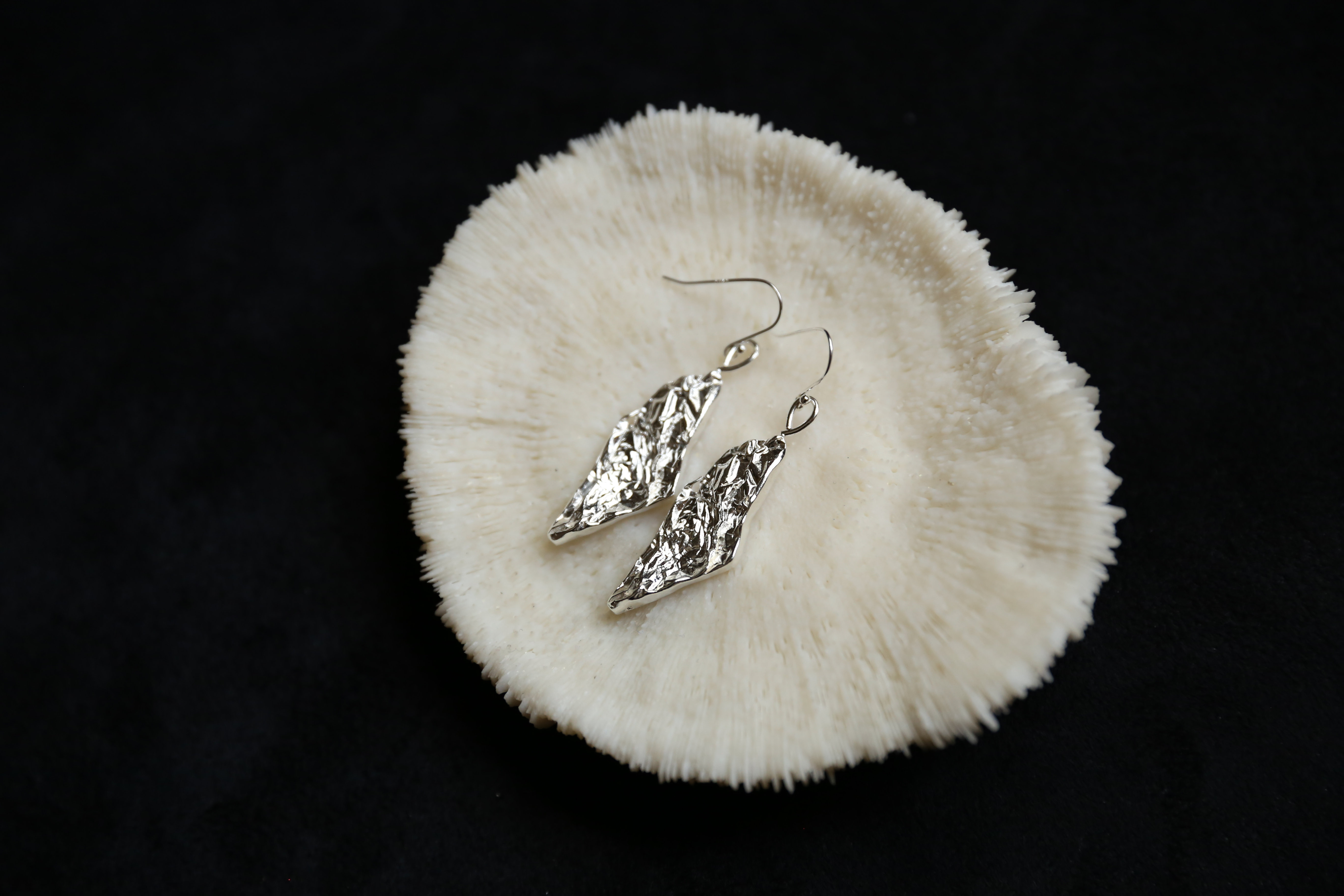 925银手工锡纸肌理耳环